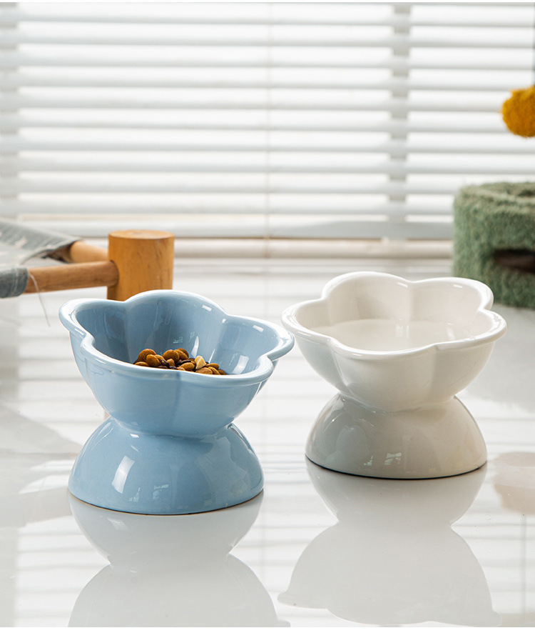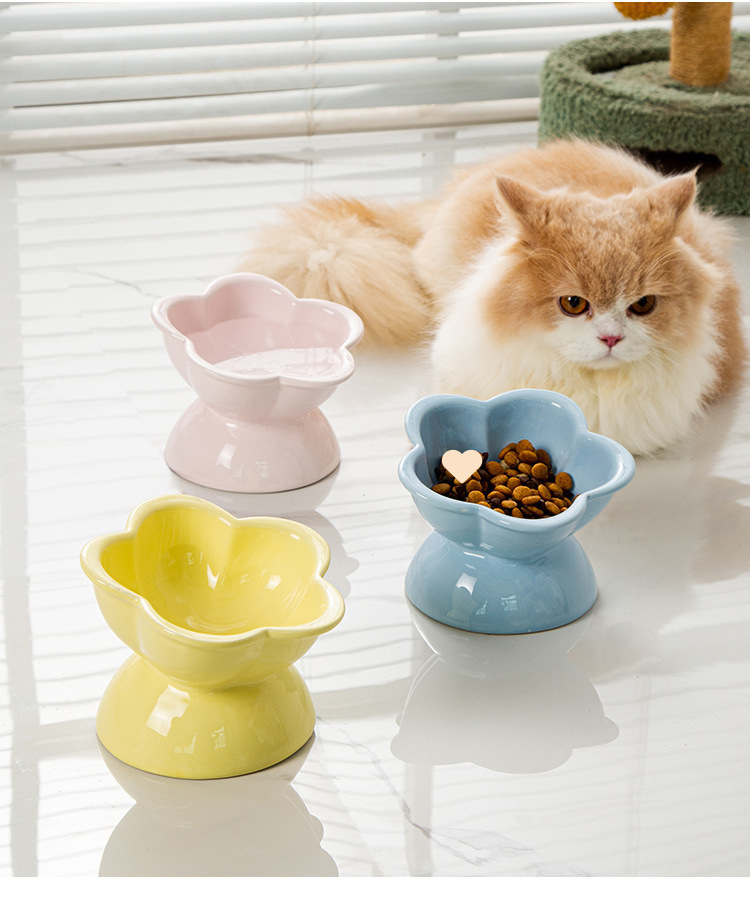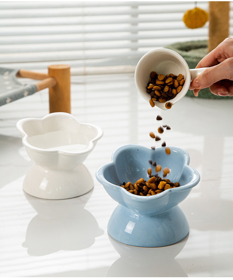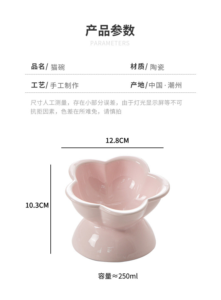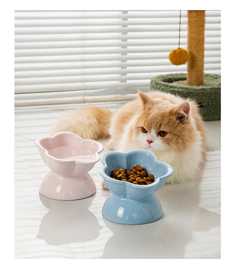 陶瓷猫碗防打翻大口径猫咪水碗高脚斜口猫咪饭碗防黑下巴食盆饭碗