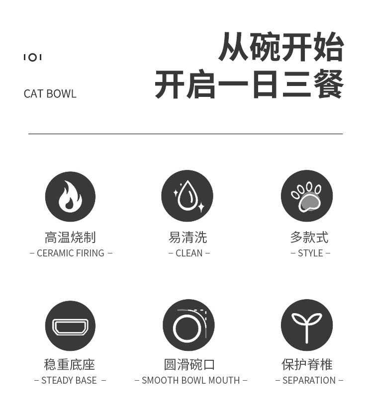 狗碗猫咪饮水粮碗猫碗陶瓷防打翻宠物斜口碗食盆饭碗大口径水碗
