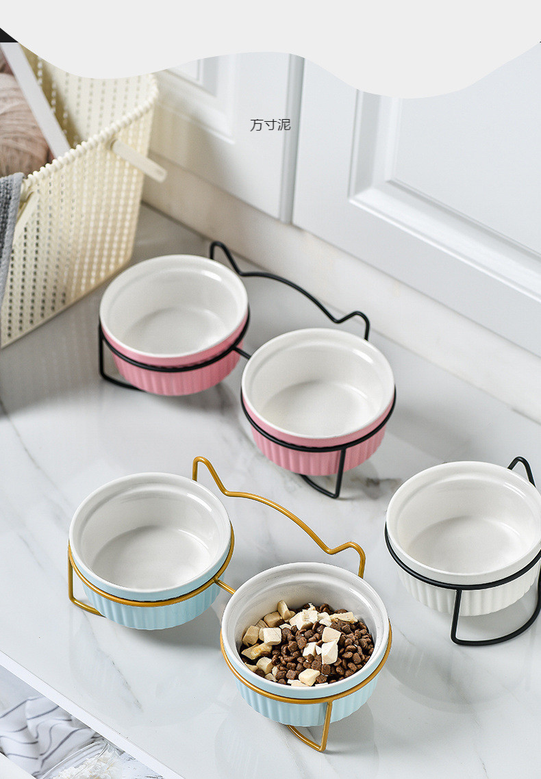 护颈猫碗宠物陶瓷双碗保护防打翻可爱食盆猫咪吃饭碗喝水两用批发