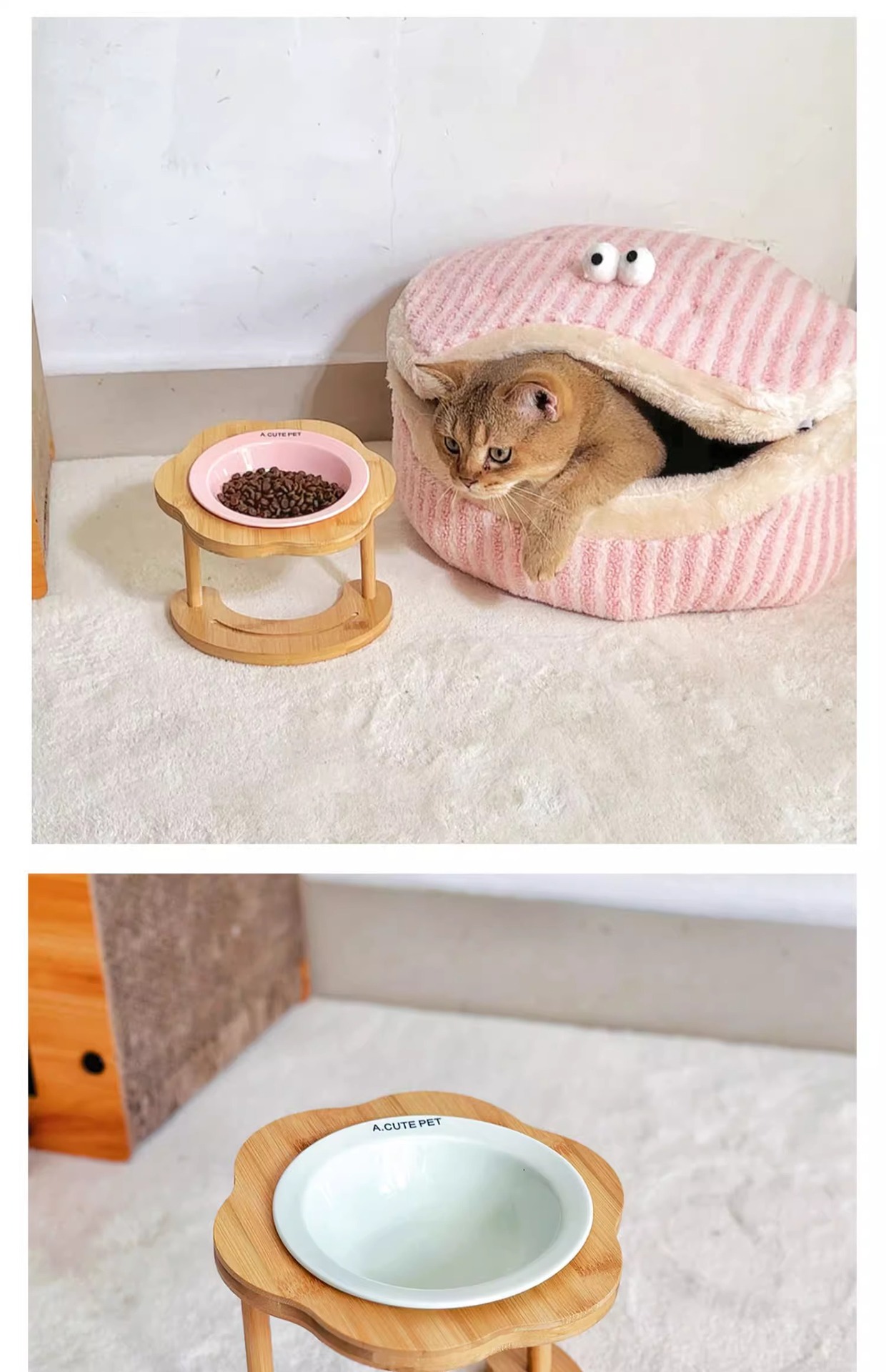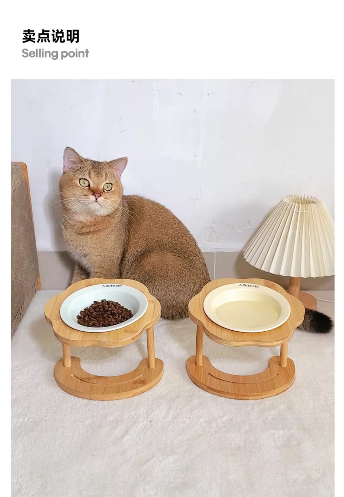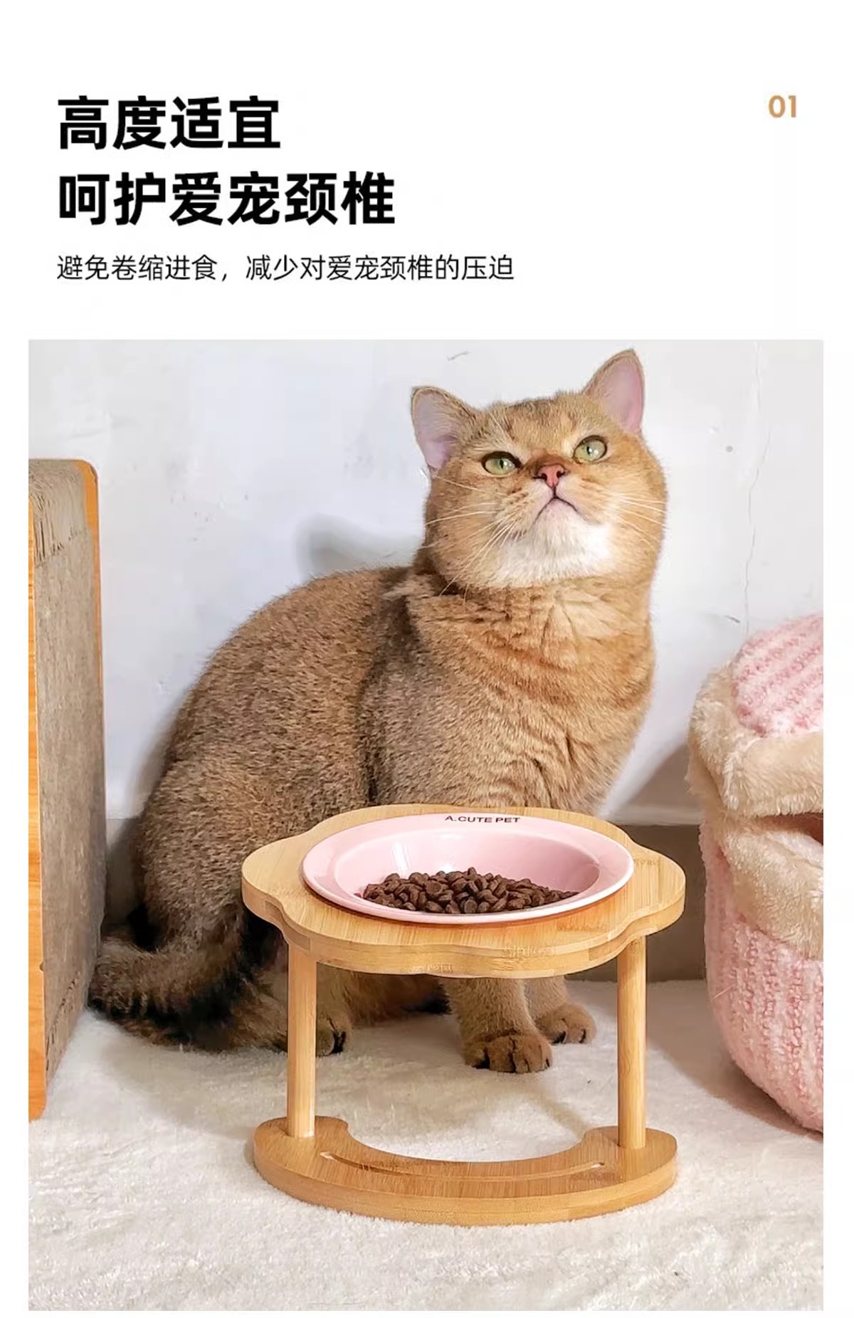 猫碗陶瓷飞碟碗猫食盆狗碗宠物猫咪盘子猫粮碗饭碗高脚保护颈椎