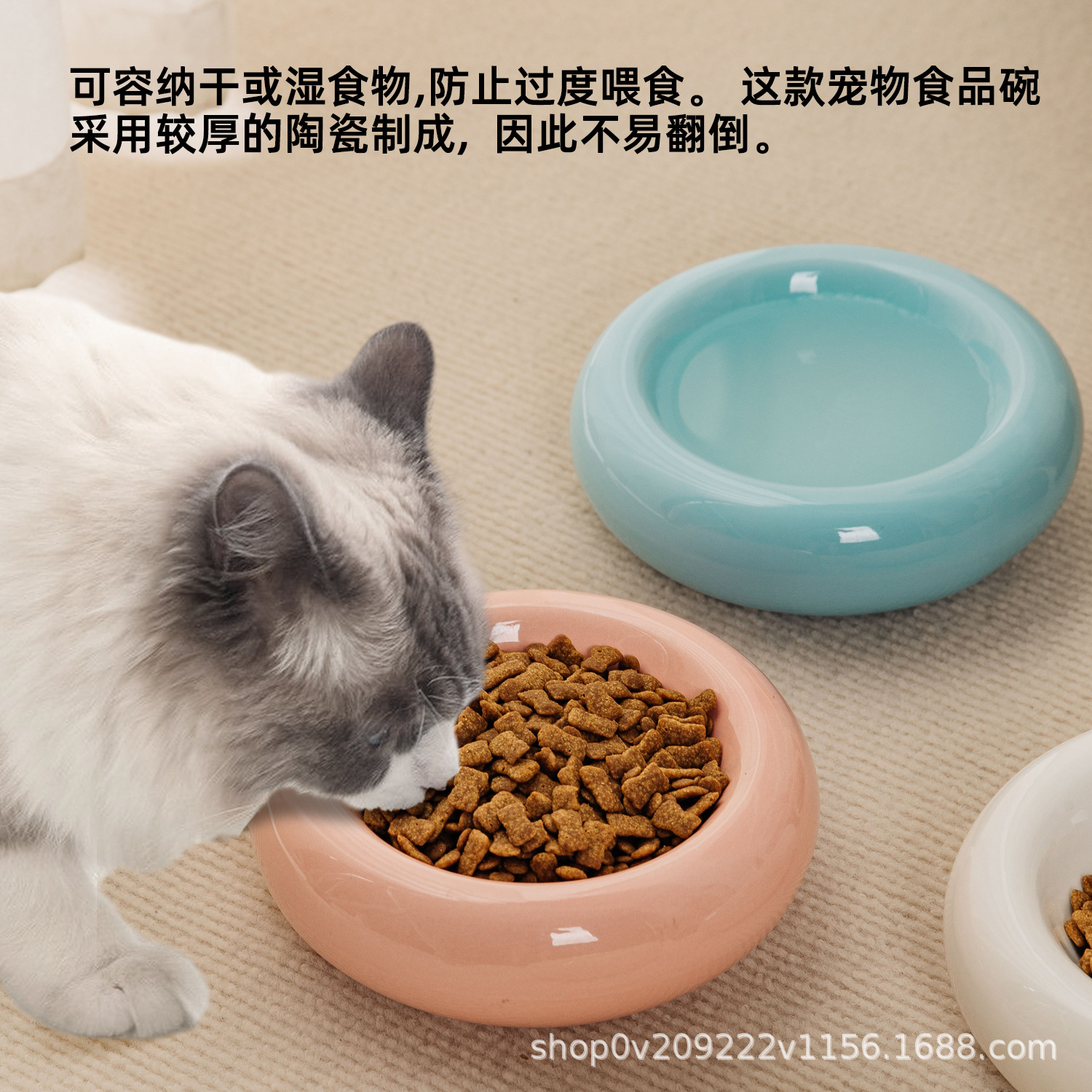 陶瓷猫碗宠物碗猫咪碗甜甜圈食器嘟嘟猫碗猫粮碗防打翻水碗零食碗