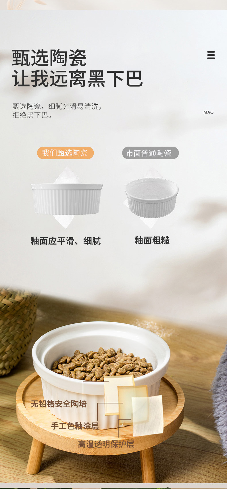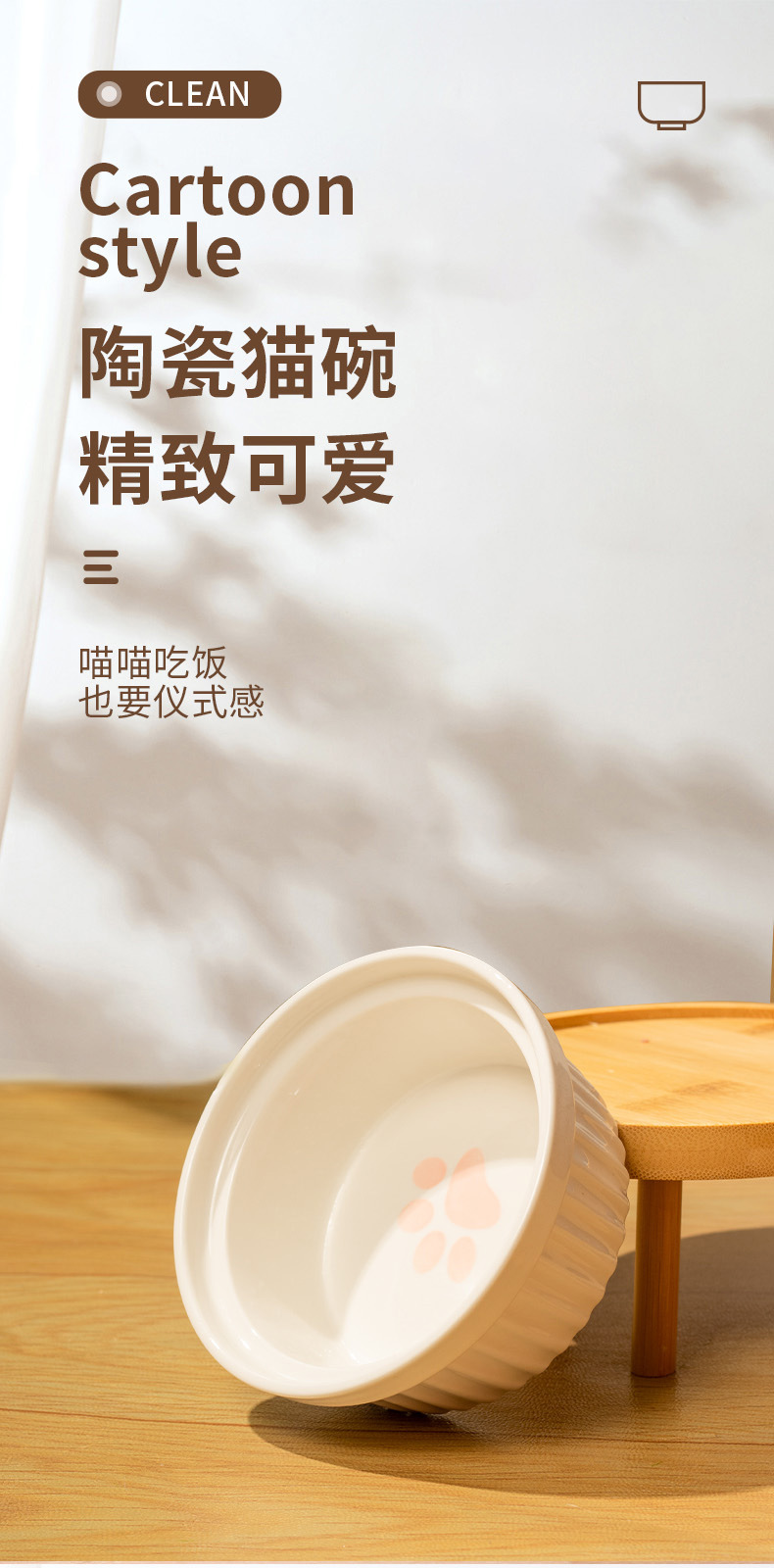 白色手绘宠物陶瓷碗猫咪喂食碗水碗食盆精致光滑易清洗猫碗批发