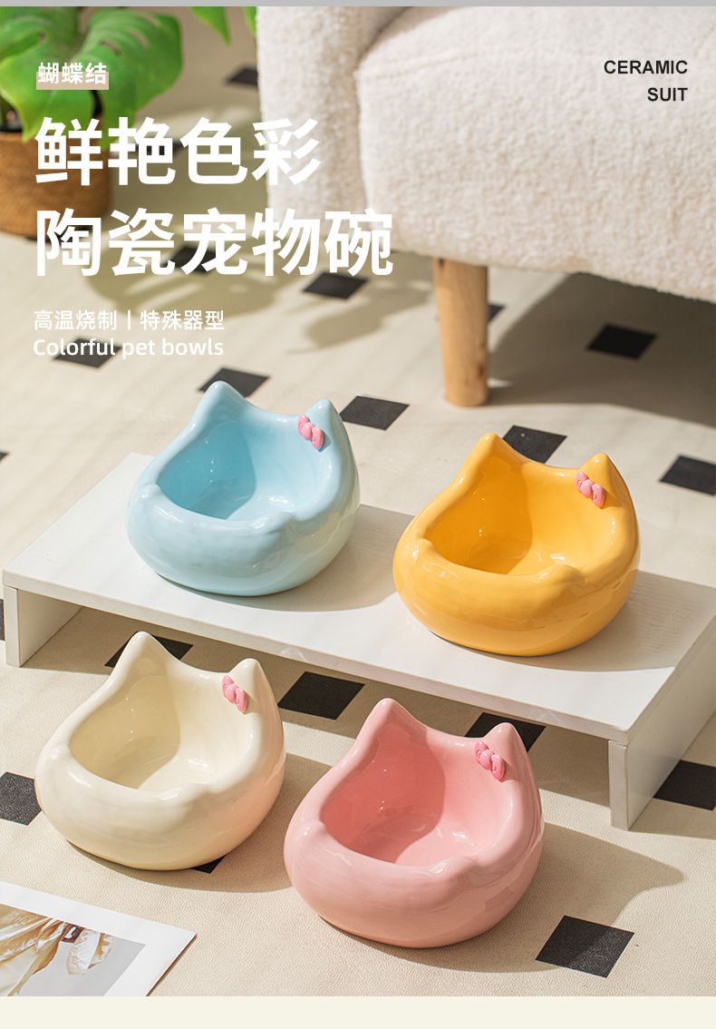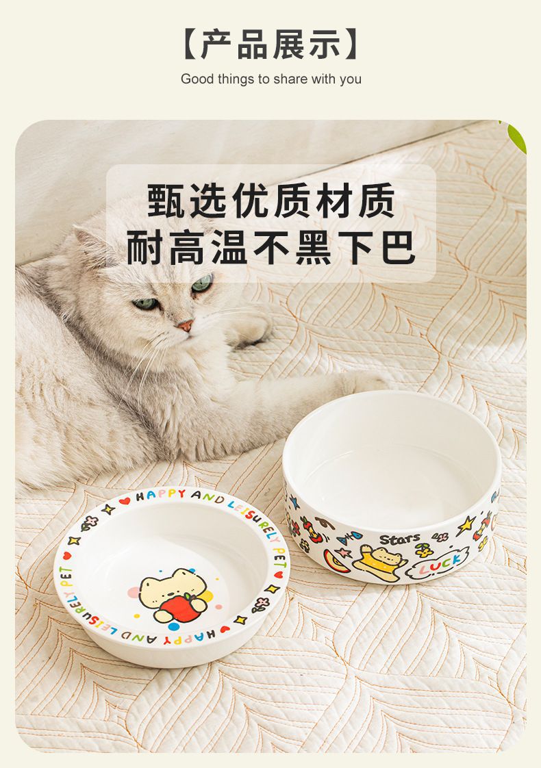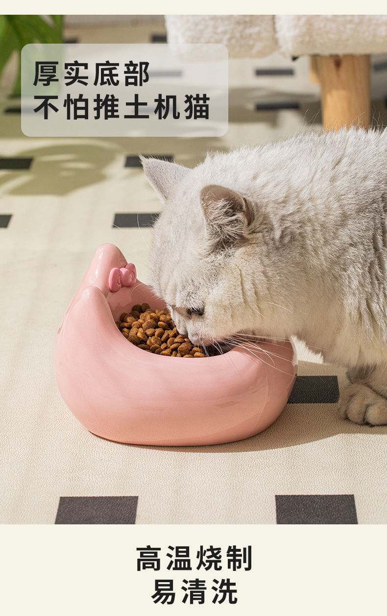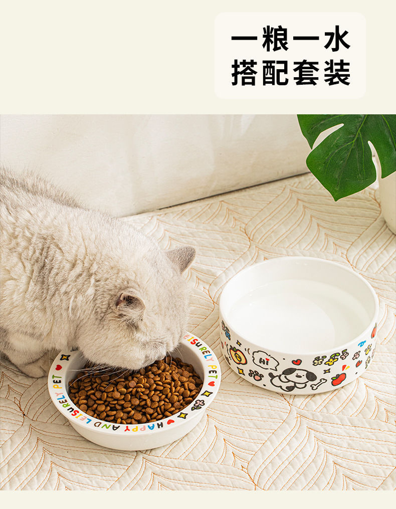 可爱陶瓷猫碗猫咪食盆狗盆狗碗饮水碗粮碗保护颈椎宠物用品防打翻