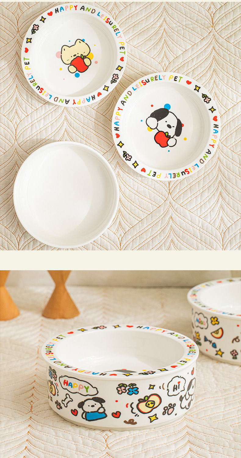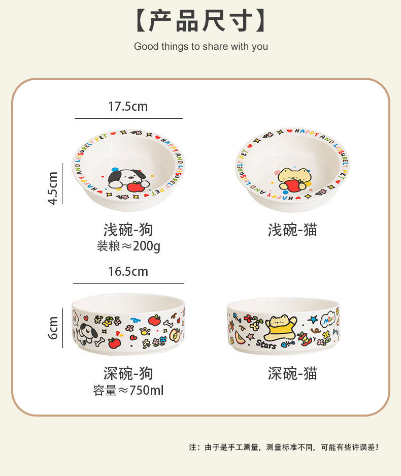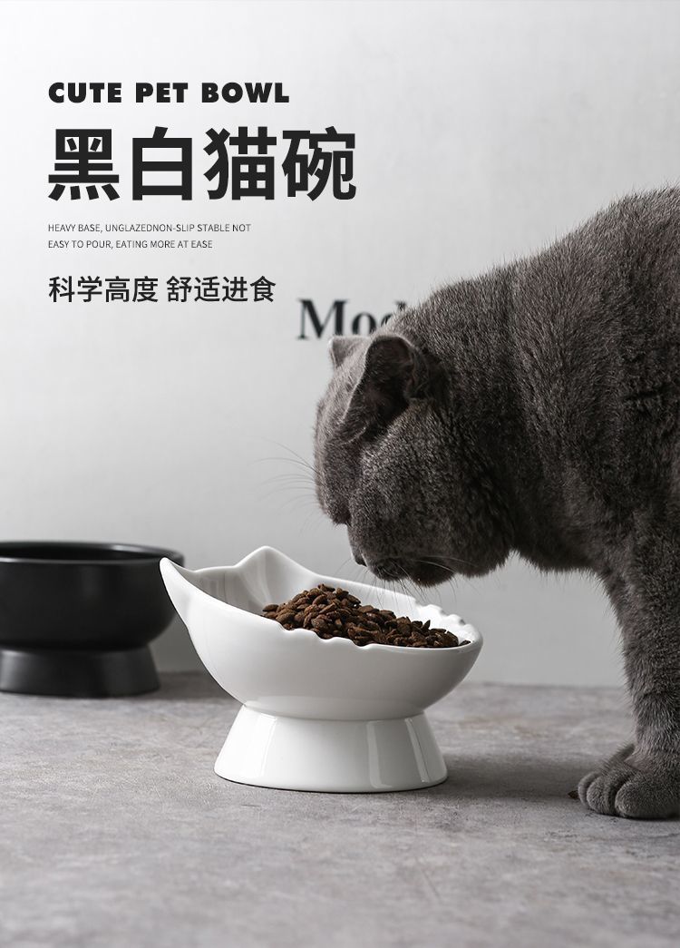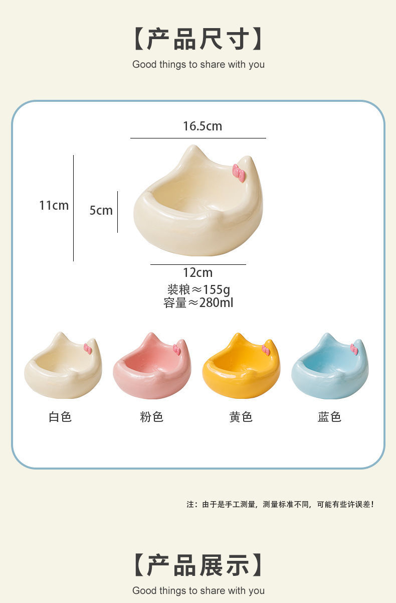可爱陶瓷猫碗猫咪食盆狗盆狗碗饮水碗粮碗保护颈椎宠物用品防打翻
