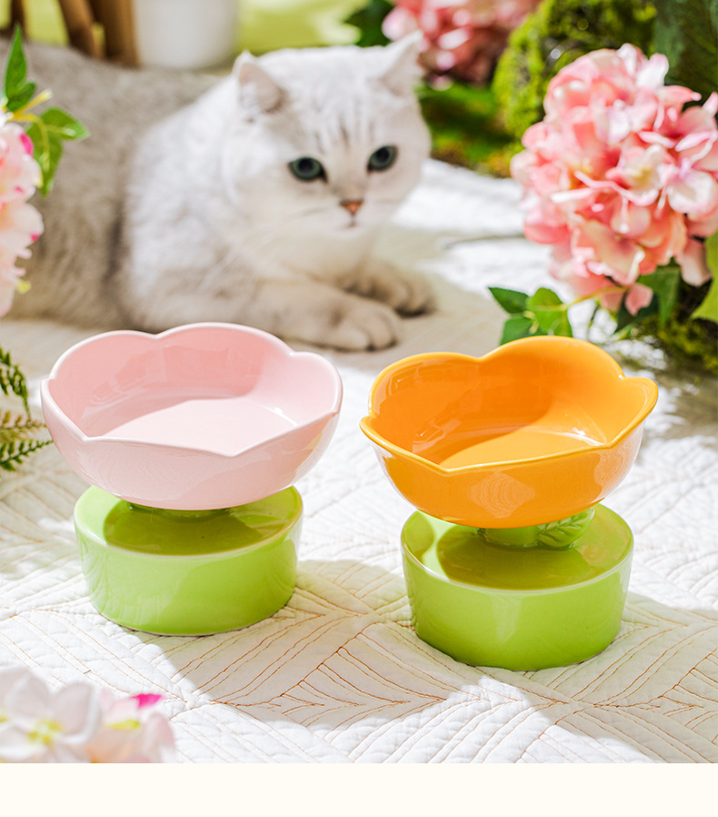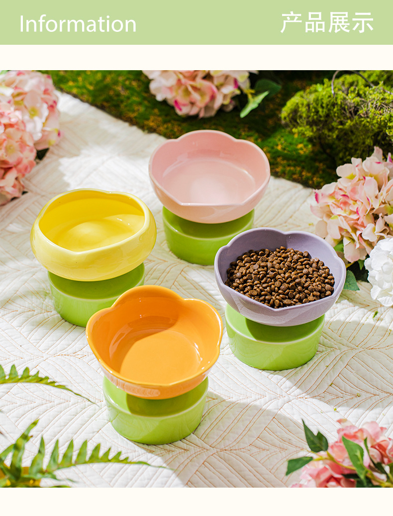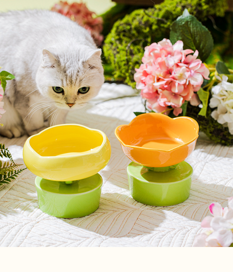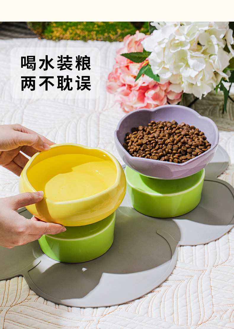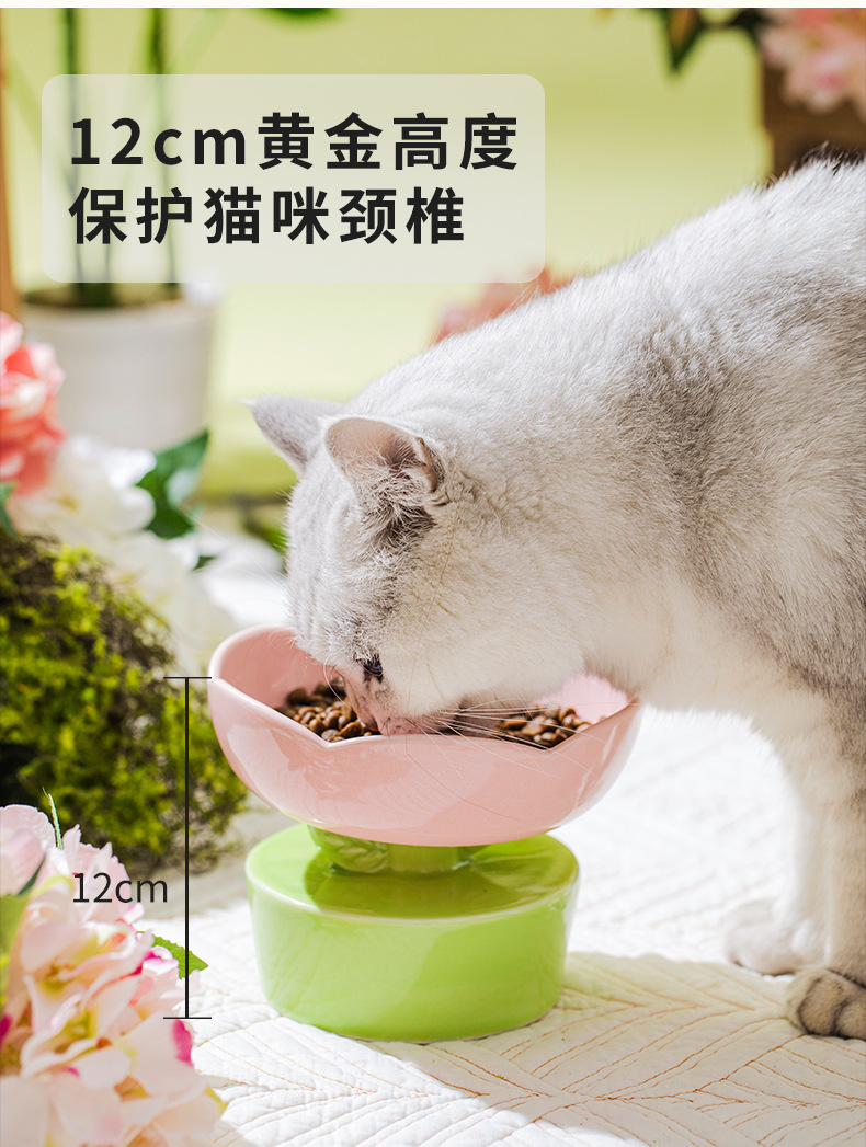 猫碗陶瓷保护颈椎防打翻猫咪粮碗狗狗吃饭喝水大容量高脚宠物食盆