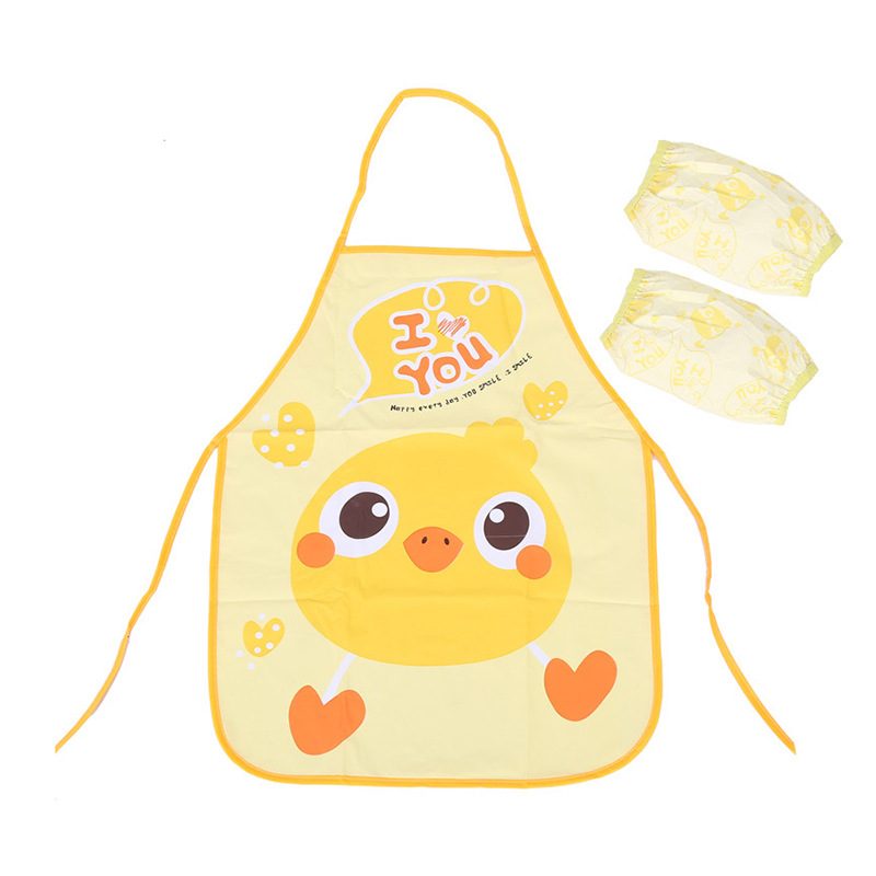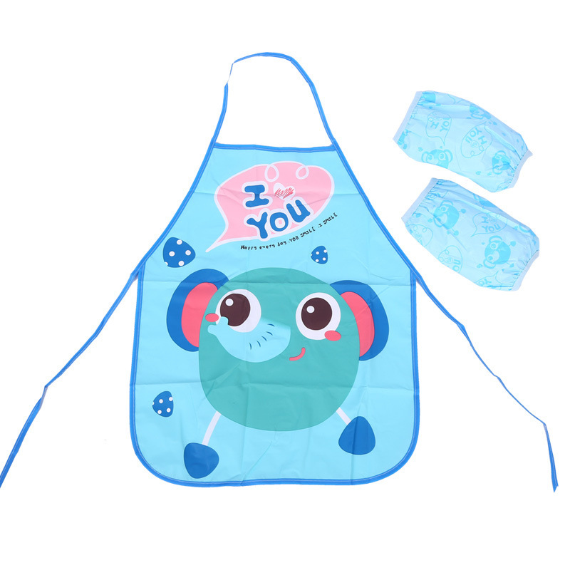 儿童卡通围裙防水口水兜 宝宝画画罩衣婴儿小孩无袖小围兜套装