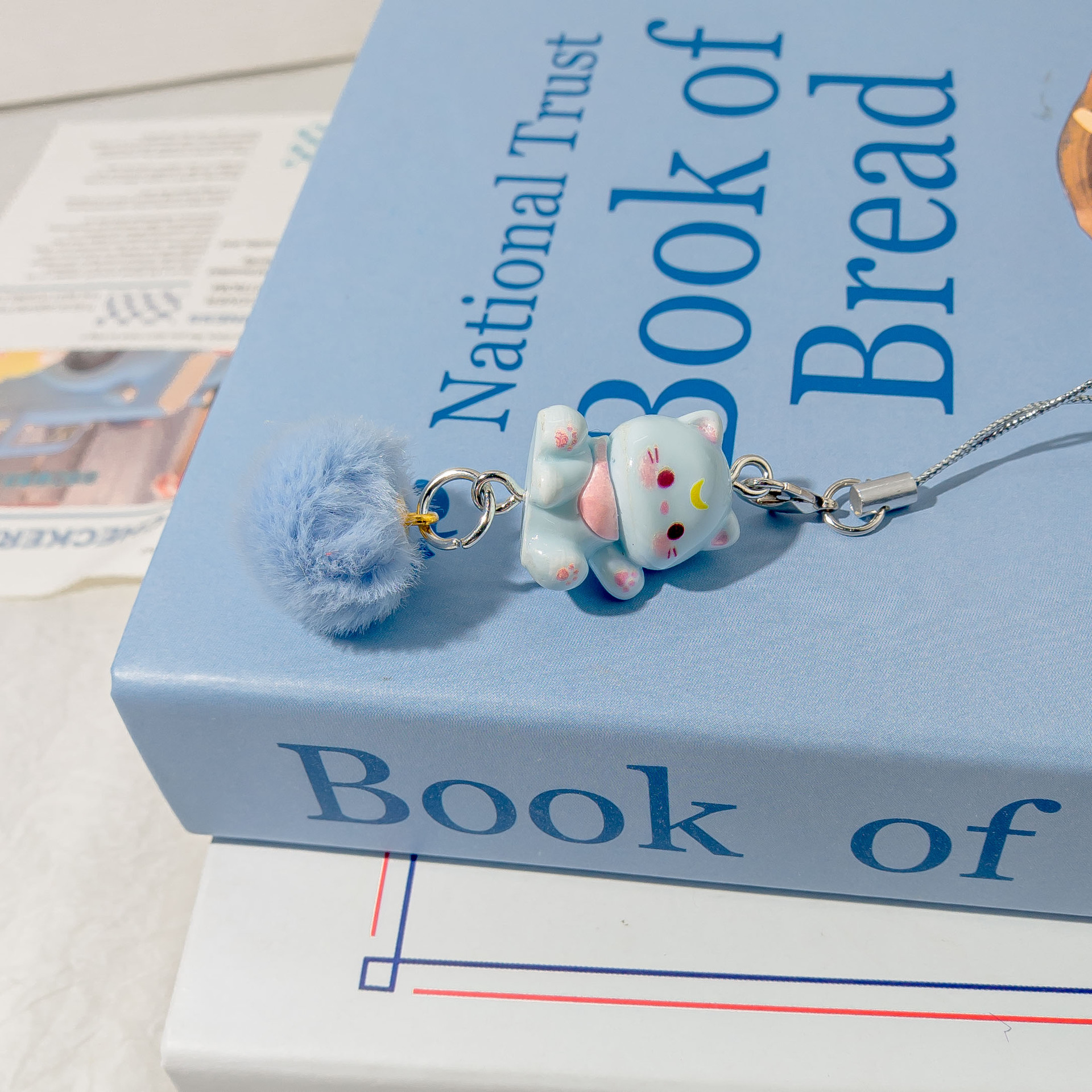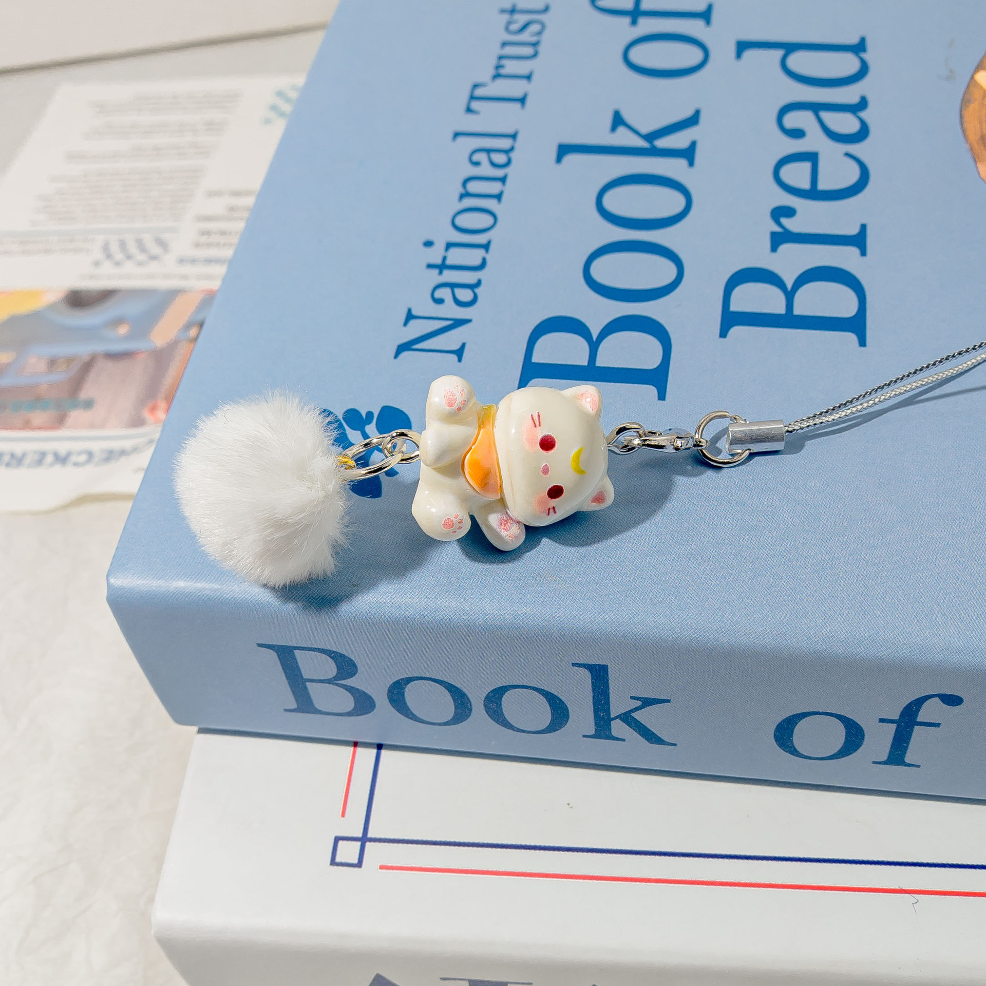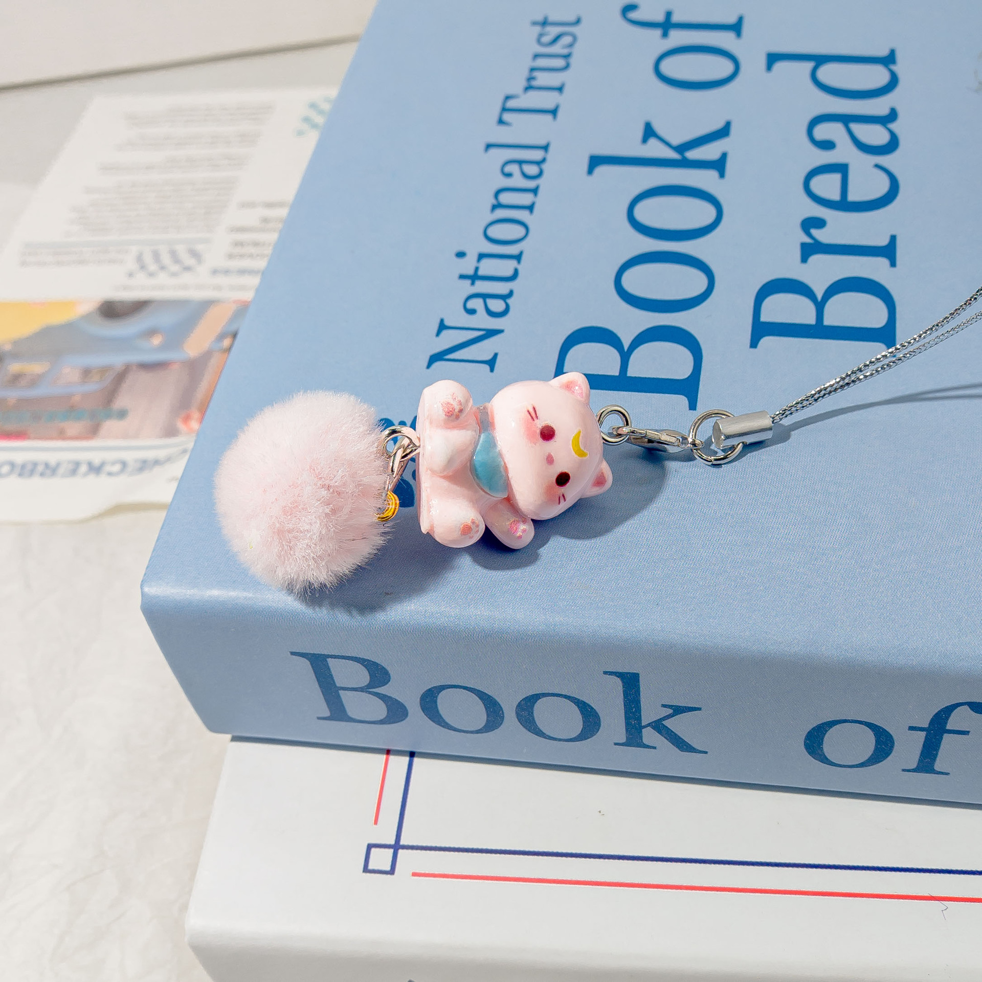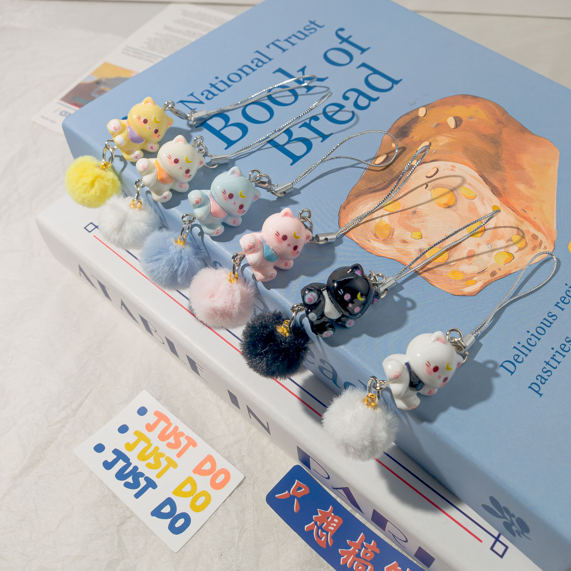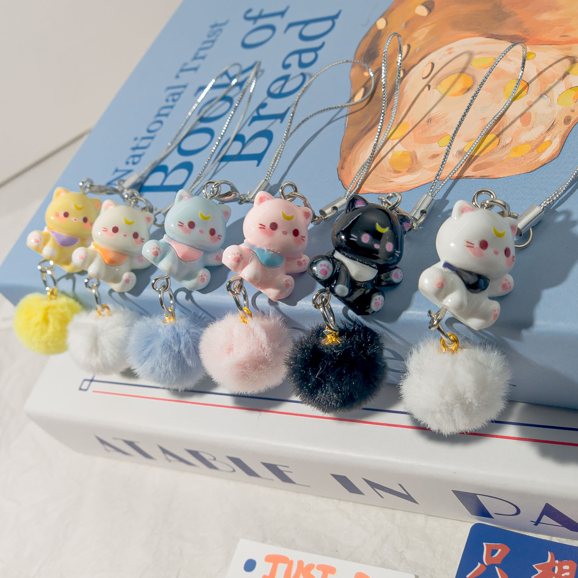 手机绳J85打招呼小猫毛球吊坠串珠甜美少女心手机链猫咪卡通挂件