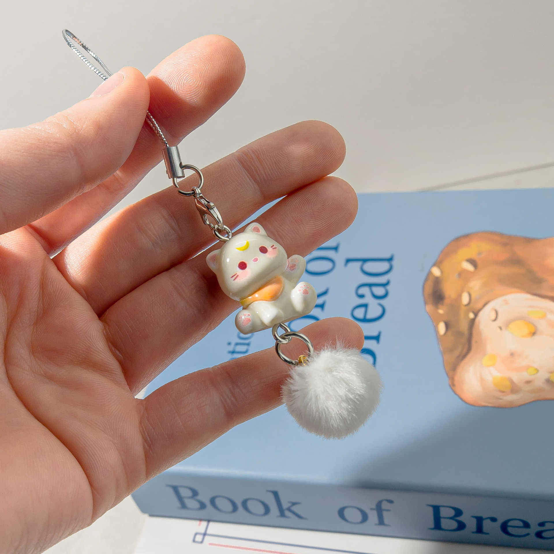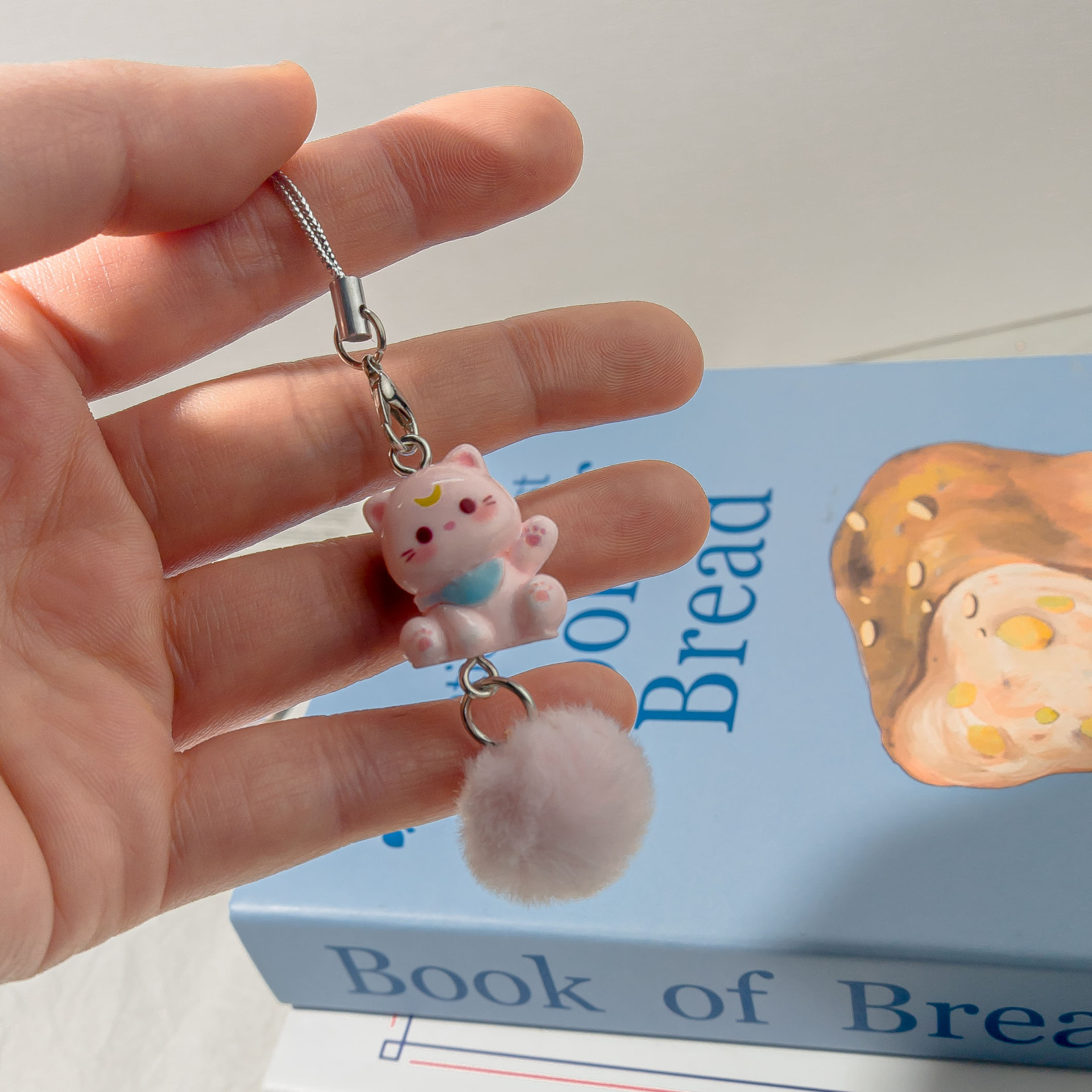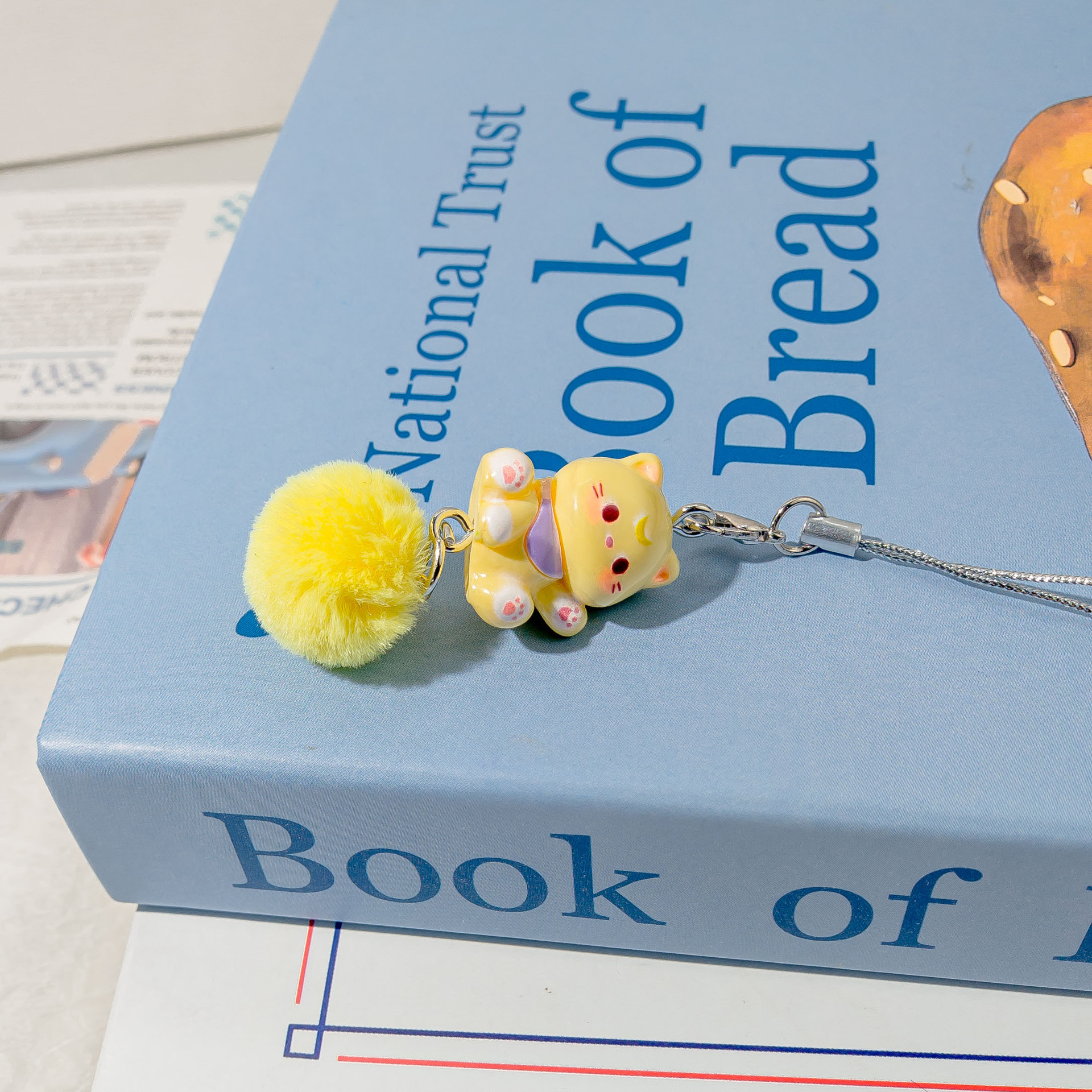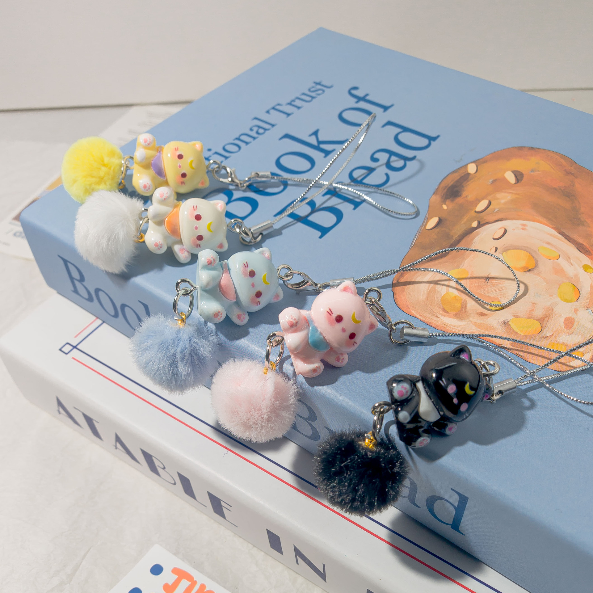 手机绳J85打招呼小猫毛球吊坠串珠甜美少女心手机链猫咪卡通挂件
