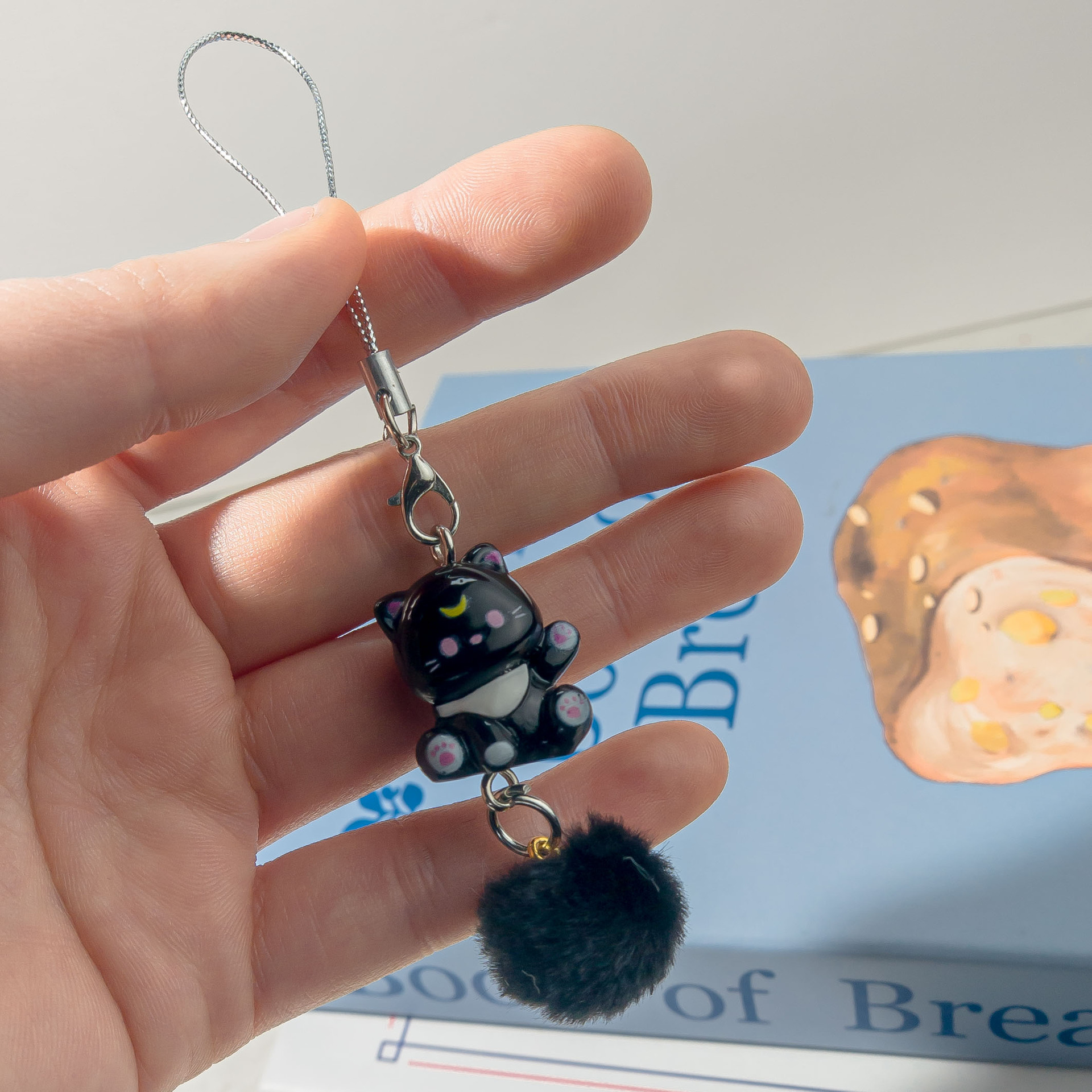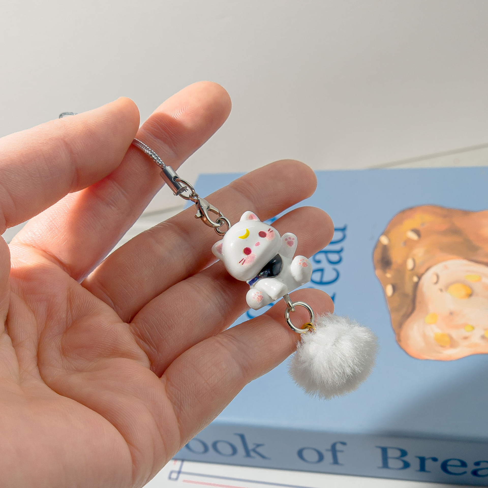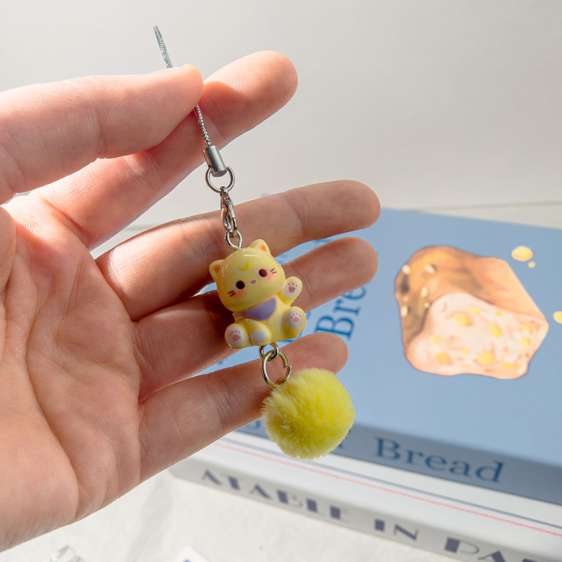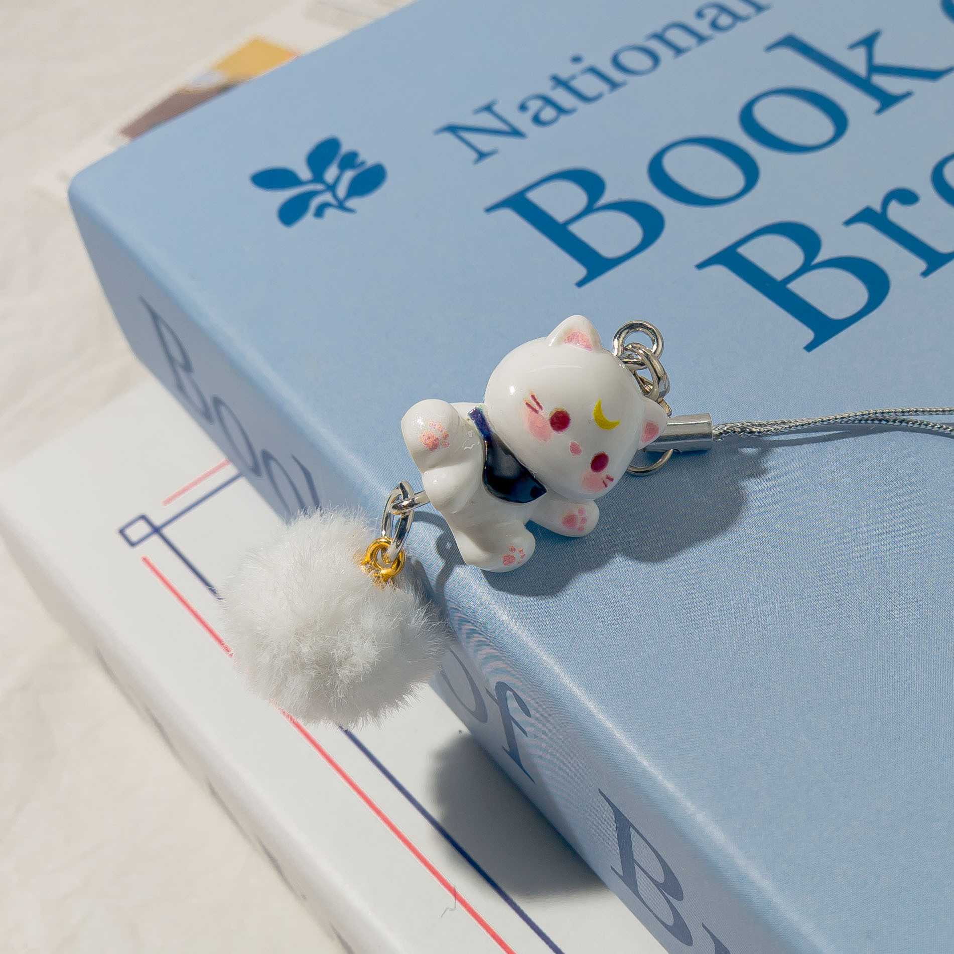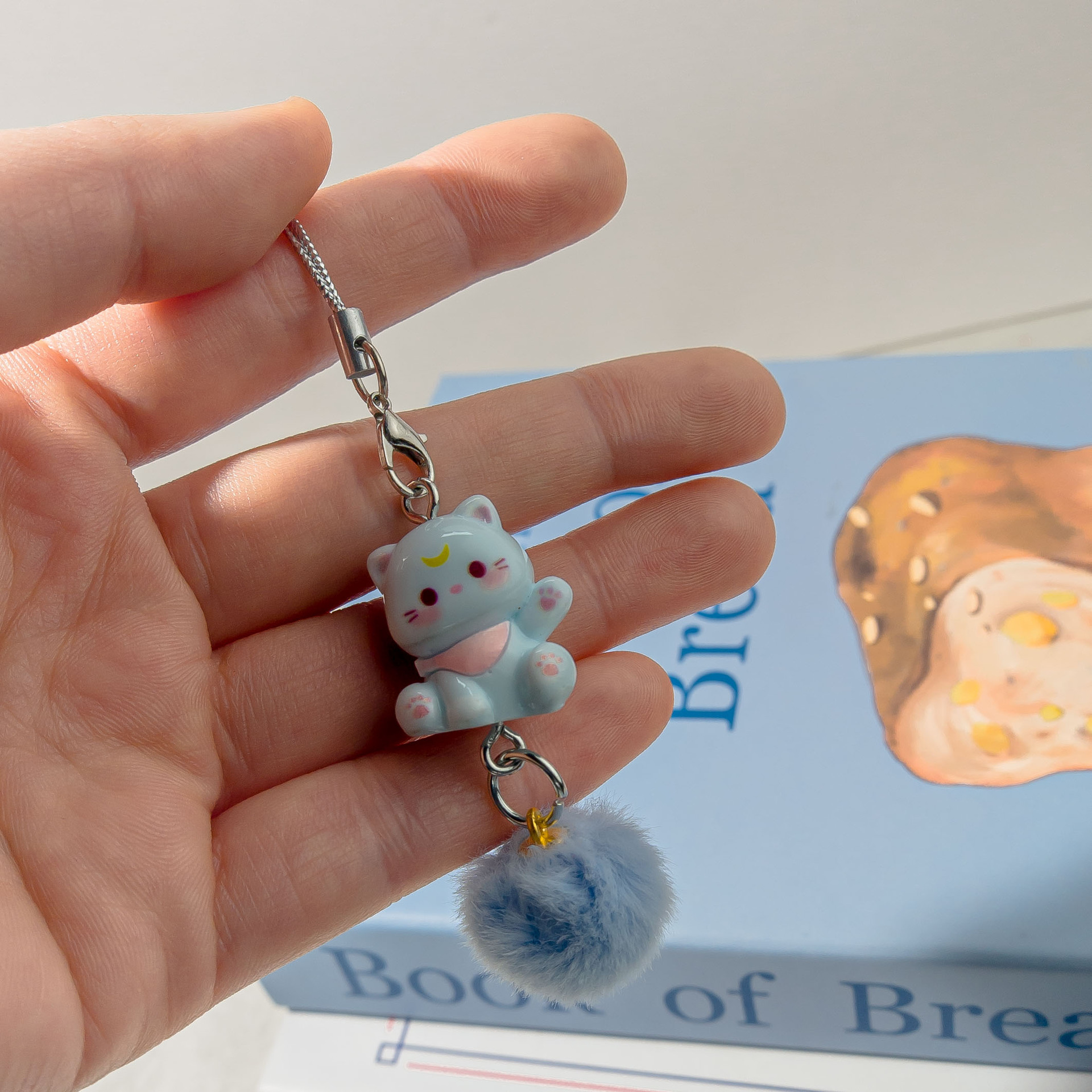 手机绳J85打招呼小猫毛球吊坠串珠甜美少女心手机链猫咪卡通挂件