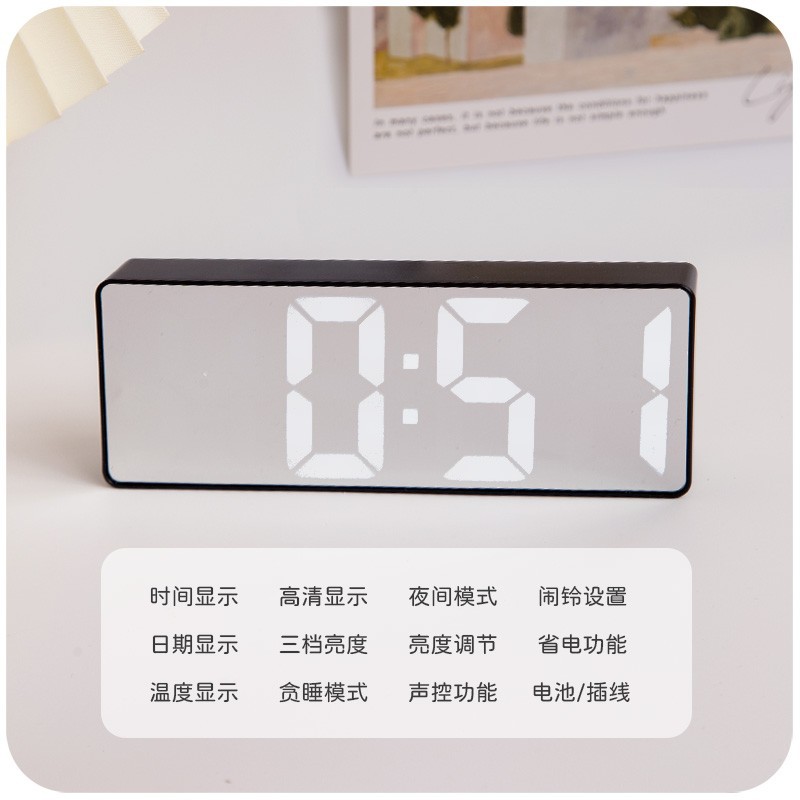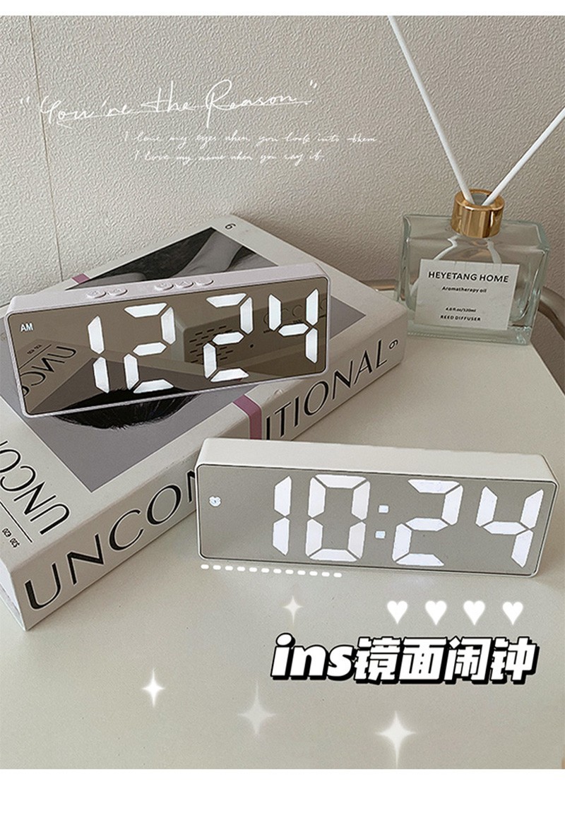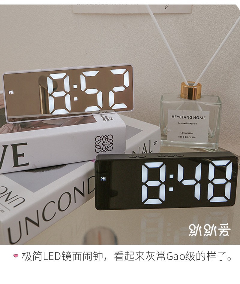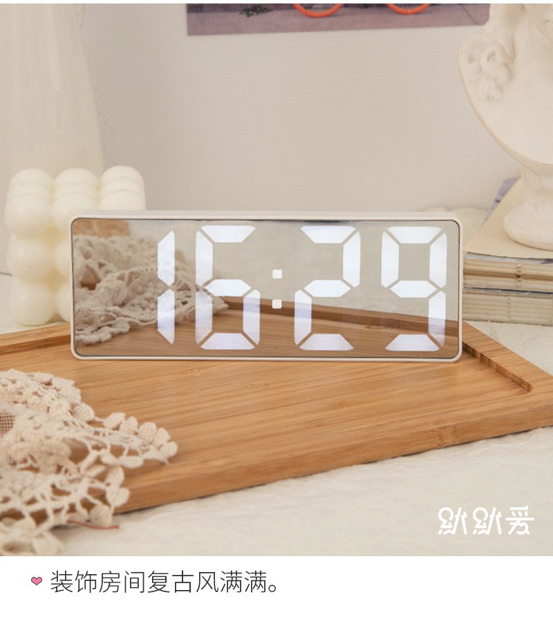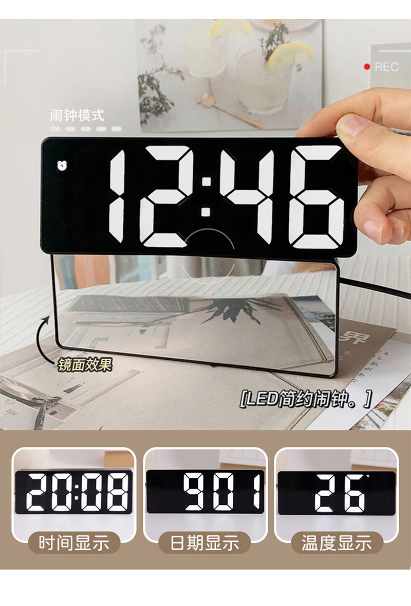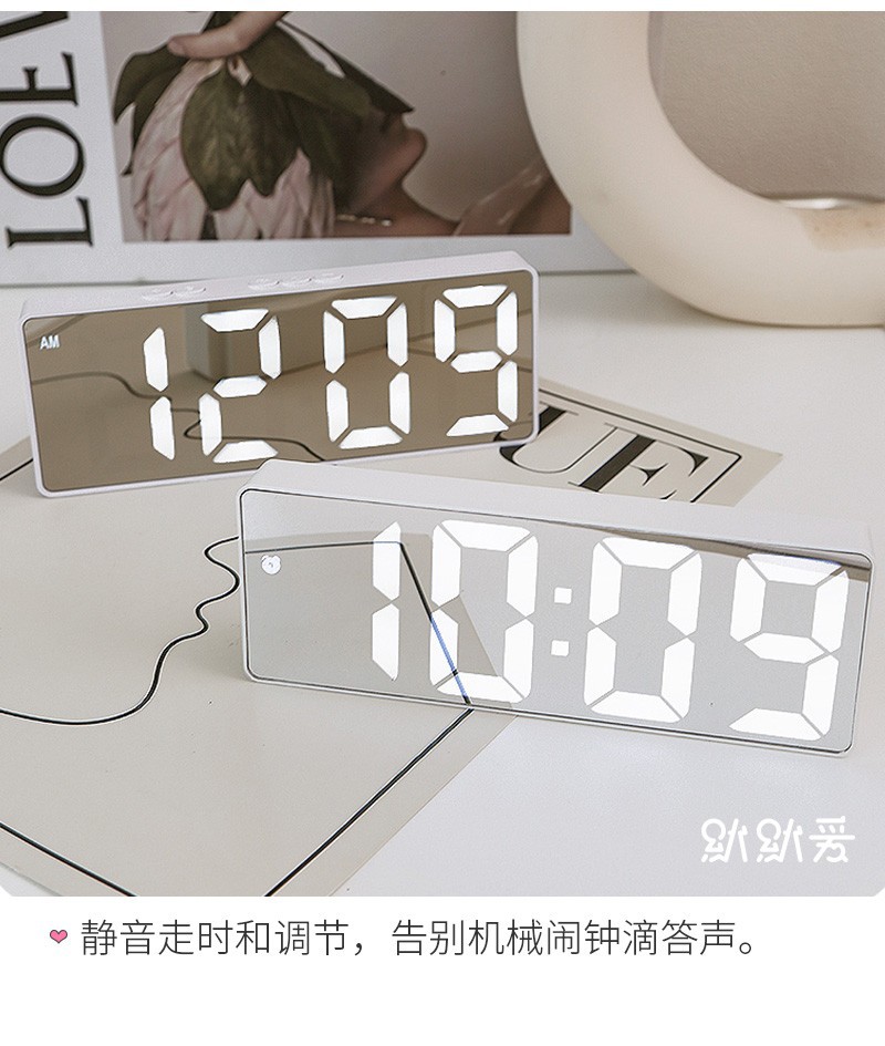 镜面闹钟表摆台式摆件简约钟表时间显示器学生用桌面数字电子时钟