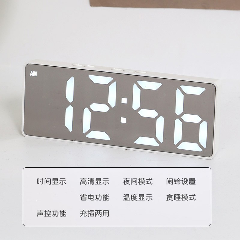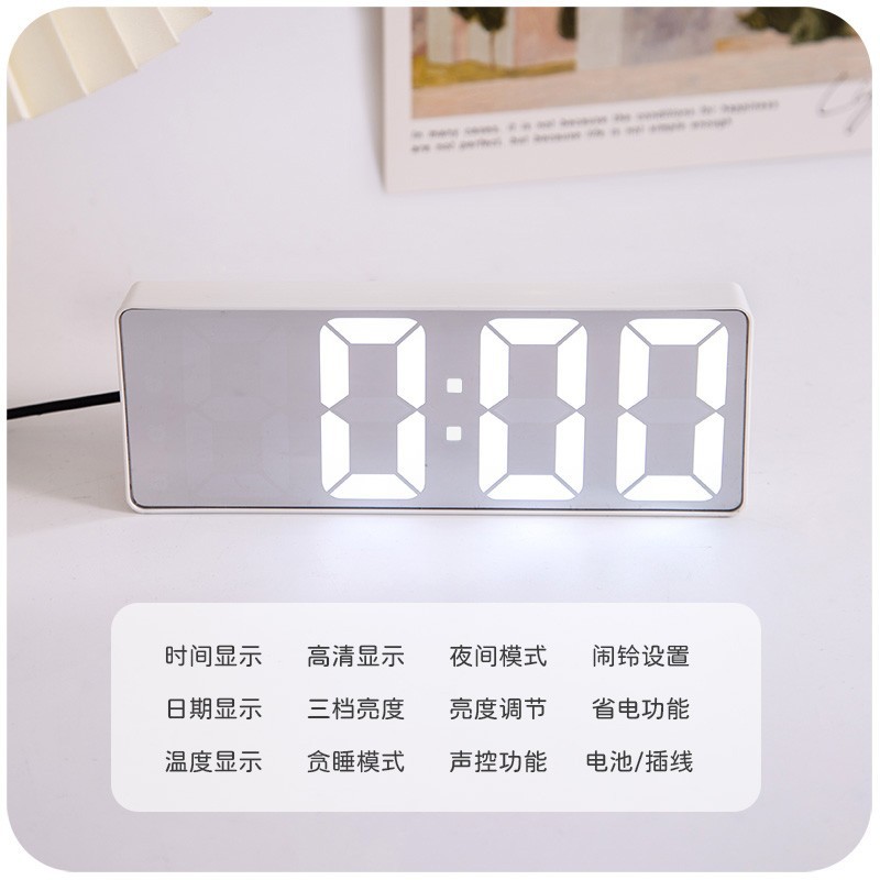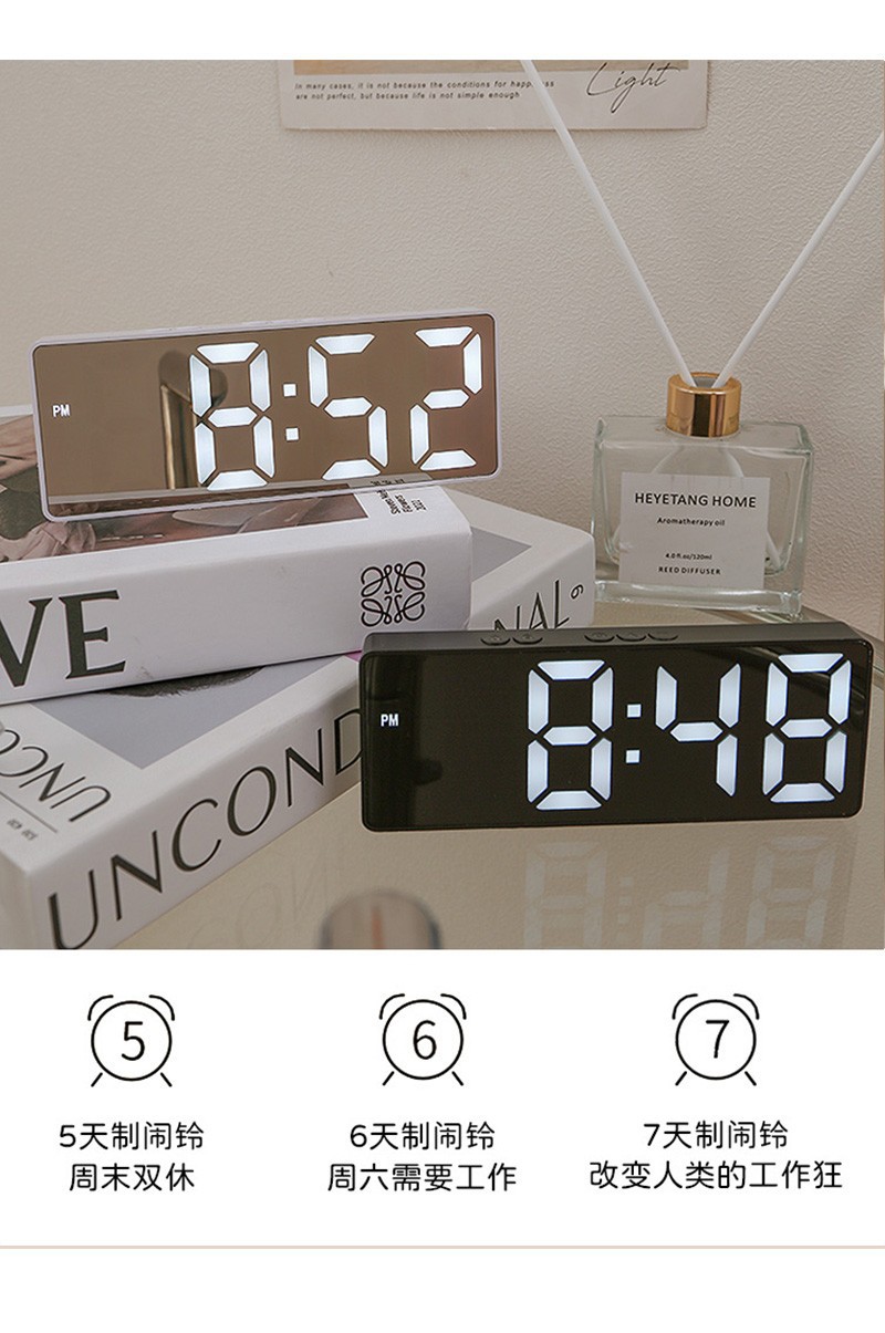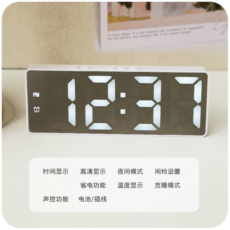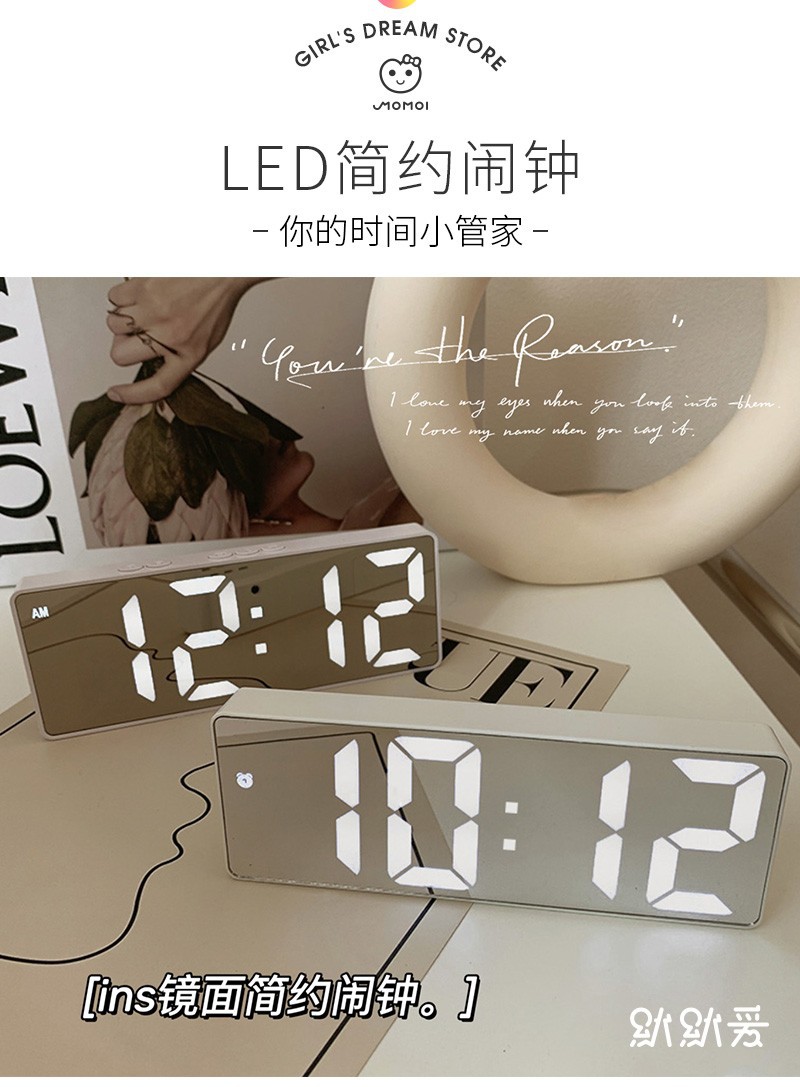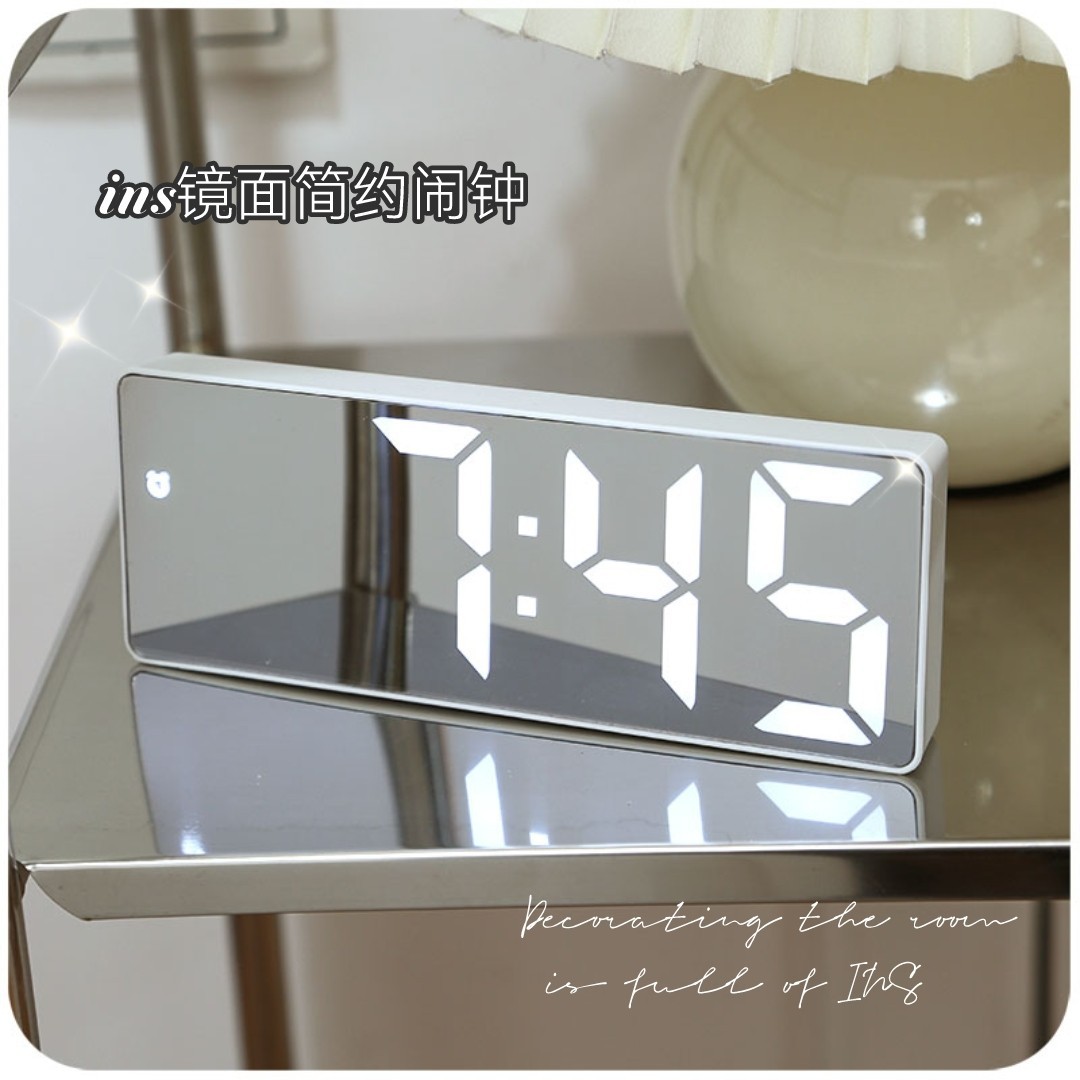 镜面闹钟表摆台式摆件简约钟表时间显示器学生用桌面数字电子时钟