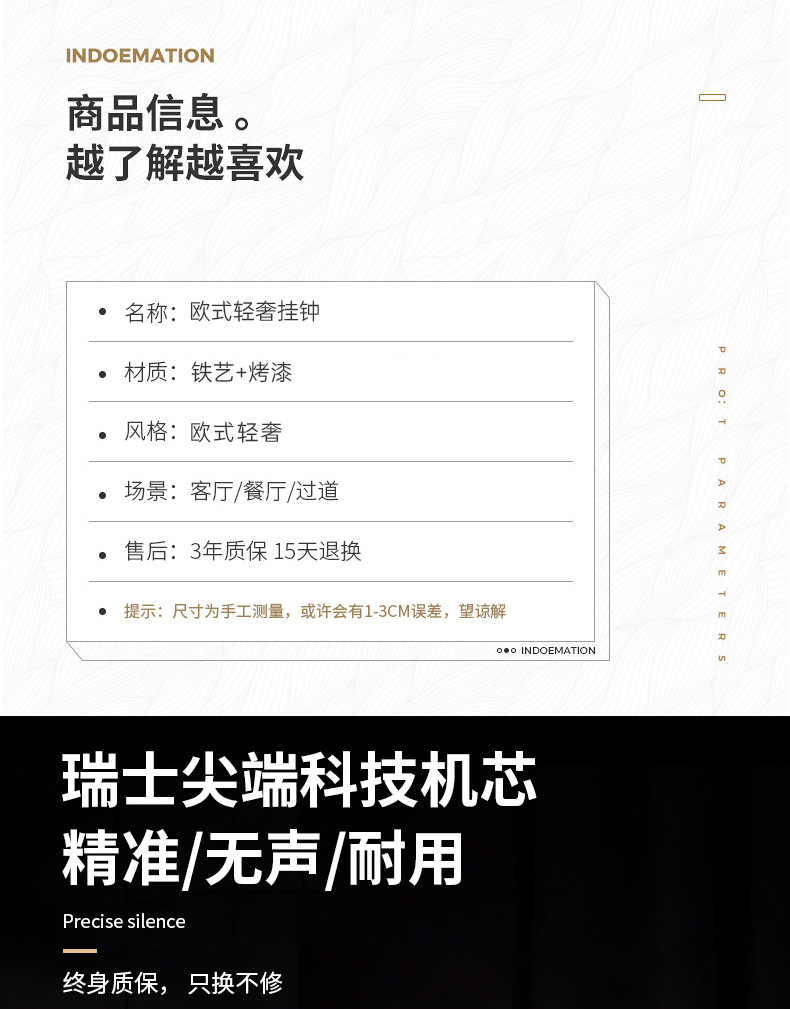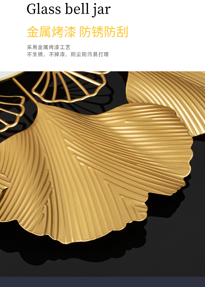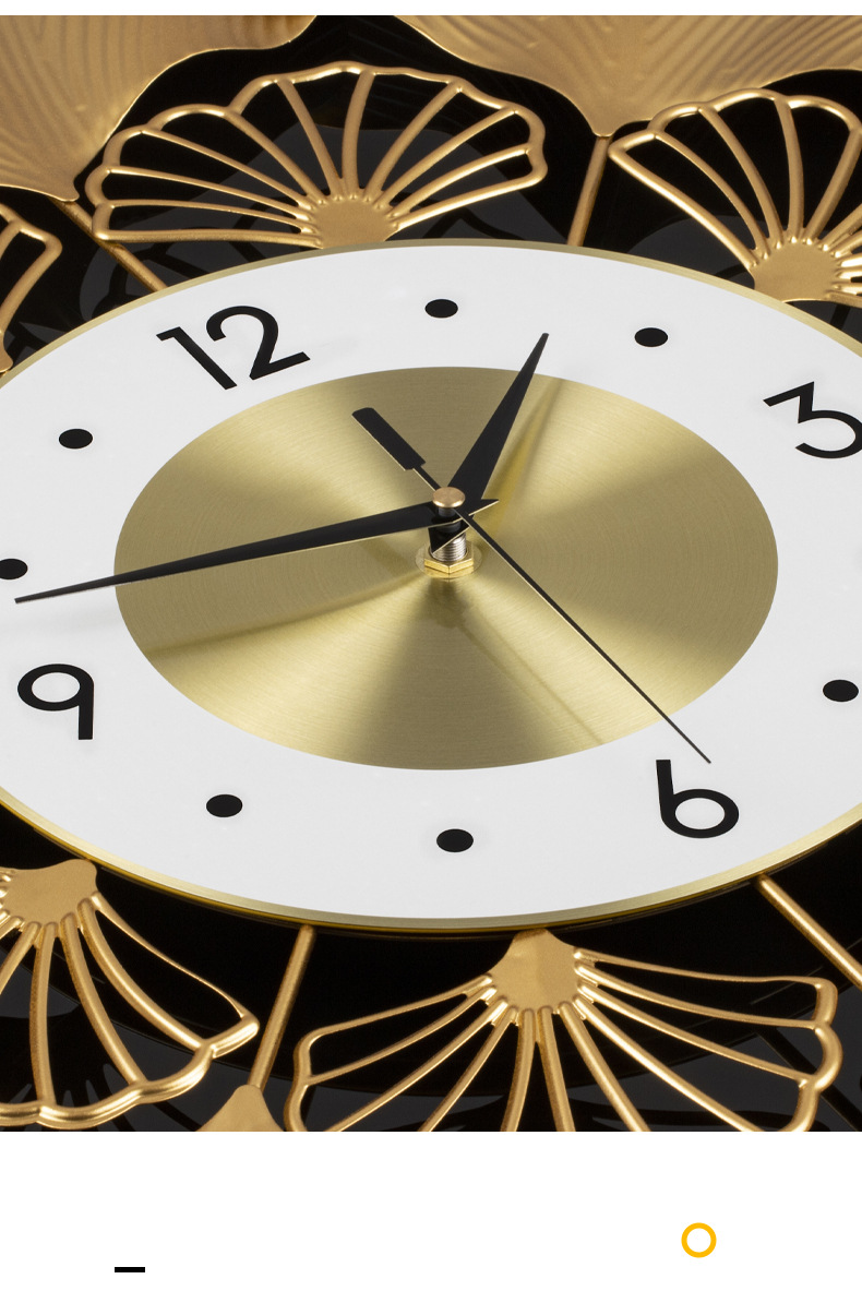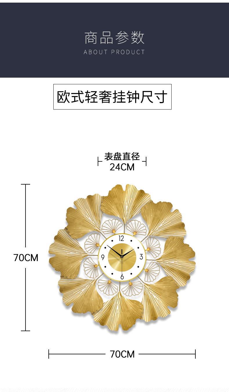 银杏叶创意挂钟欧式轻奢钟表 客厅美式简约家居装饰艺术时钟挂墙