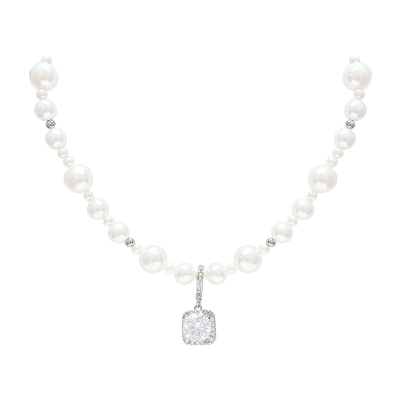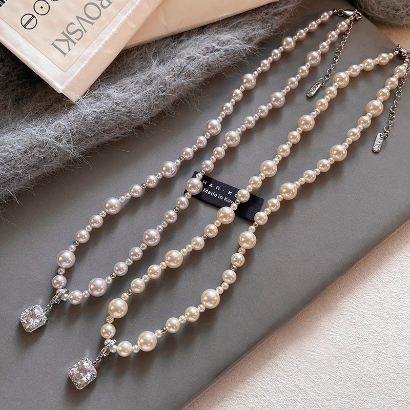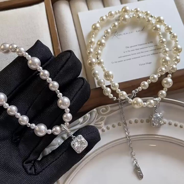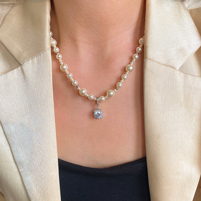 5A级锆石方钻吊坠锁骨链网红颈链S家珍珠项链轻奢小众高级感精致
