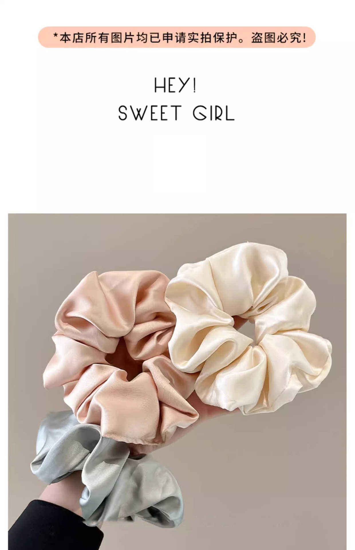 法式优雅奶油白色光泽感缎面高弹力丸子头头绳无痕护发头饰发饰品