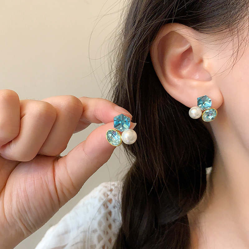 饰品小众高级感珍珠耳环耳饰品S925纯银针甜美气质蓝色水晶耳环女
