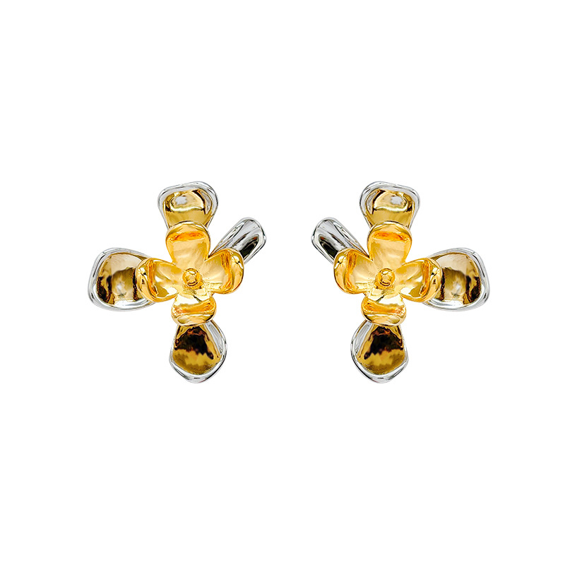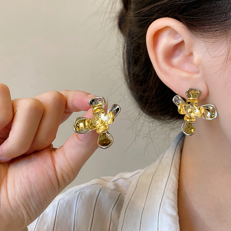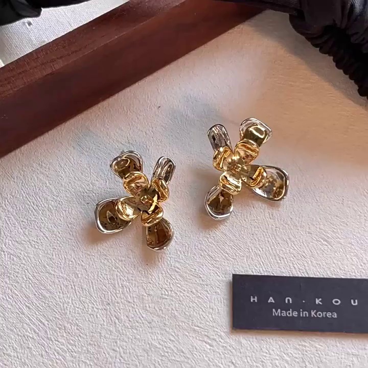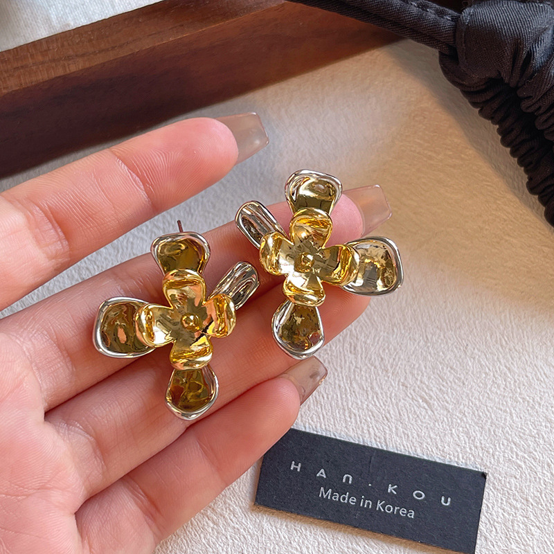 真金电镀不规则金属感花朵耳环女S925纯银针韩系爆款冷淡风耳钉
