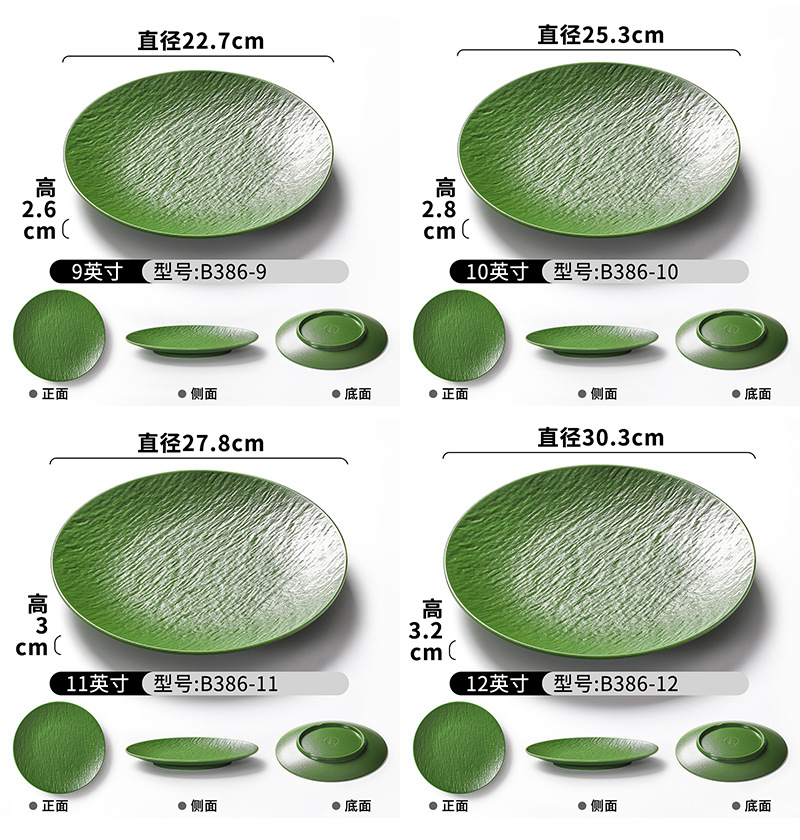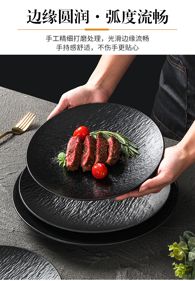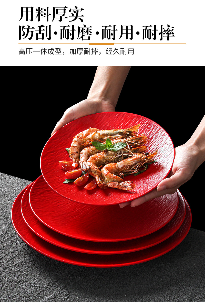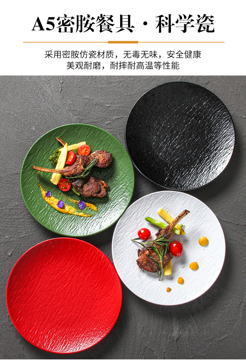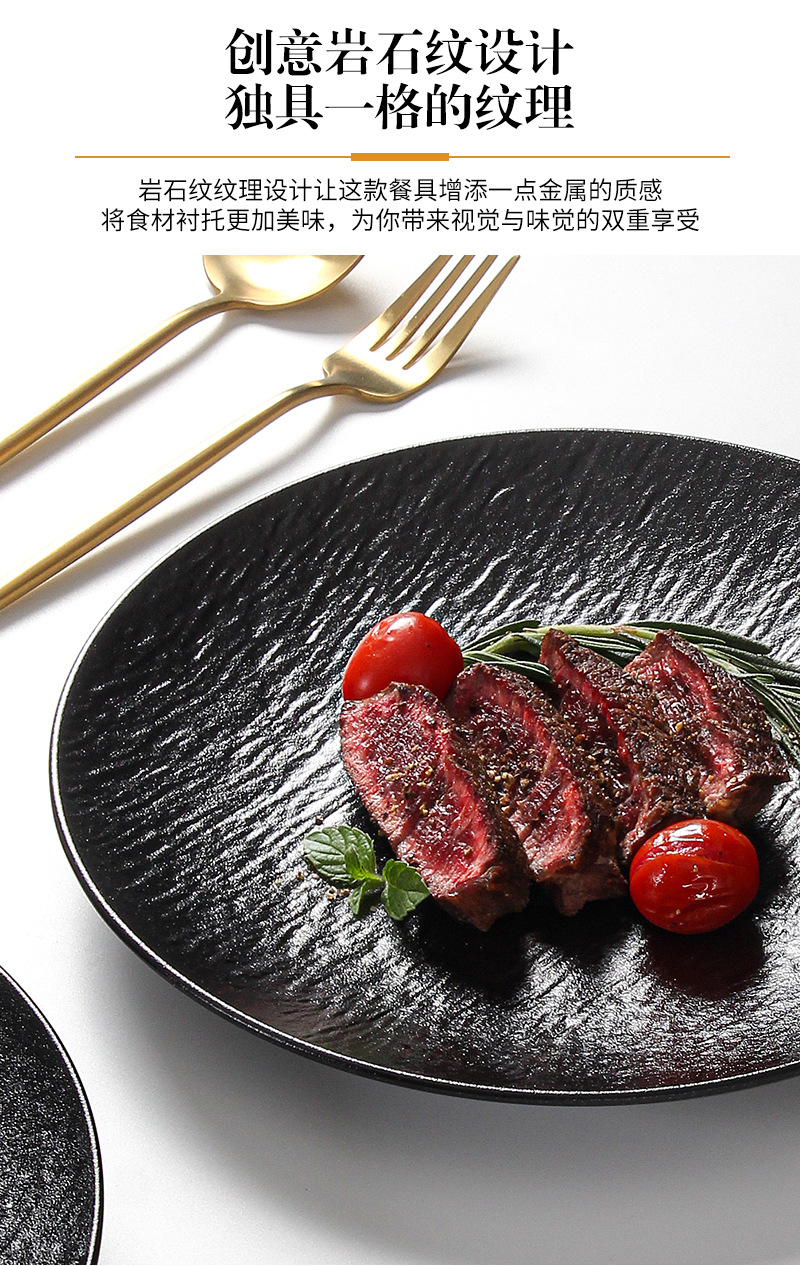 密胺烧烤盘子商用烤肉盘餐厅饭店高级感石纹浮雕意面盘西餐沙拉牛