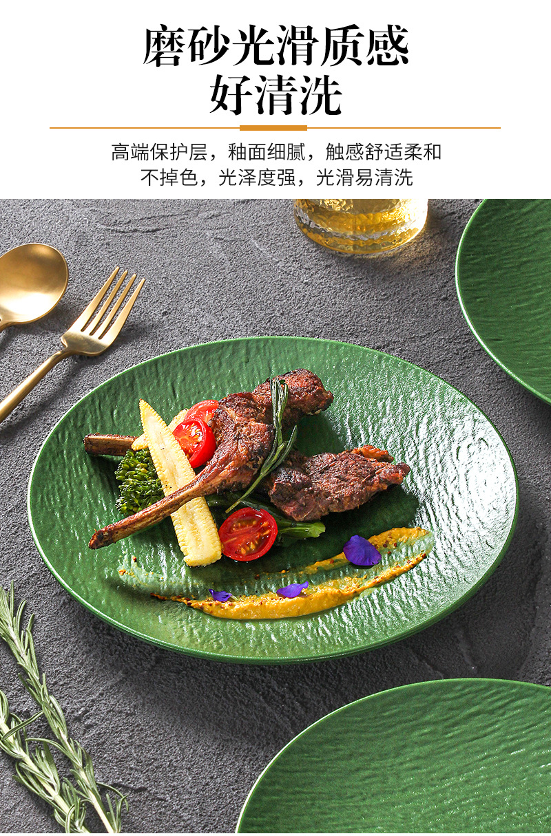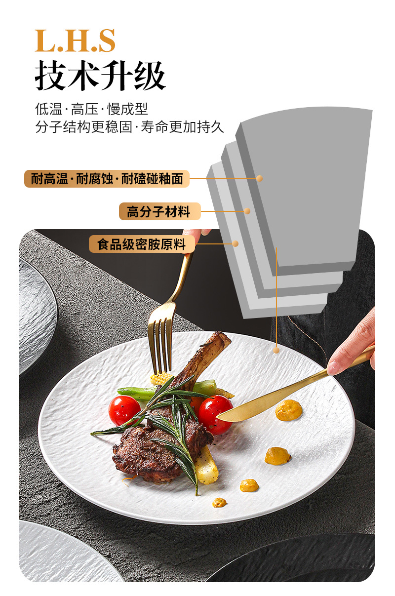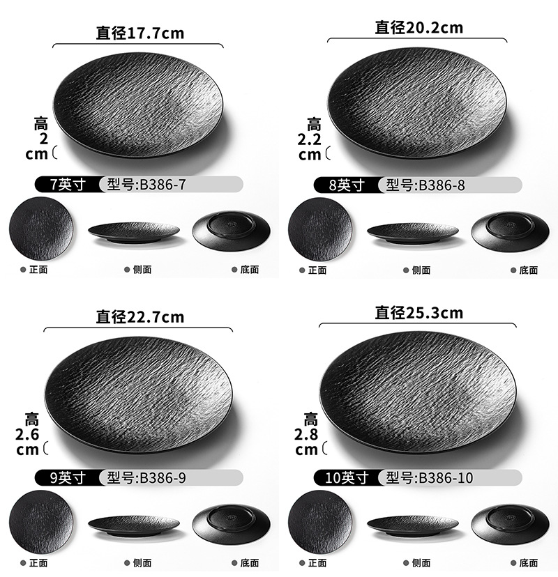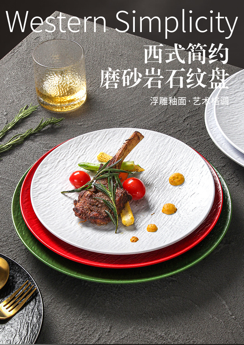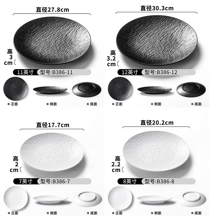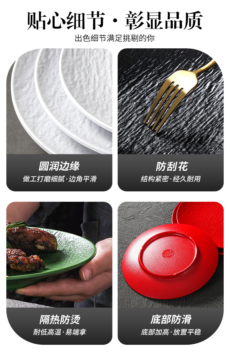 密胺烧烤盘子商用烤肉盘餐厅饭店高级感石纹浮雕意面盘西餐沙拉牛
