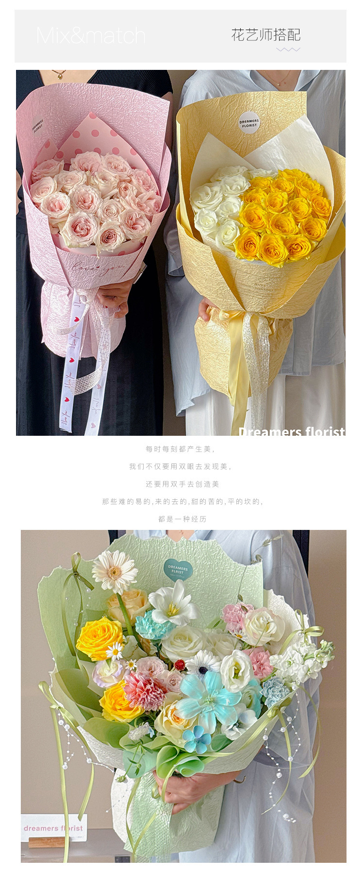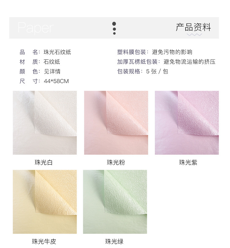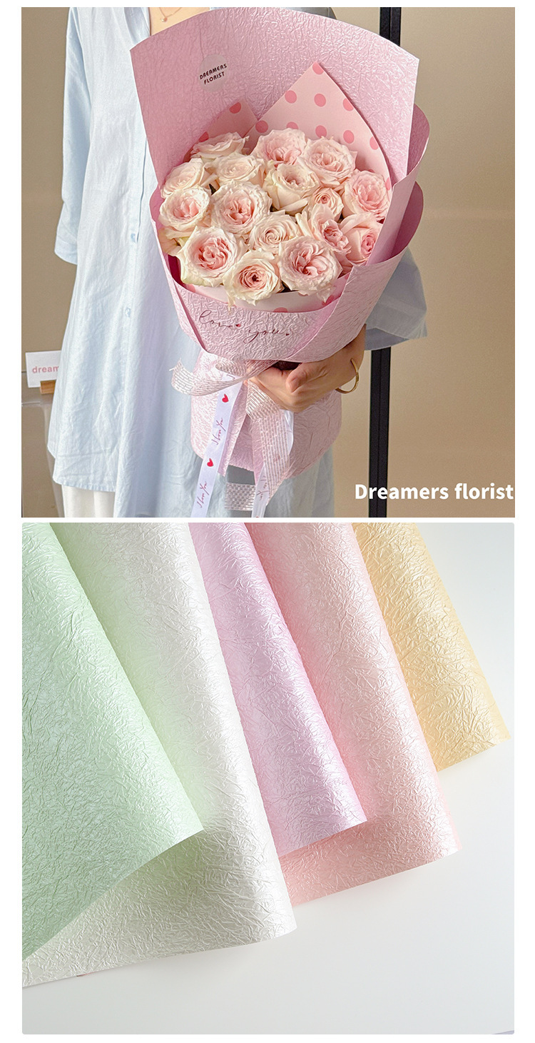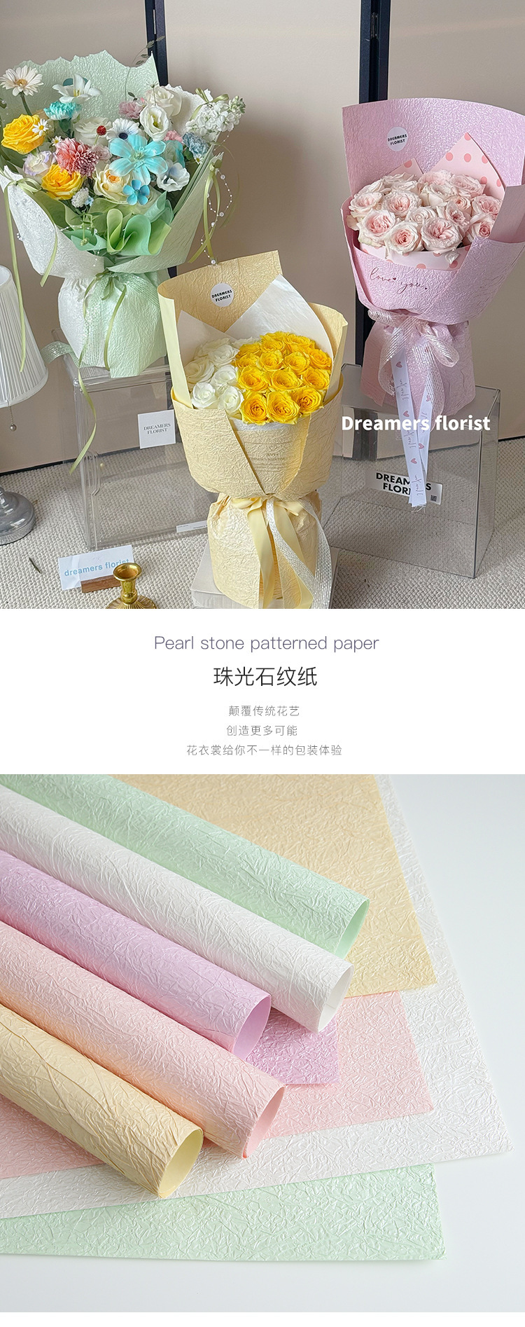 七夕新款珠光石纹纸肌理褶皱纸高级感花束包花纸花艺资材鲜花材料