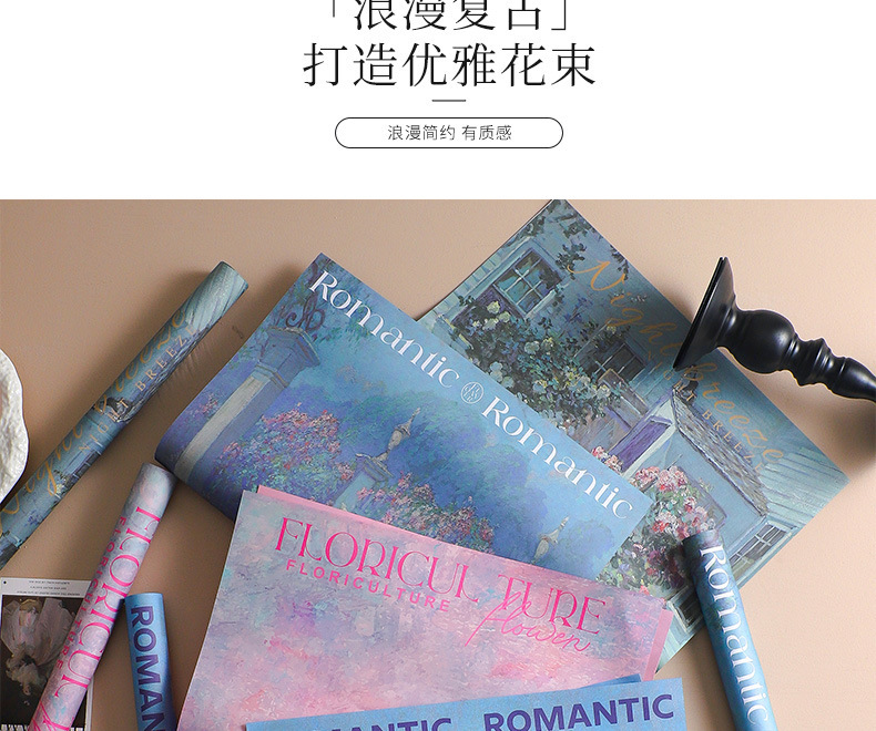 情人节小花束diy材料鲜花资材包花纸批发梦境园林油画鲜花包装纸