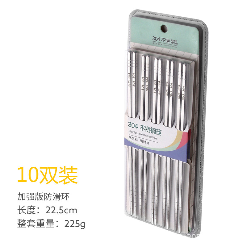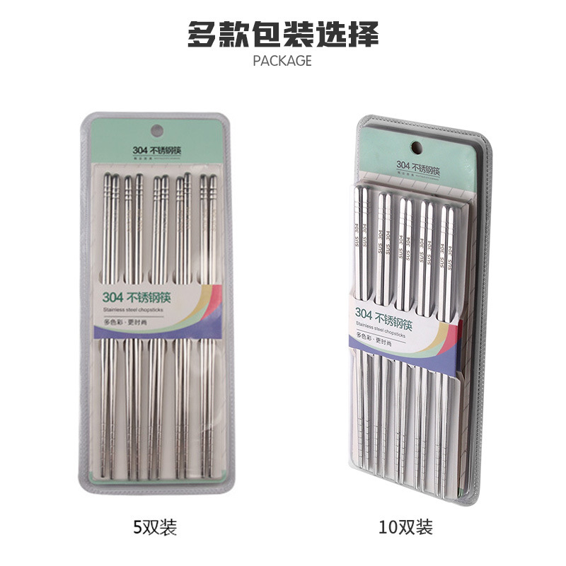 304不锈钢筷子五双装十双装多款包装筷子家用火锅公筷金属装批发