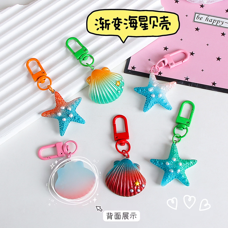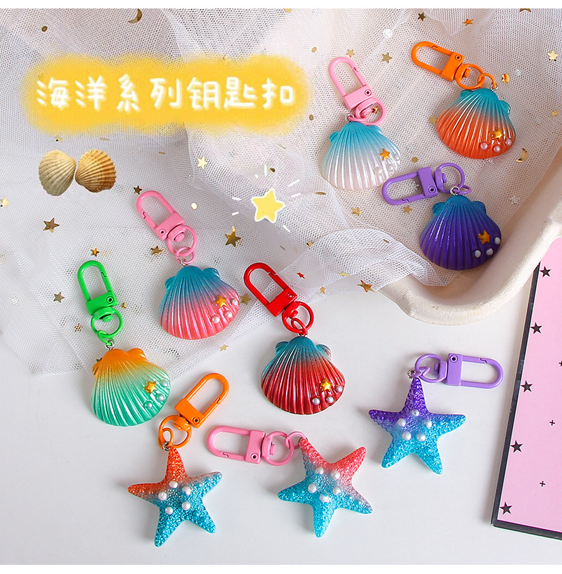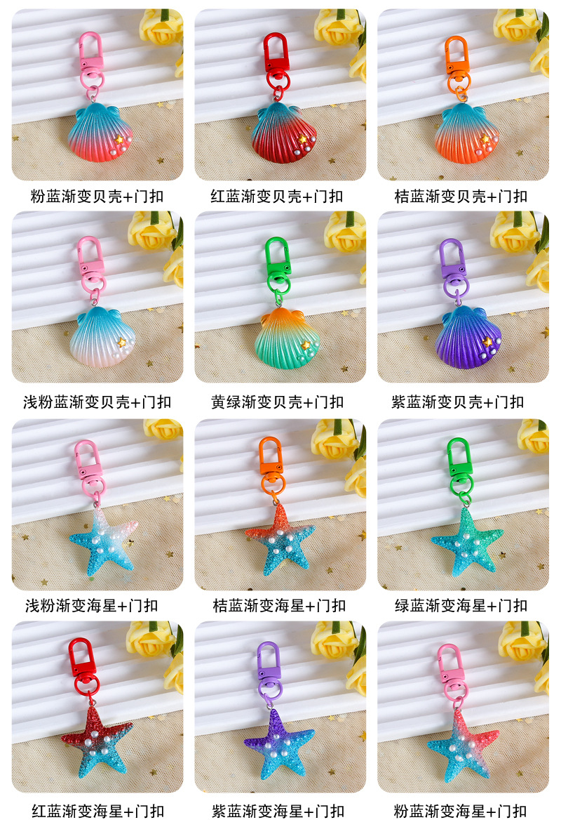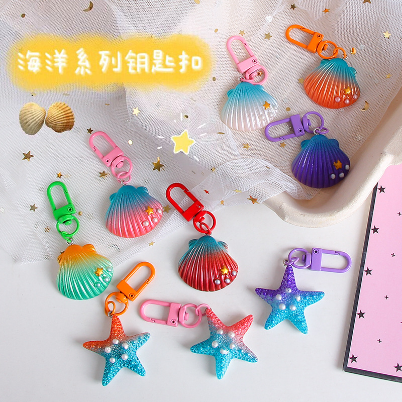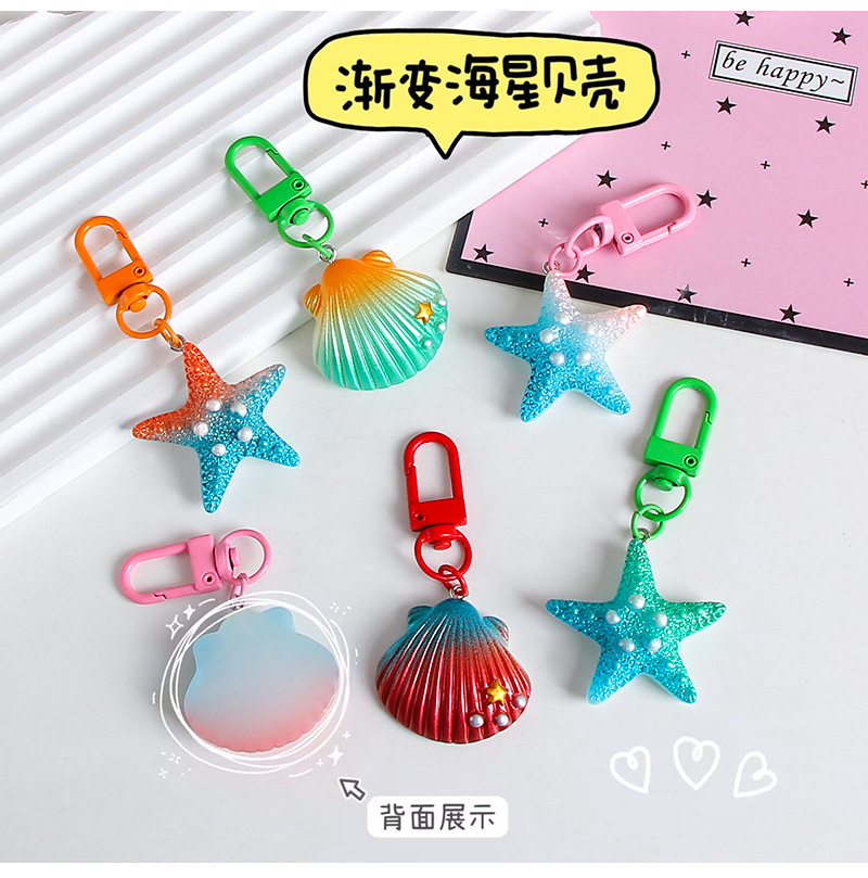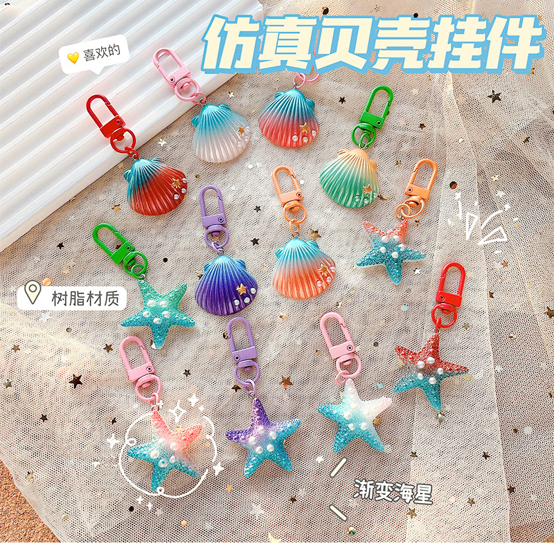 仿真渐变色贝壳钥匙扣挂件ins海星Airpods挂饰少女心包包装饰礼品