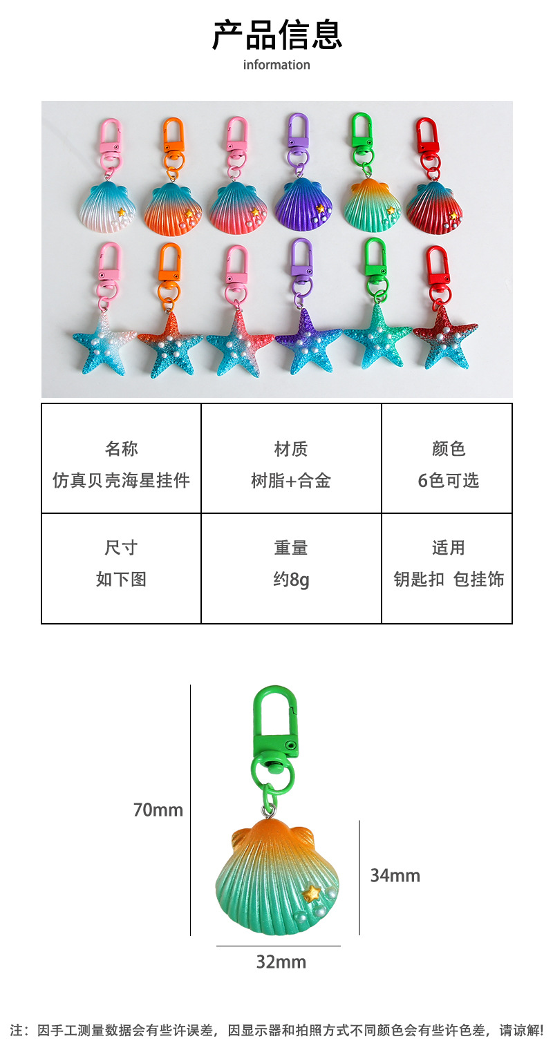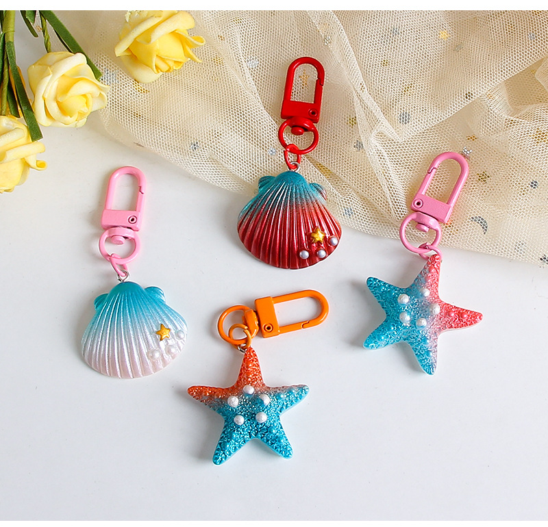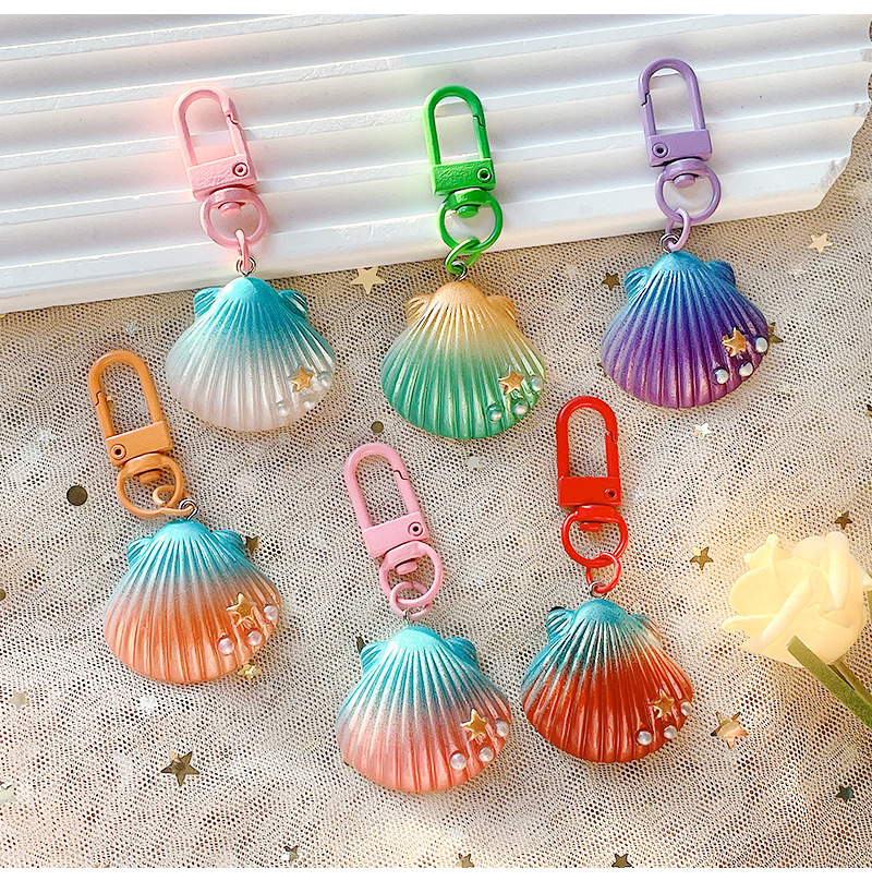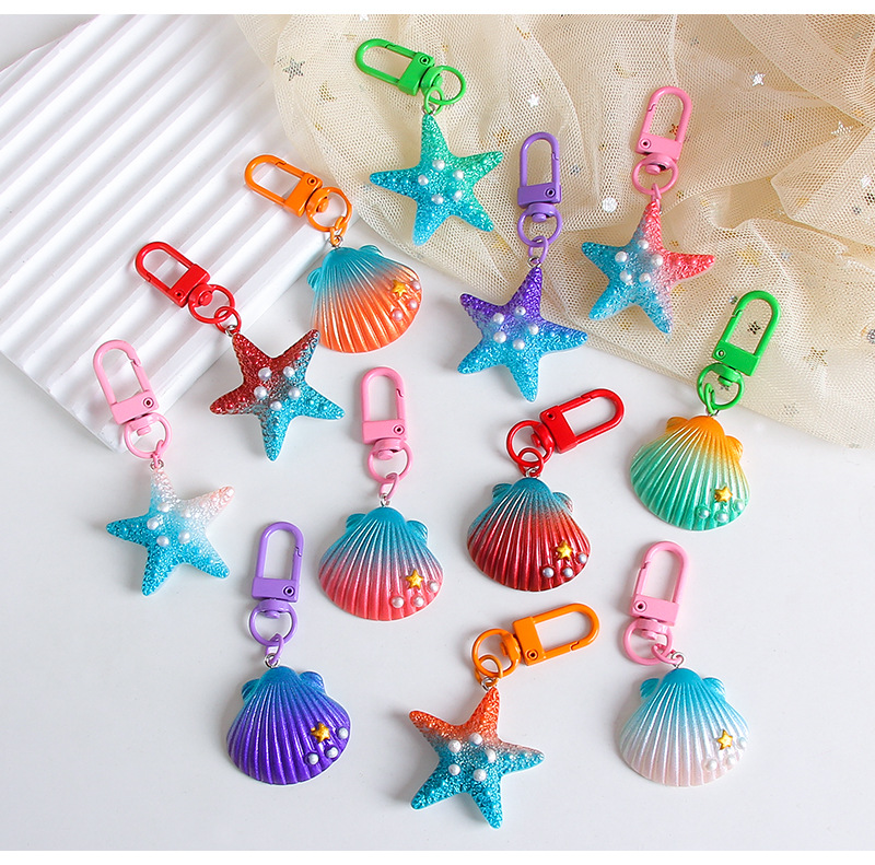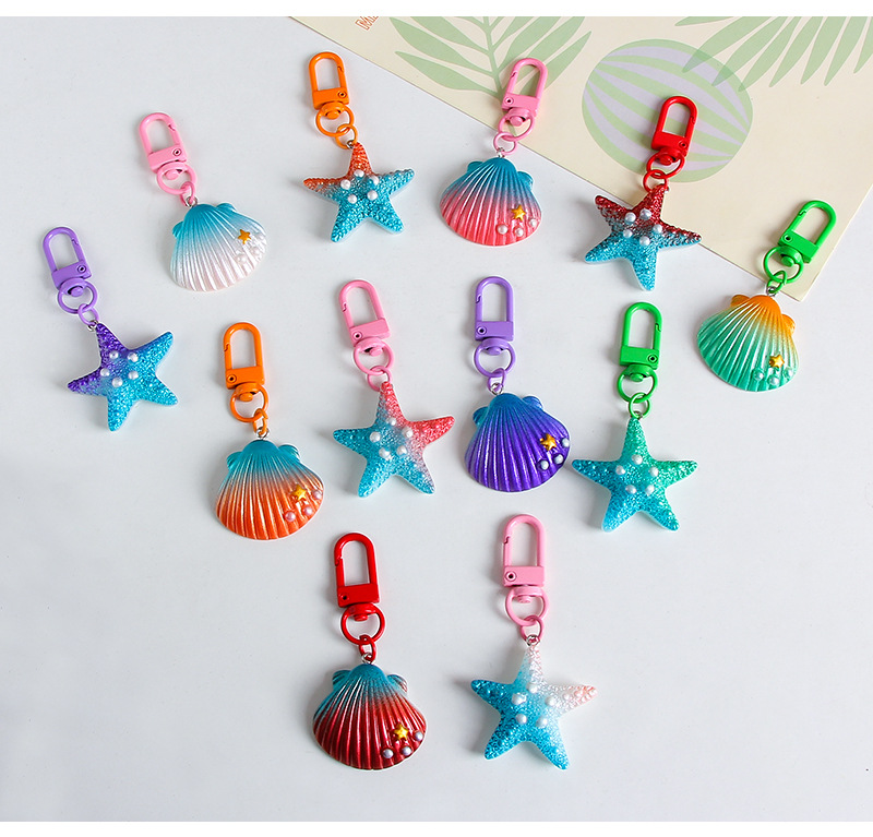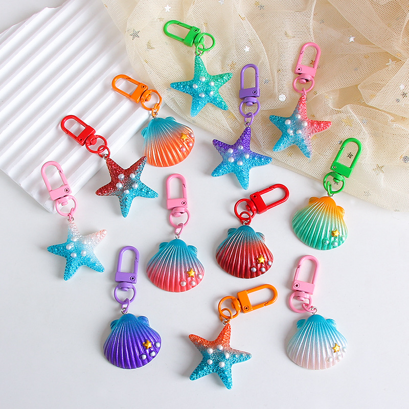 仿真渐变色贝壳钥匙扣挂件ins海星Airpods挂饰少女心包包装饰礼品