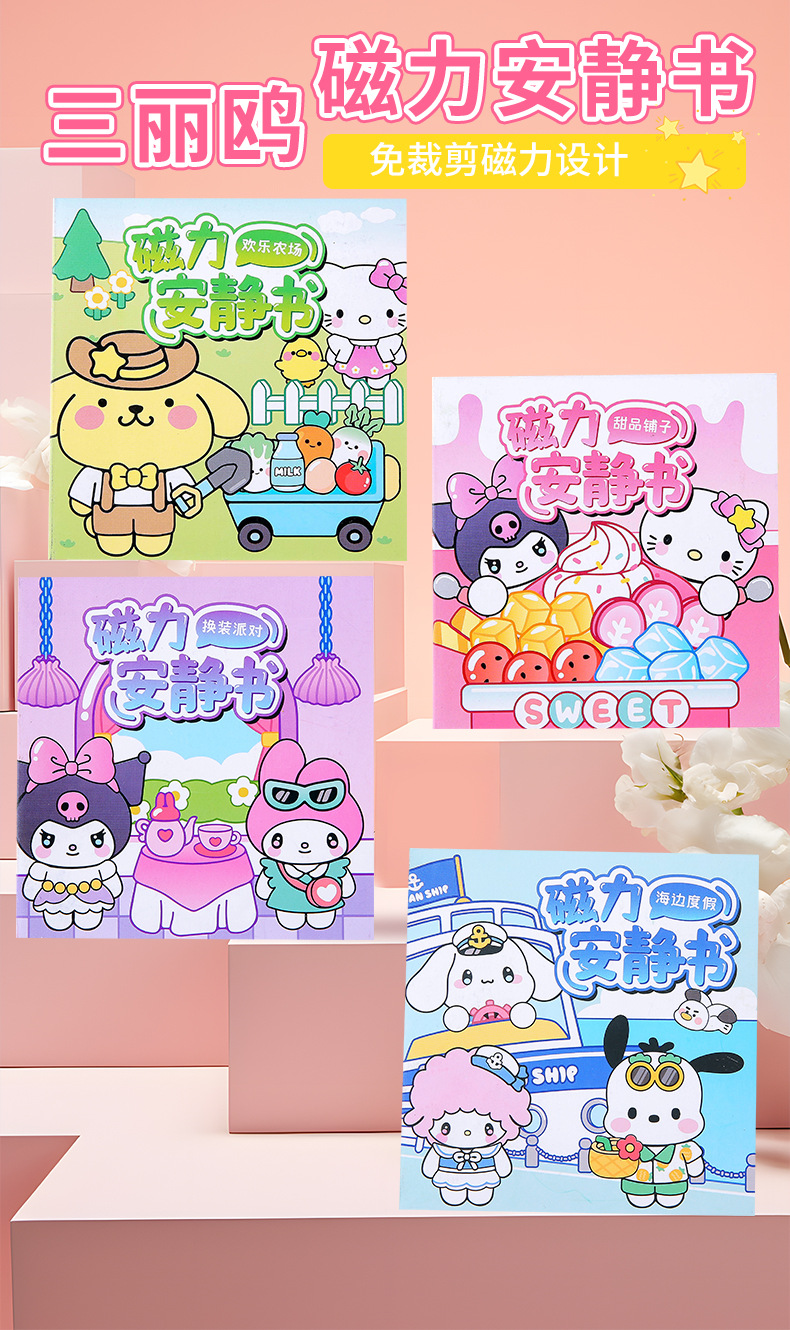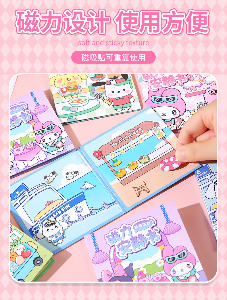 三丽鸥磁性安静书 立体贴纸女孩玩具防水免裁剪 DIY卡通换装礼品