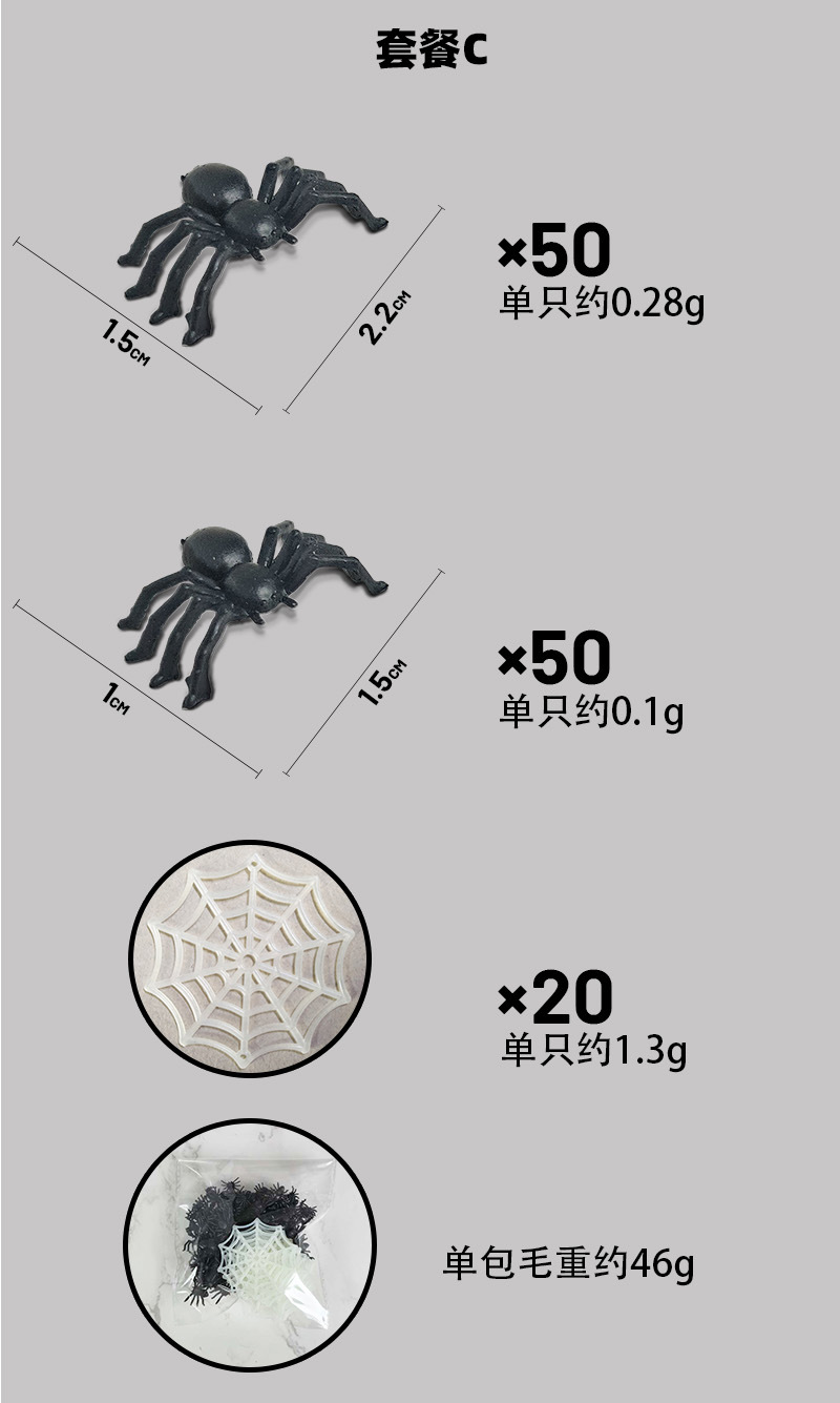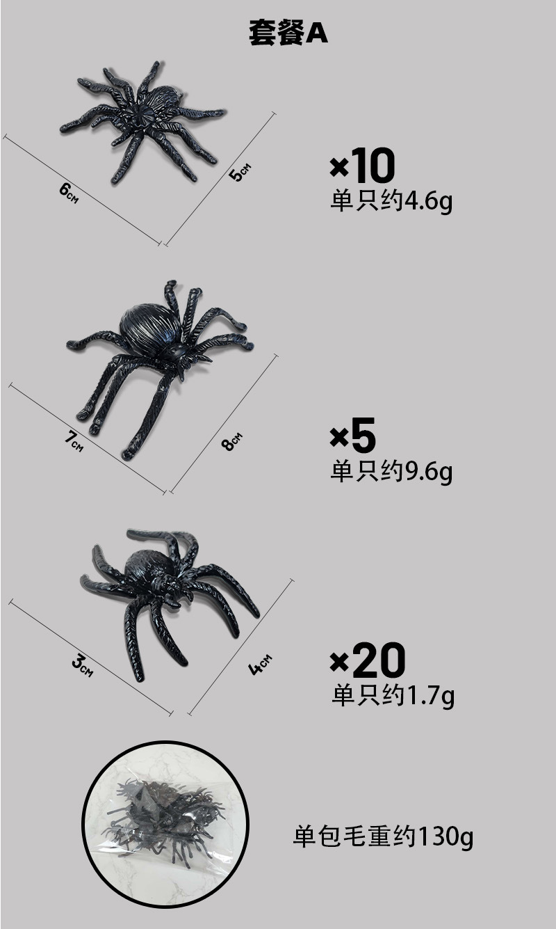 跨境热卖多款万圣节蜘蛛套餐仿真塑料蜘蛛玩具多款可选可diy搭配