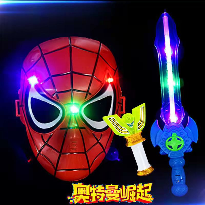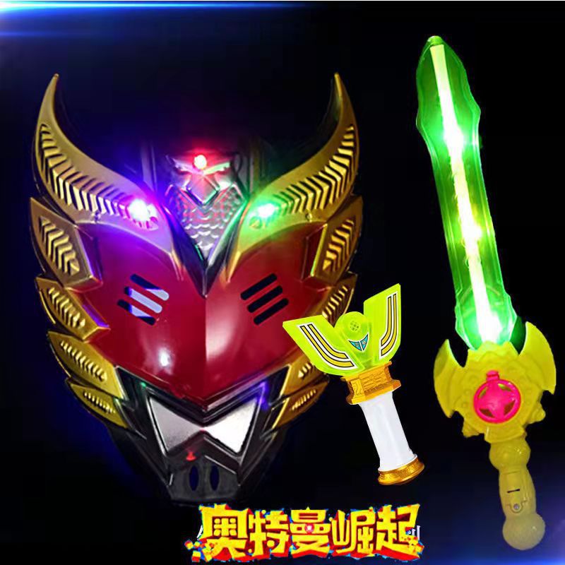 万圣节男女孩发光卡通面具套装变身发光棒宝剑迪迦赛罗儿童玩具