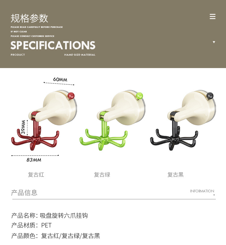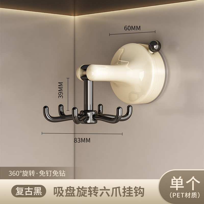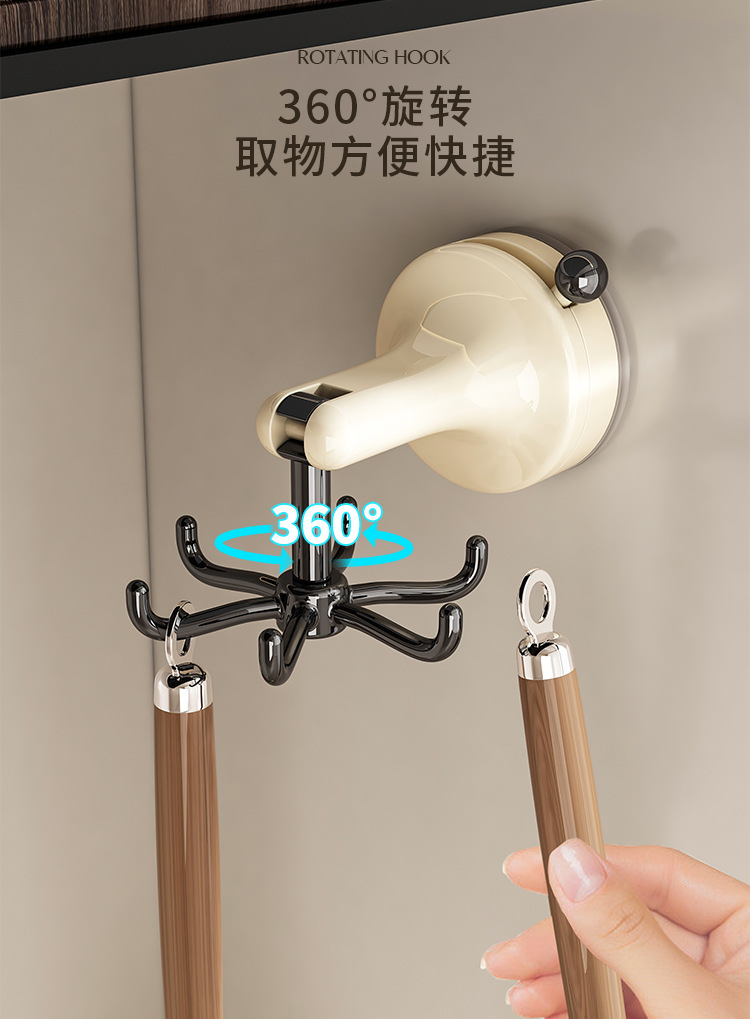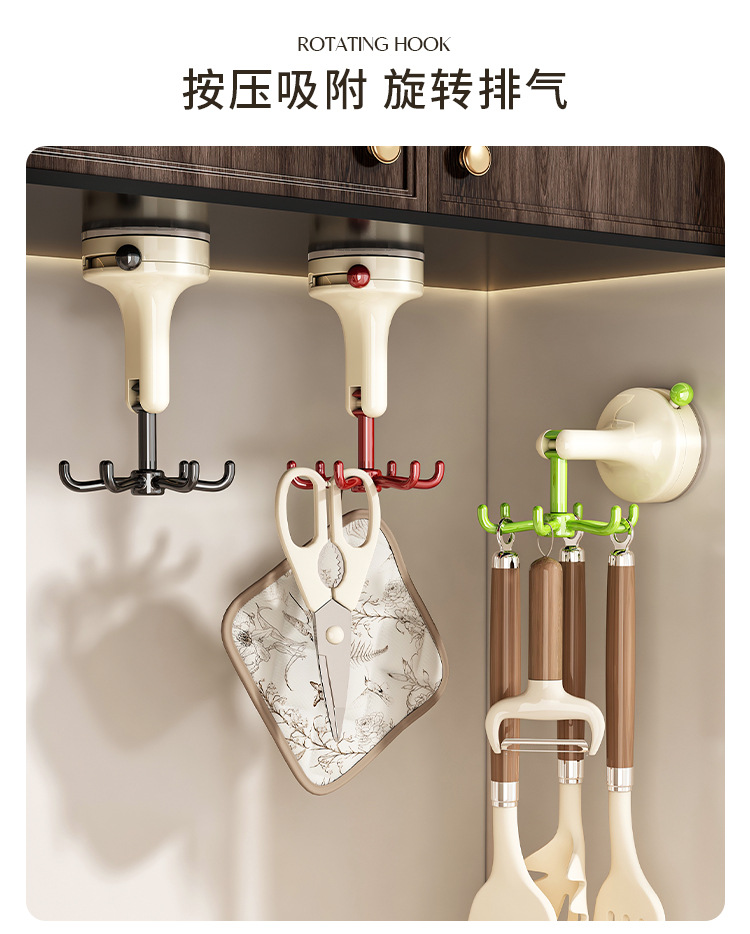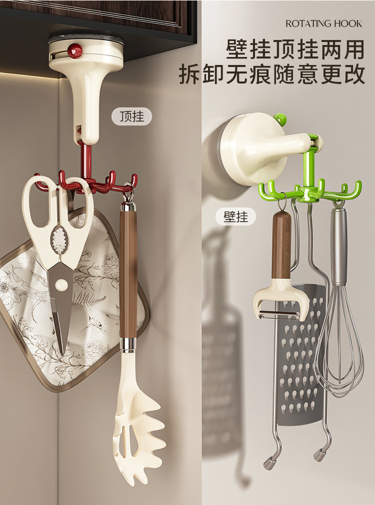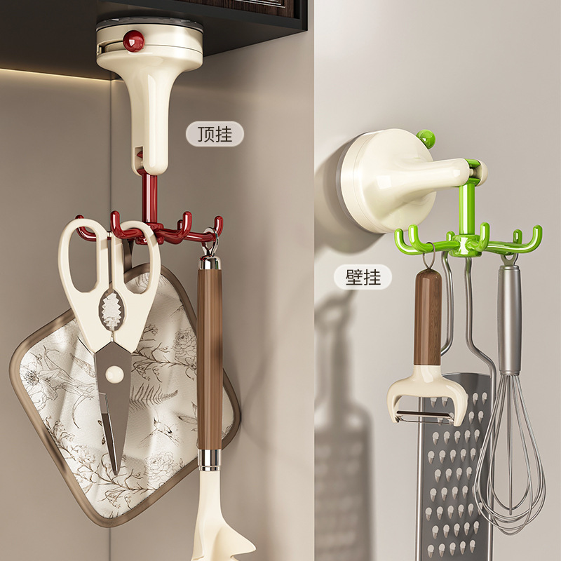 厨房六爪吸盘旋转挂钩免打孔两用厨具挂架壁挂式勺子铲子收纳架