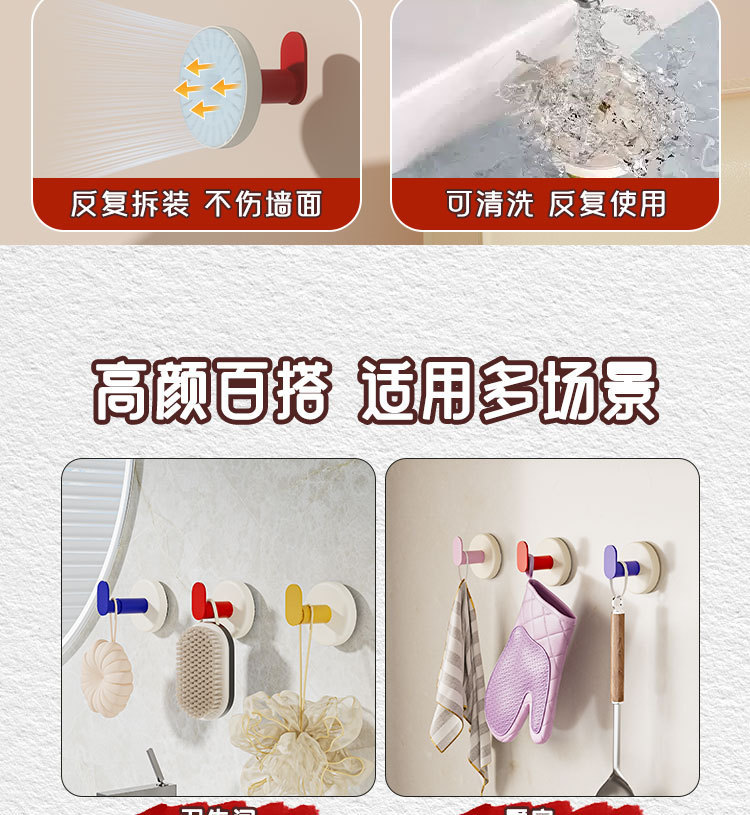 多巴胺色吸盘挂钩粘钩强力承重无痕挂钩免打孔创意可爱学生宿舍用