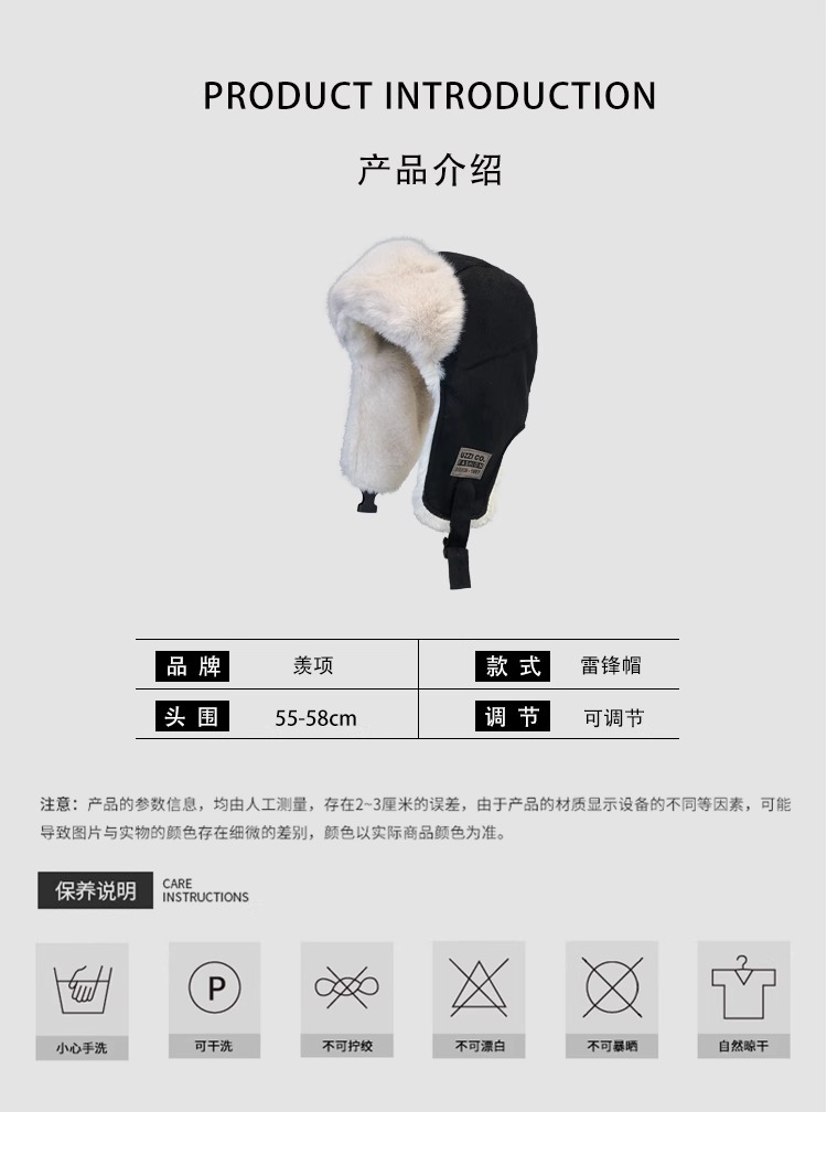 帽子女冬季加绒加厚保暖电动车户外骑车护耳防风防寒东北雷锋帽男