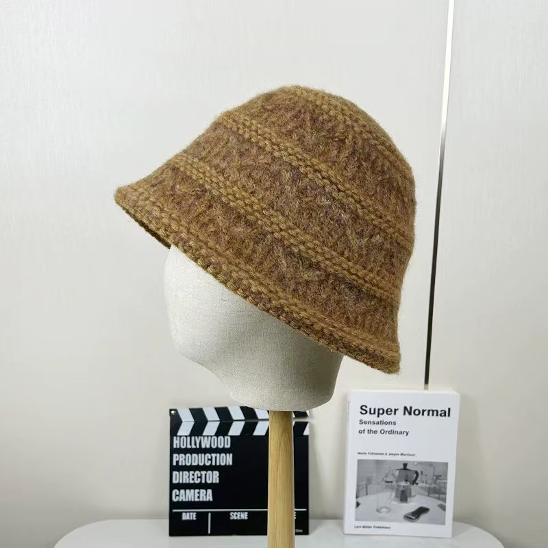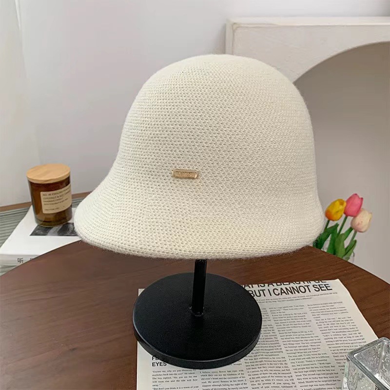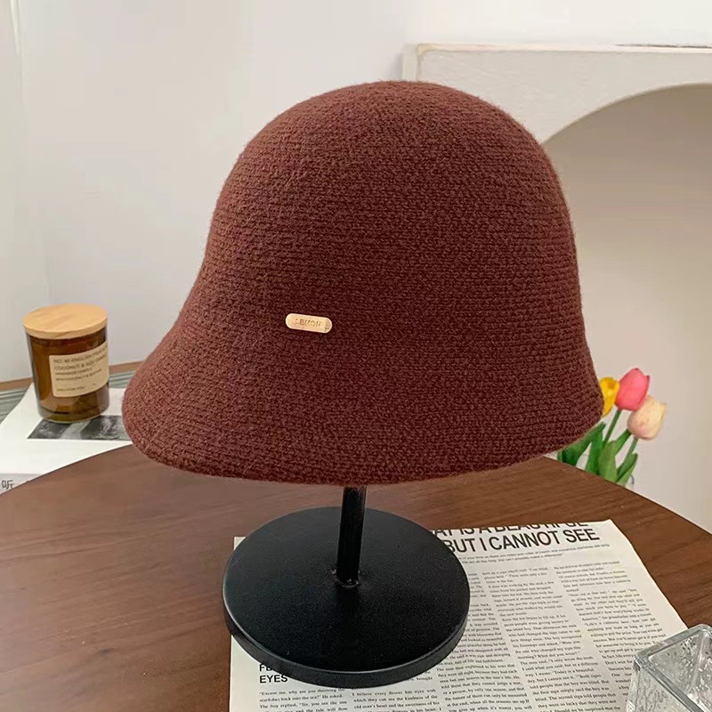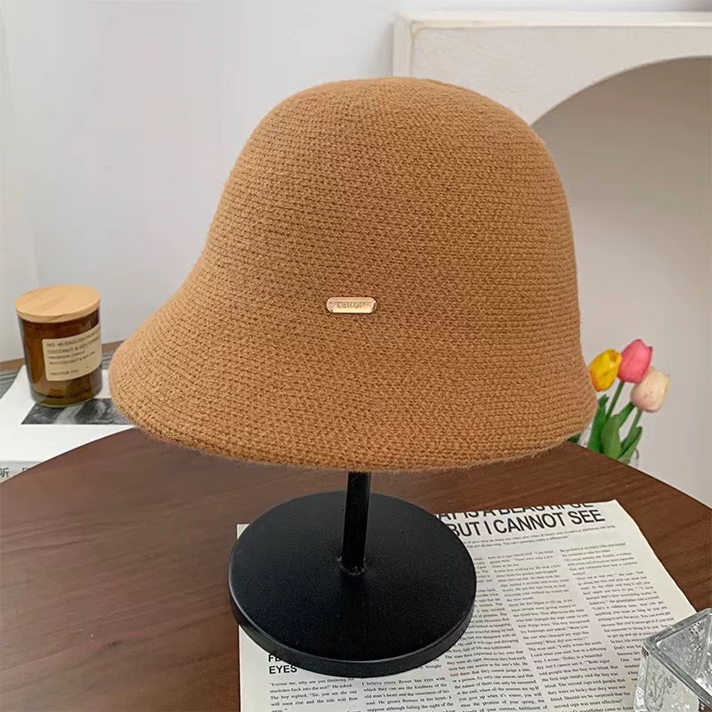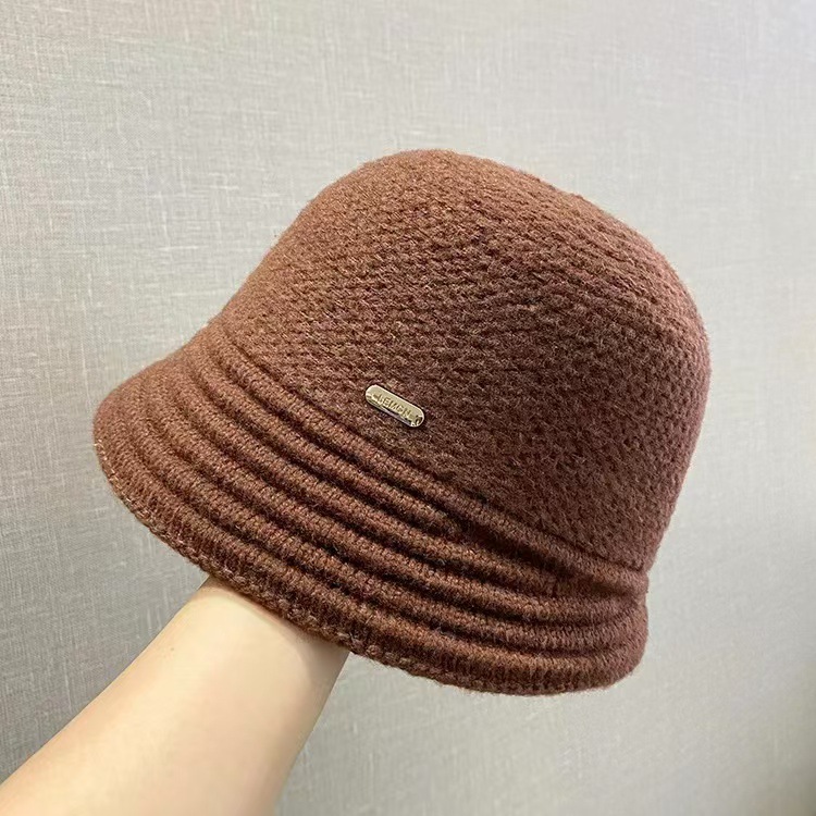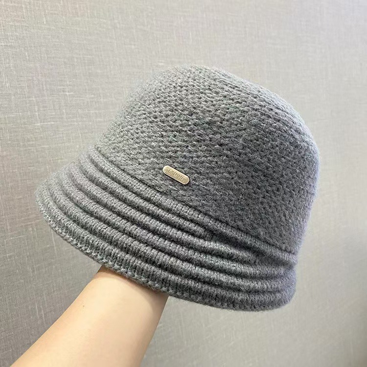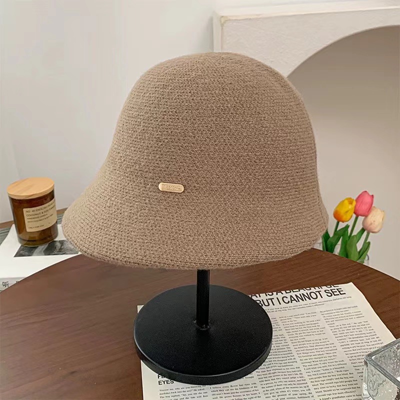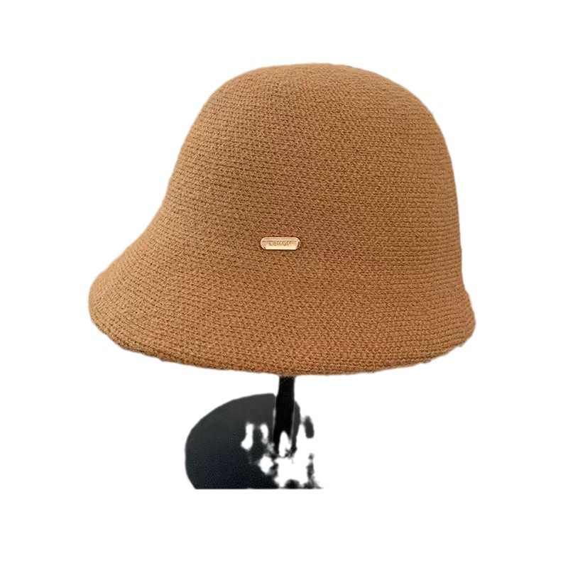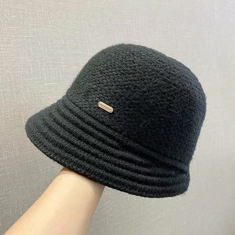 新款针织渔夫帽女春秋日系百搭大头围黑色水桶帽韩版显脸小毛线帽