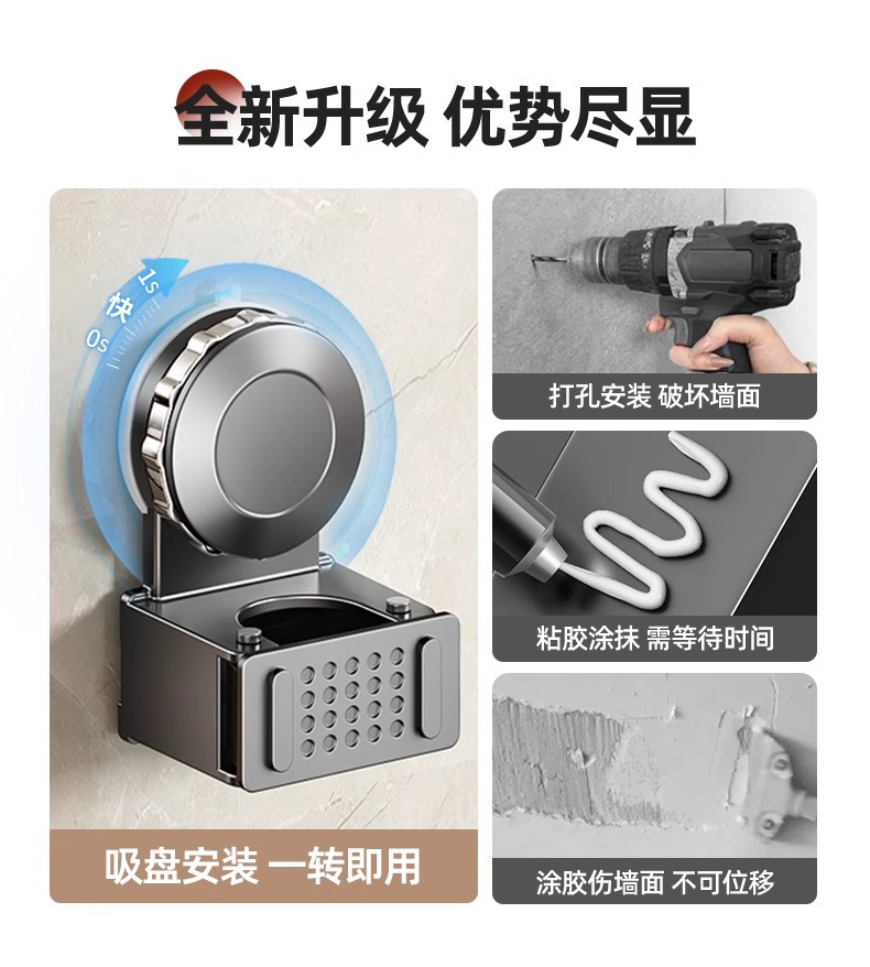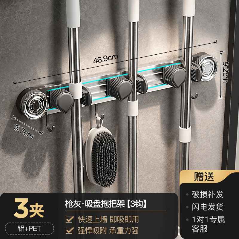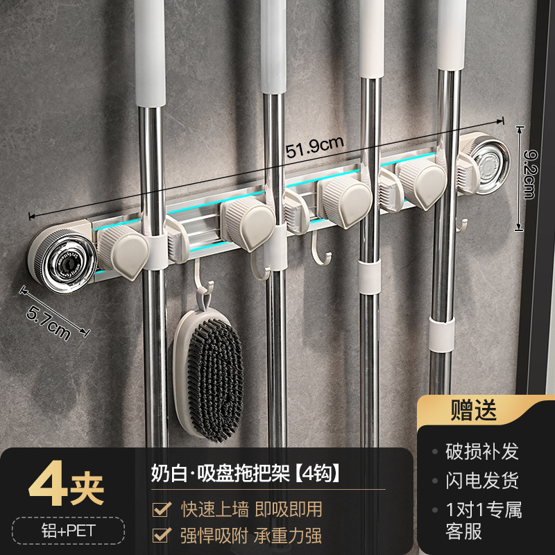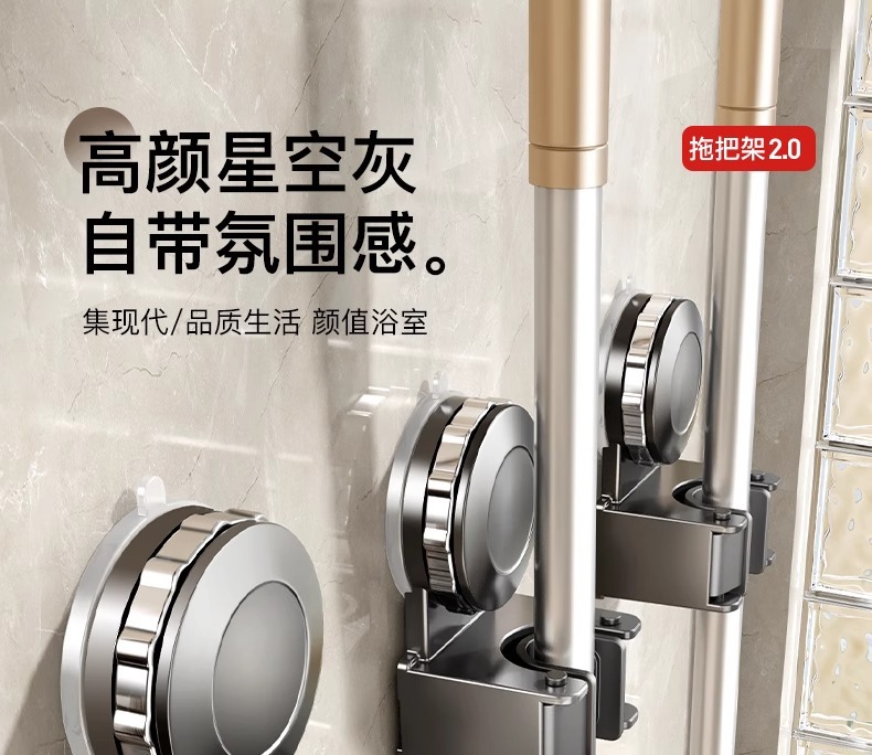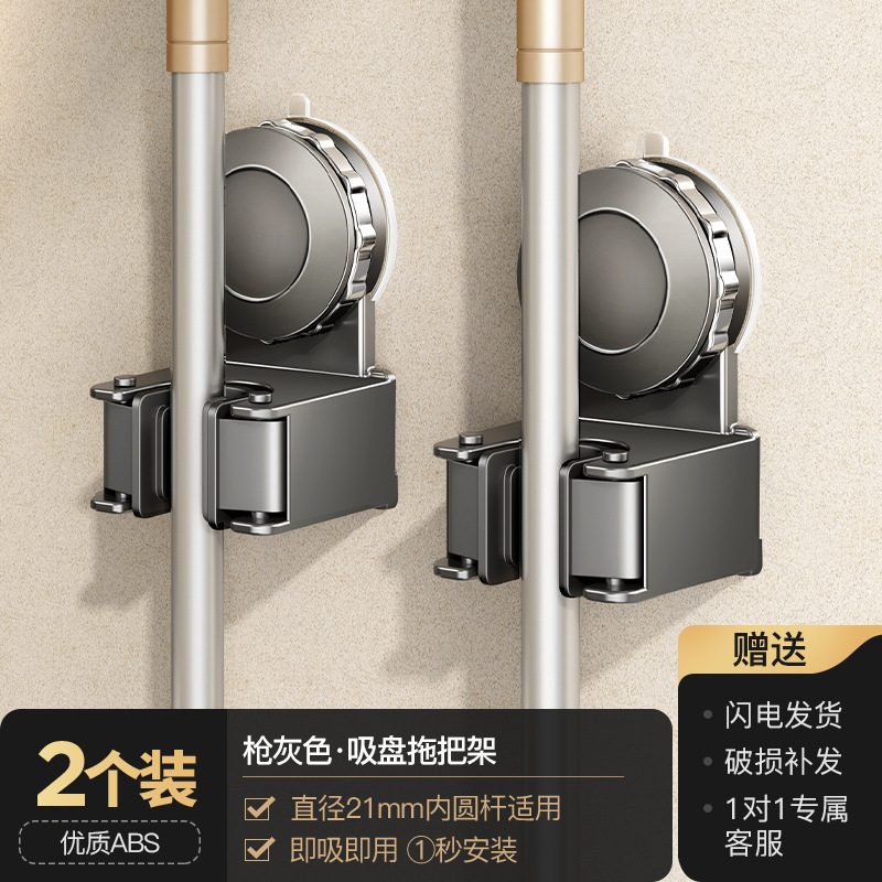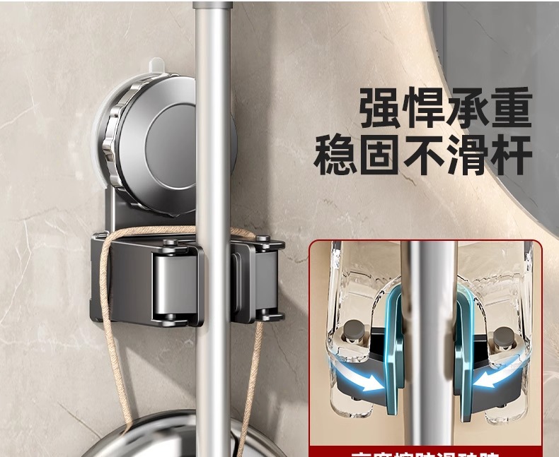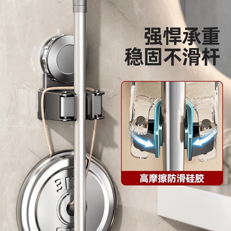 跨境爆款卫生间浴室吸盘拖把挂钩免打孔壁挂夹扫把挂钩门后收纳架
