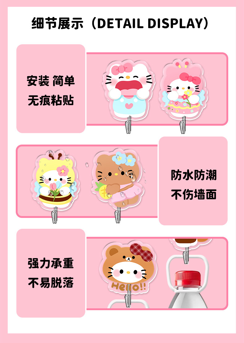 卡通免打孔新款kt挂钩卫生间浴室强力粘胶墙壁厨房无痕贴墙面挂钩