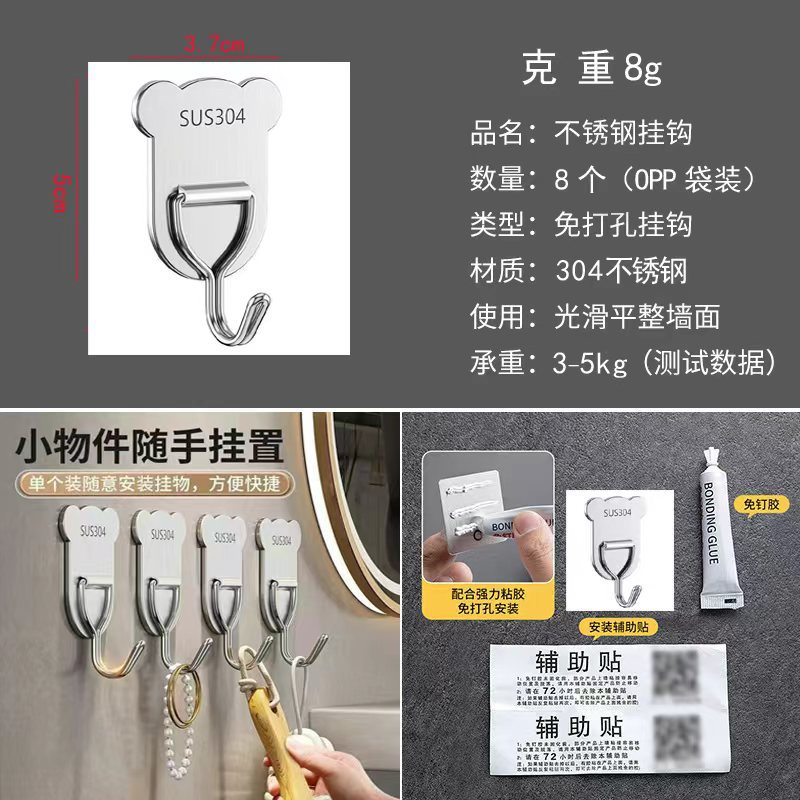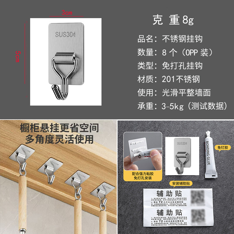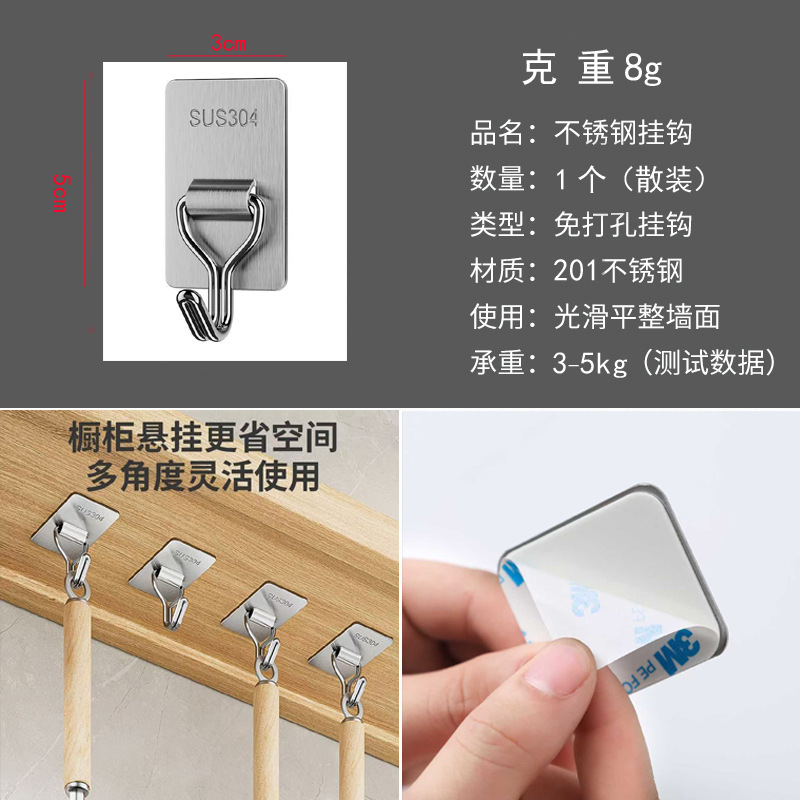 不锈钢挂钩粘胶强力承重免打孔卫生间厨房门后壁挂式毛巾粘钩