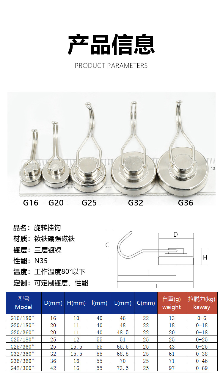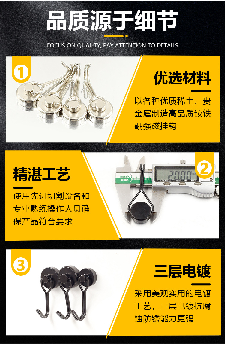 旋转磁铁挂钩吸铁石超强吸力免钉孔冰箱磁力挂钩强力磁性磁吸挂钩