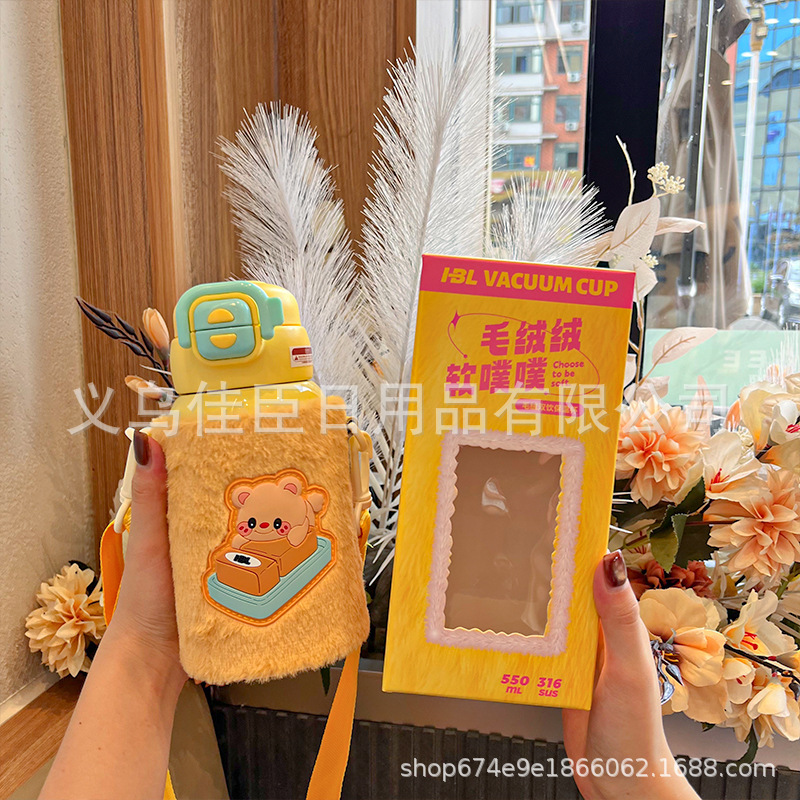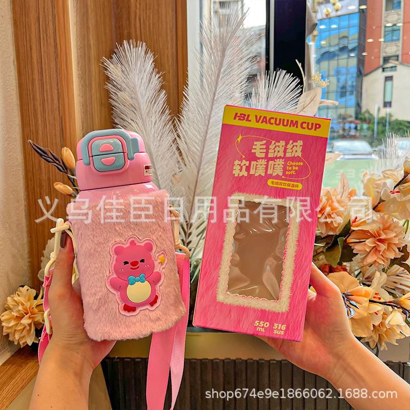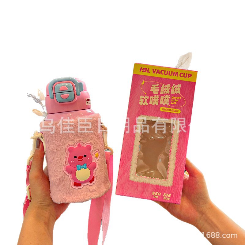 保温杯高颜值带毛绒杯套儿童学生水杯高颜值便携316随行杯保温水