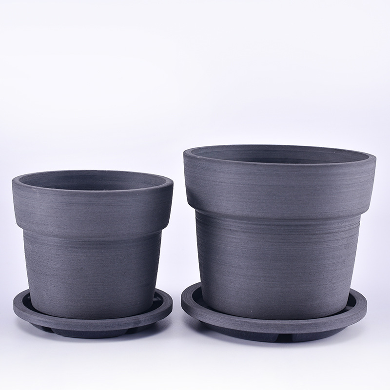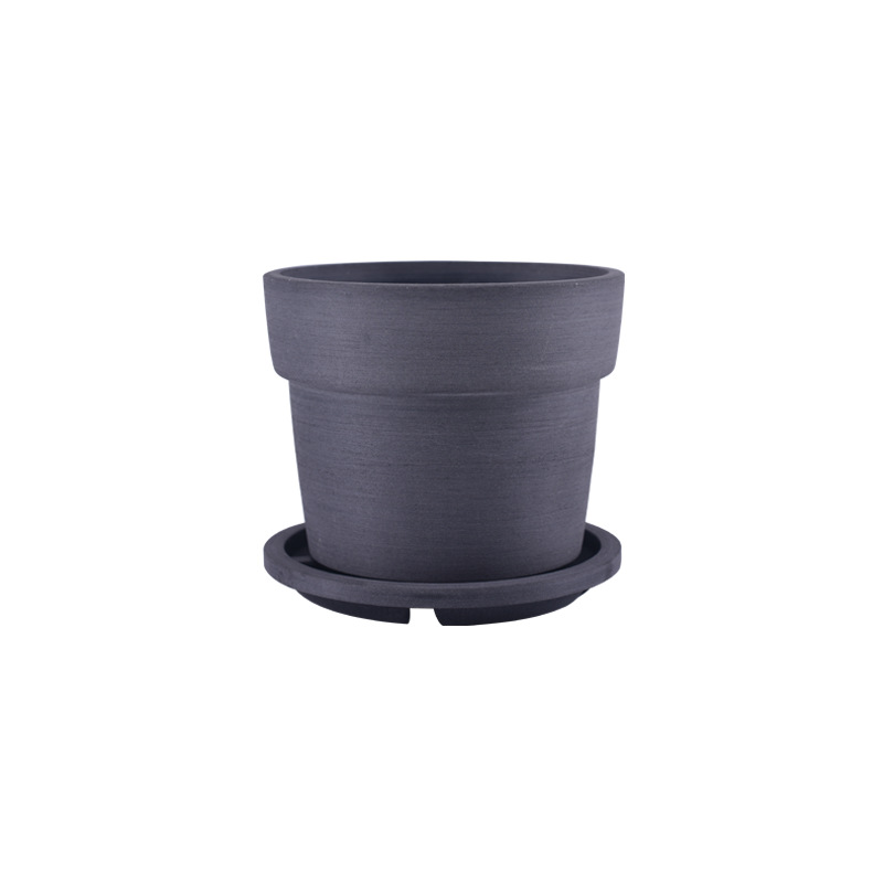 仿石圆盆树脂花盆 阳台多肉塑料花盆 简约办公室家用黑灰陶色盆栽
