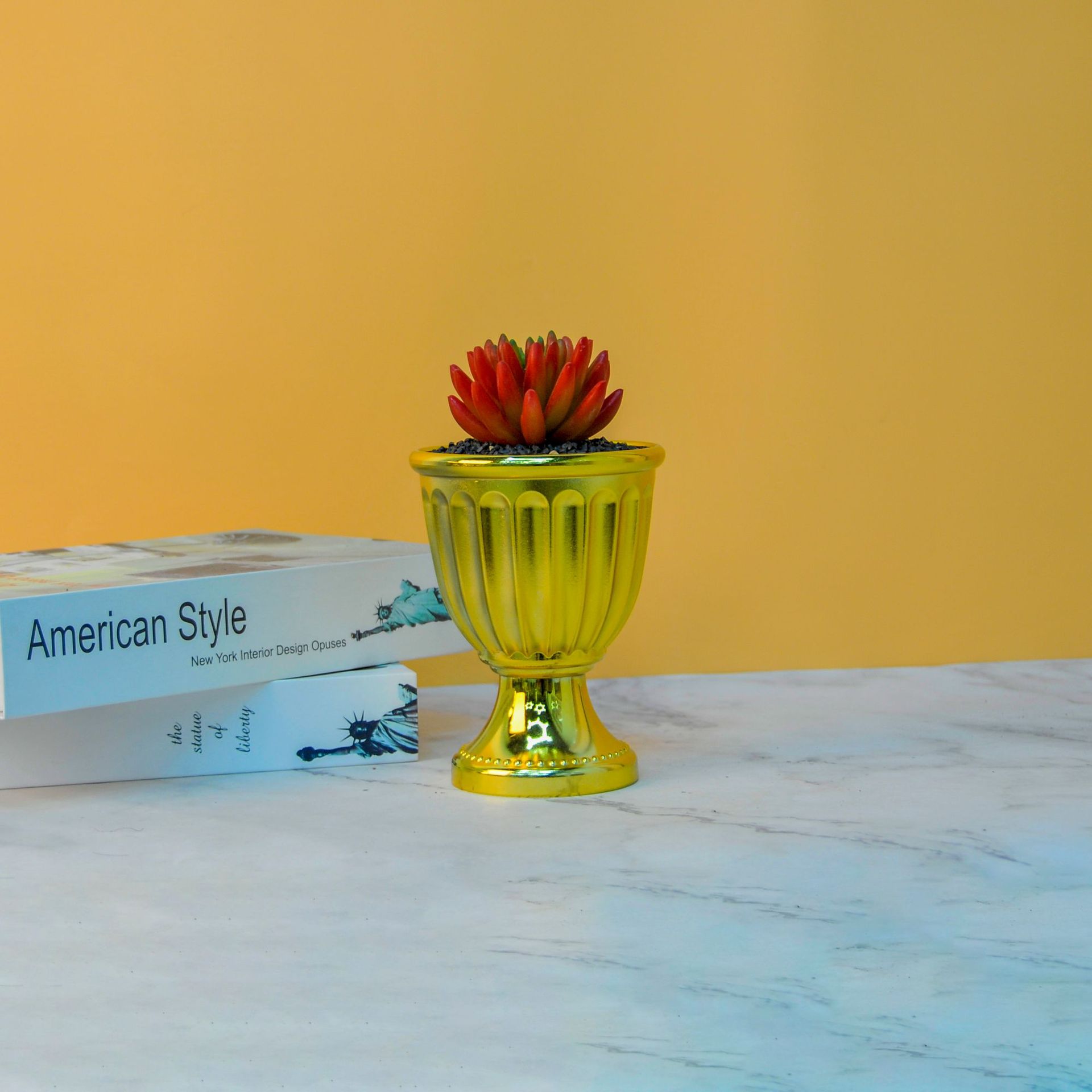 热销新款电镀金属色现代简约塑料圣杯高脚不锈钢金银彩色多肉花盆
