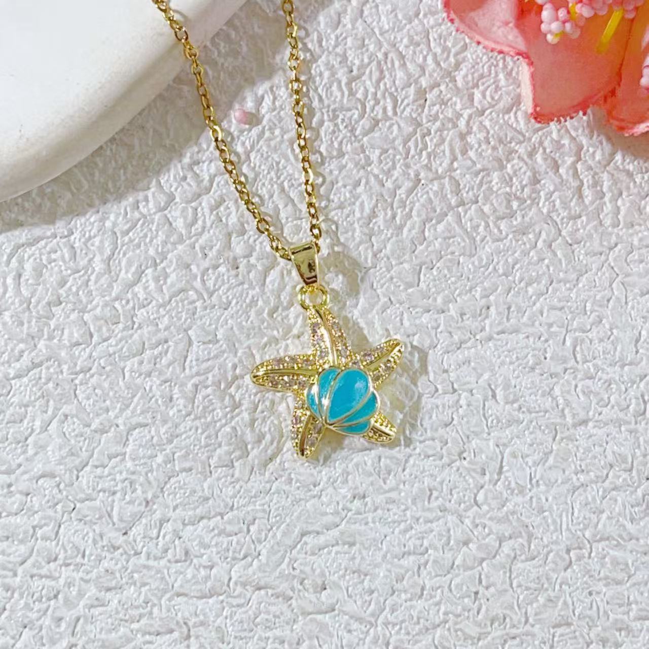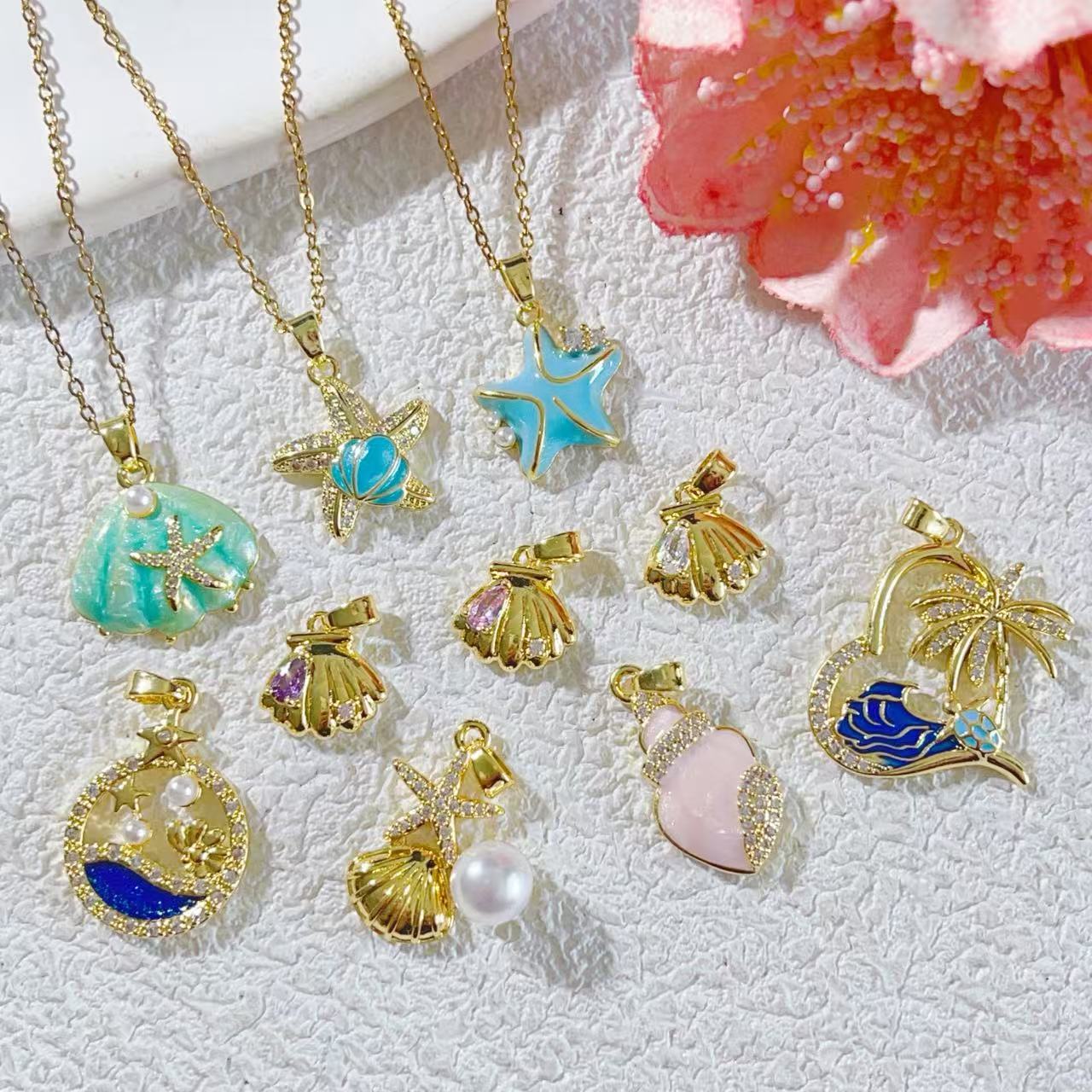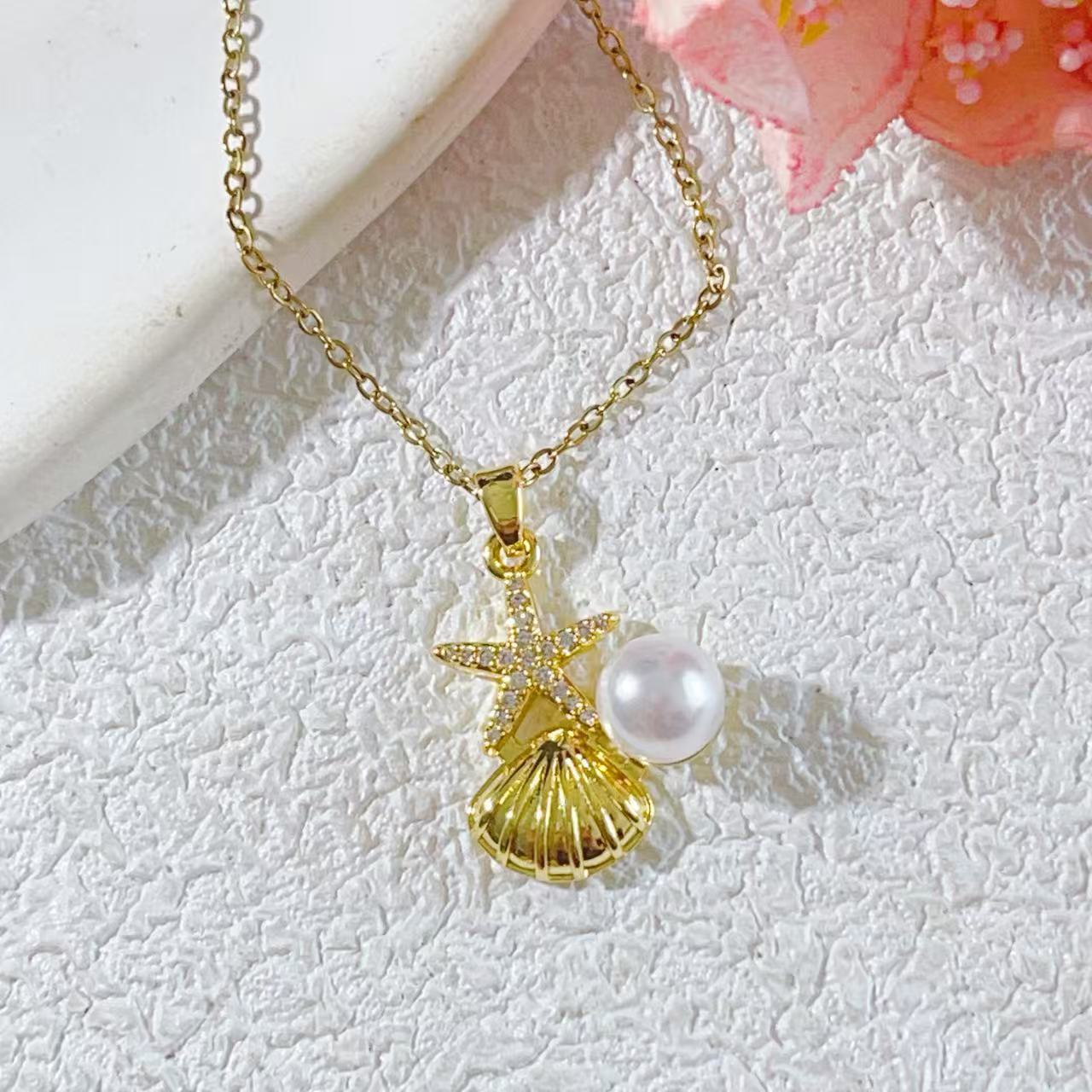 夏日爆款海洋风DIY项链配件海星贝壳海螺吊坠锁骨链沙滩饰品批发