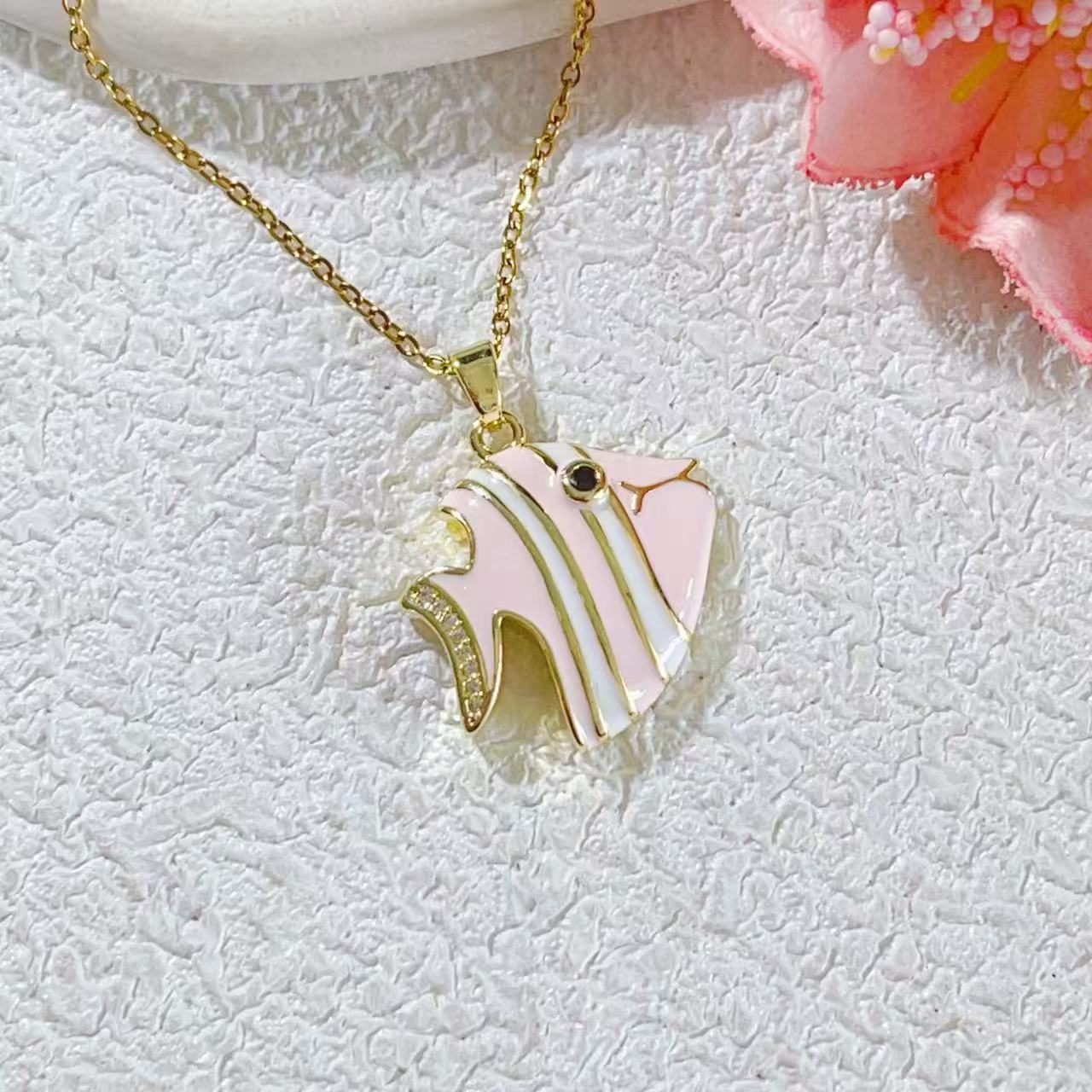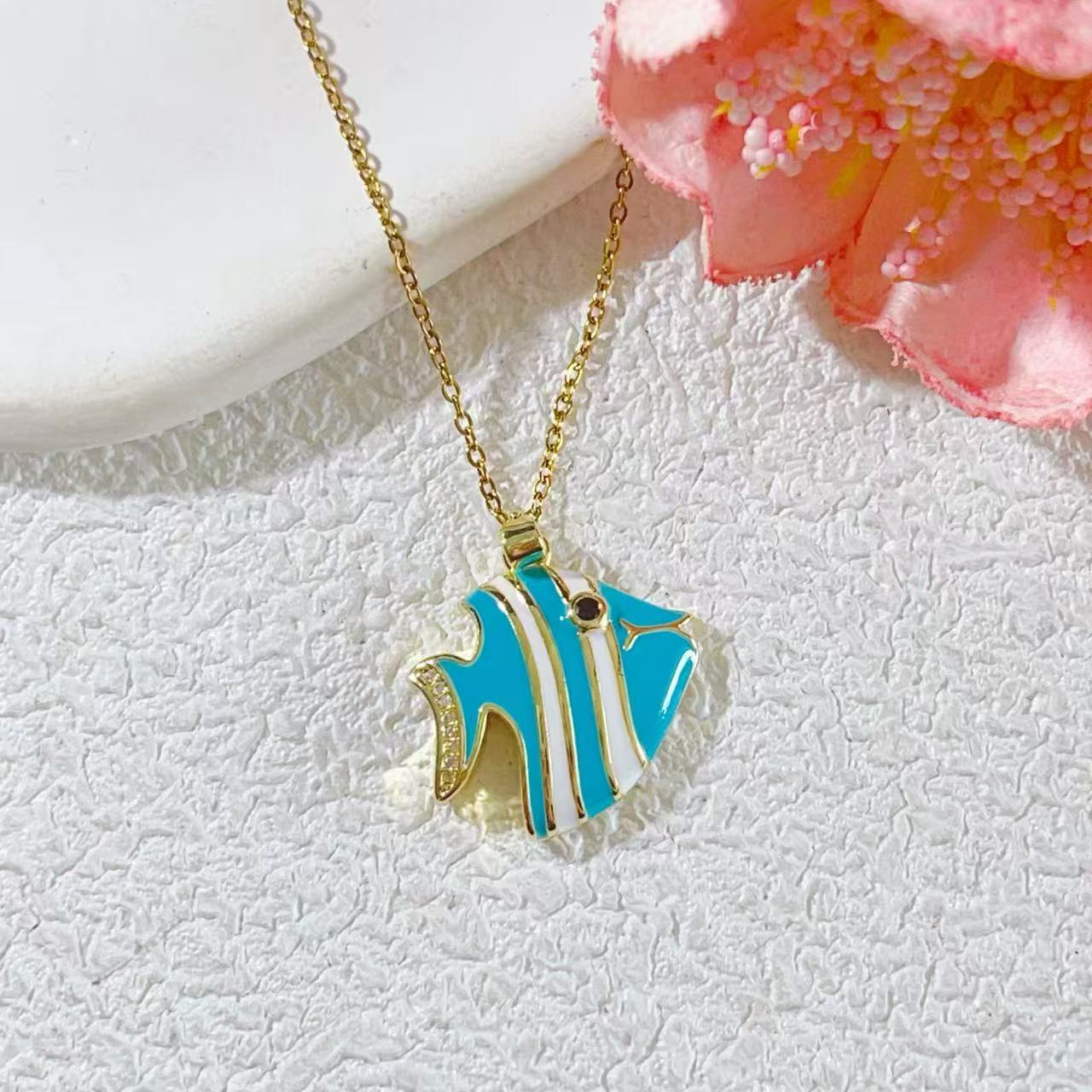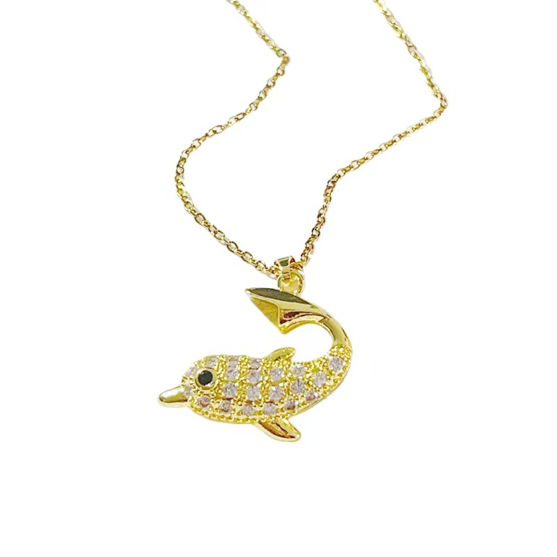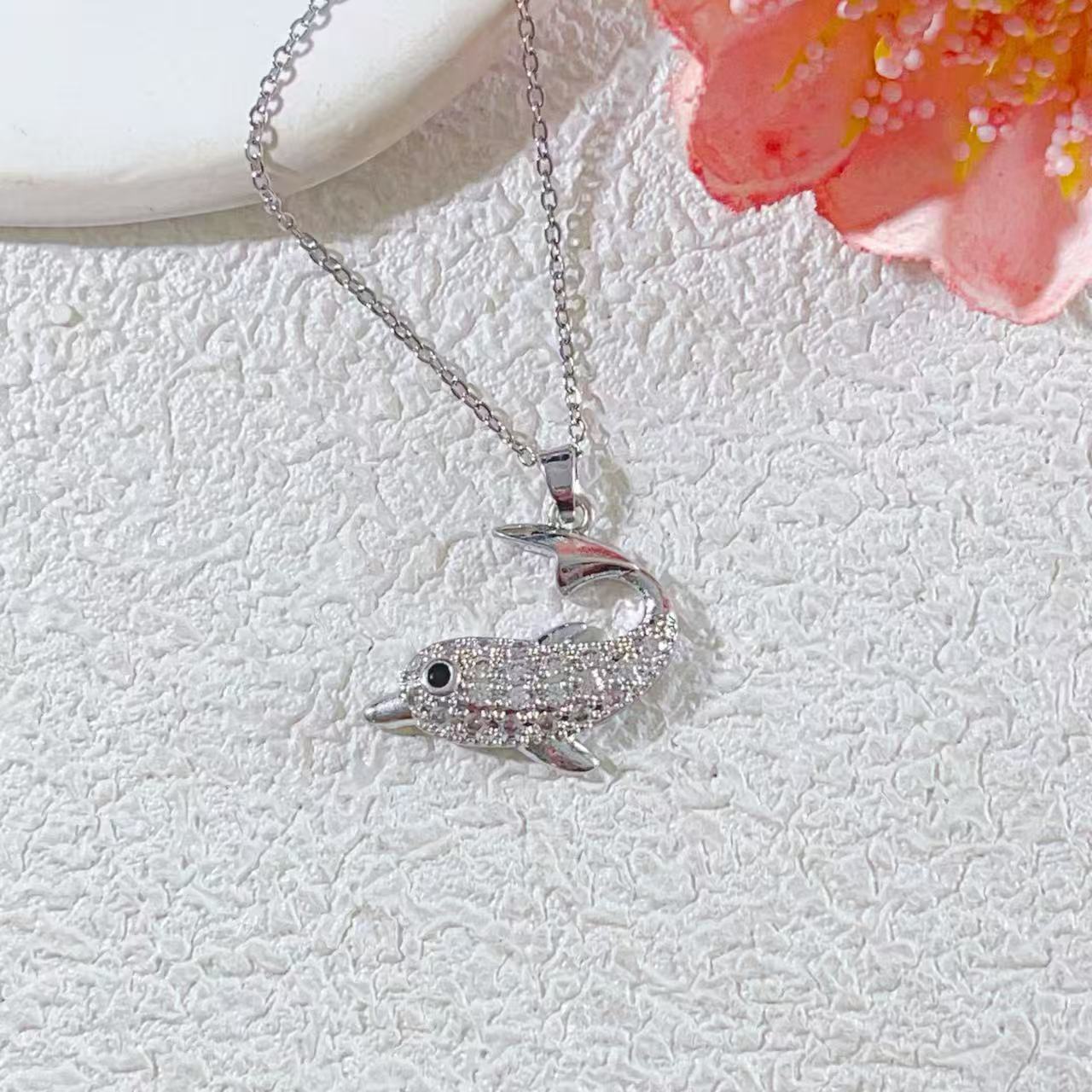 夏日海洋生物系微镶锆石鲸鱼海豚尾巴美人鱼项链吊坠DIY饰品配件