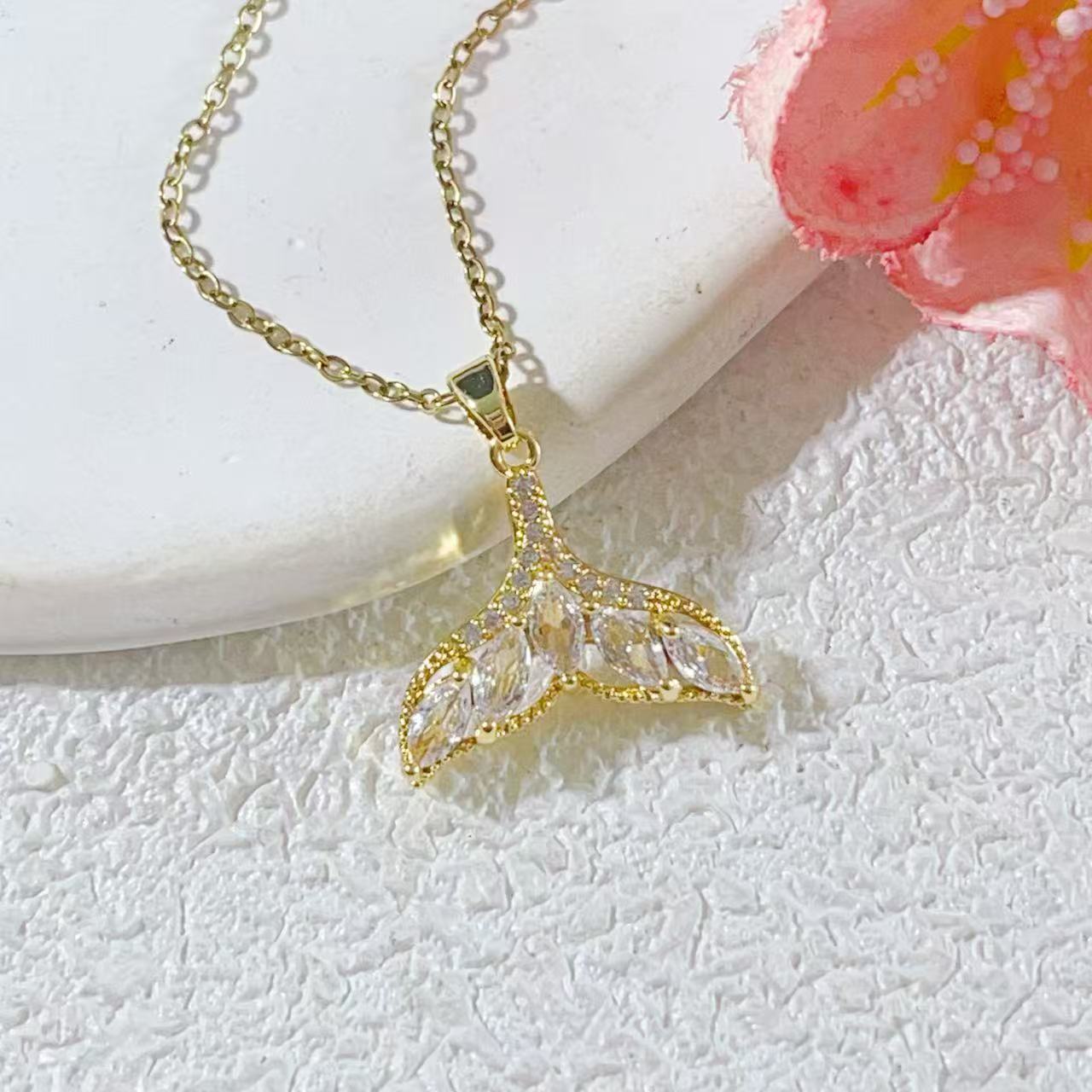 summer marine life series micro inlaid zircon whale dolphin tail mermaid necklace pendant diy ornament accessories