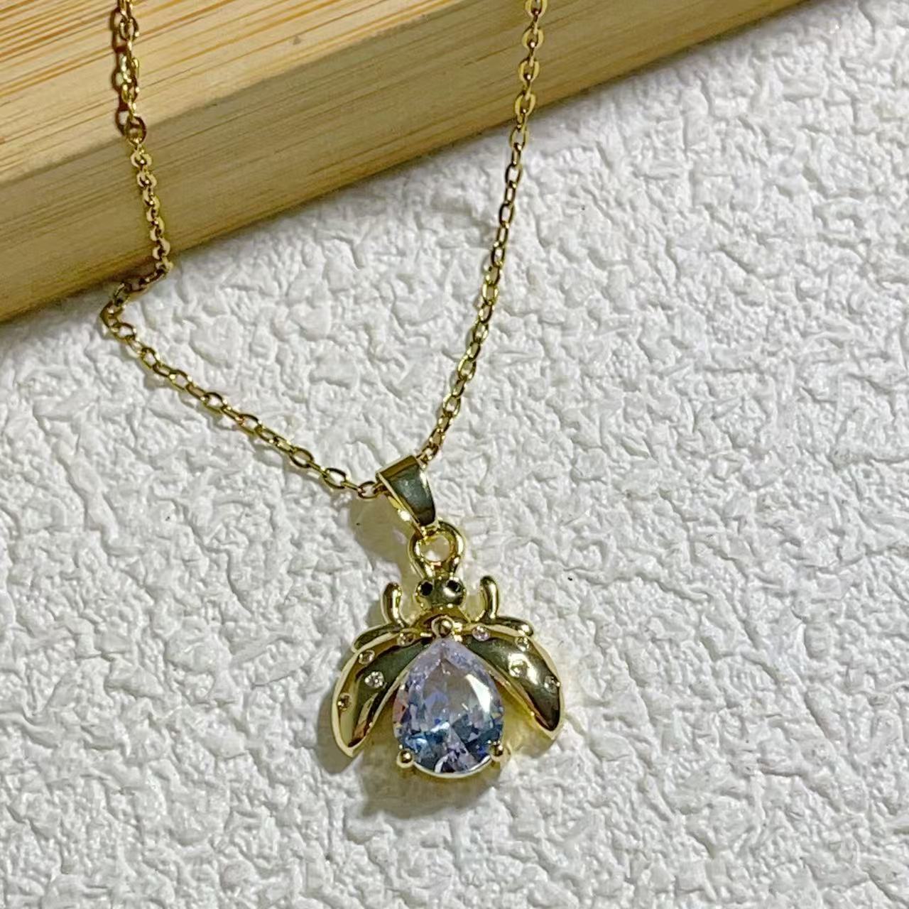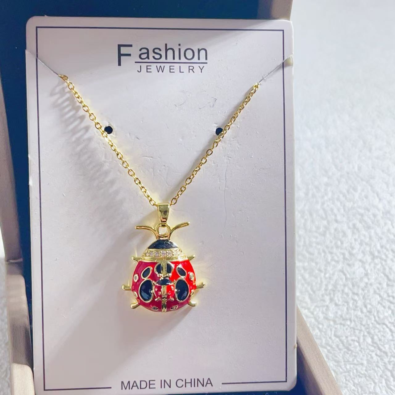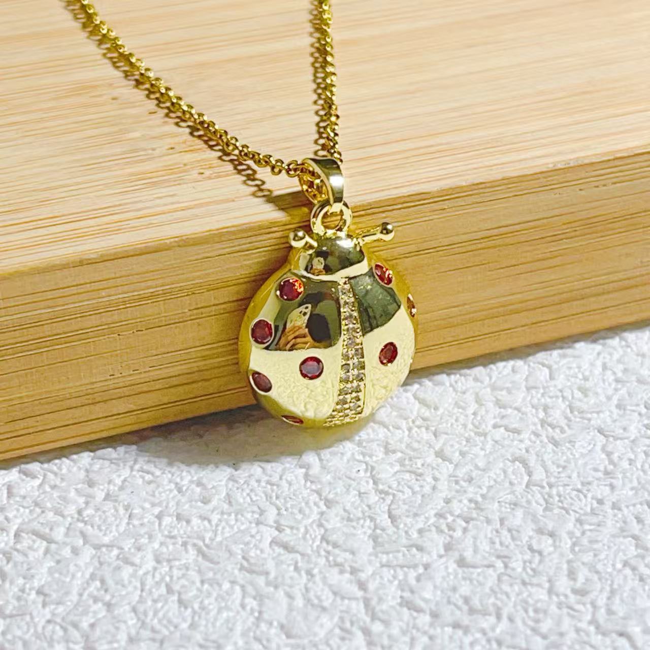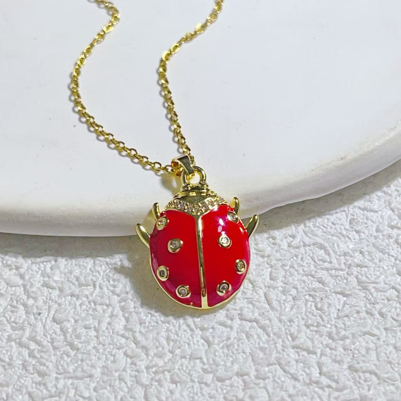 europe and america cross border drop oil ladybird pendant personality insect beetle copper plated real gold color retaining fashion necklace