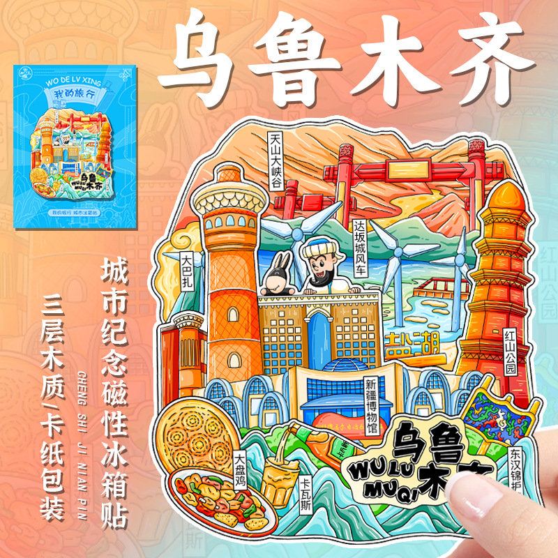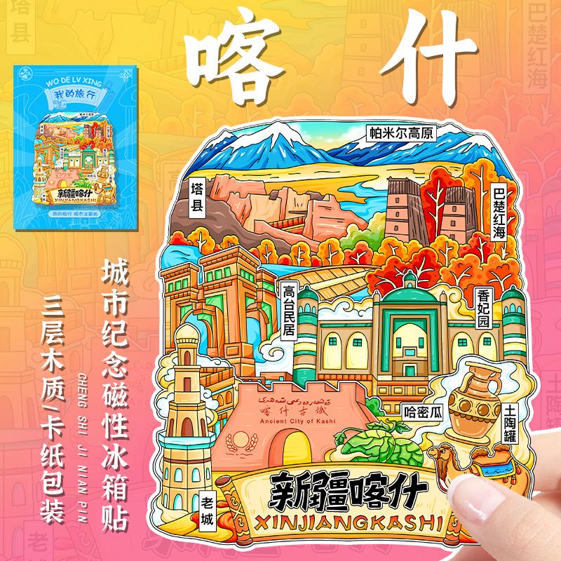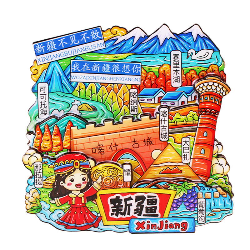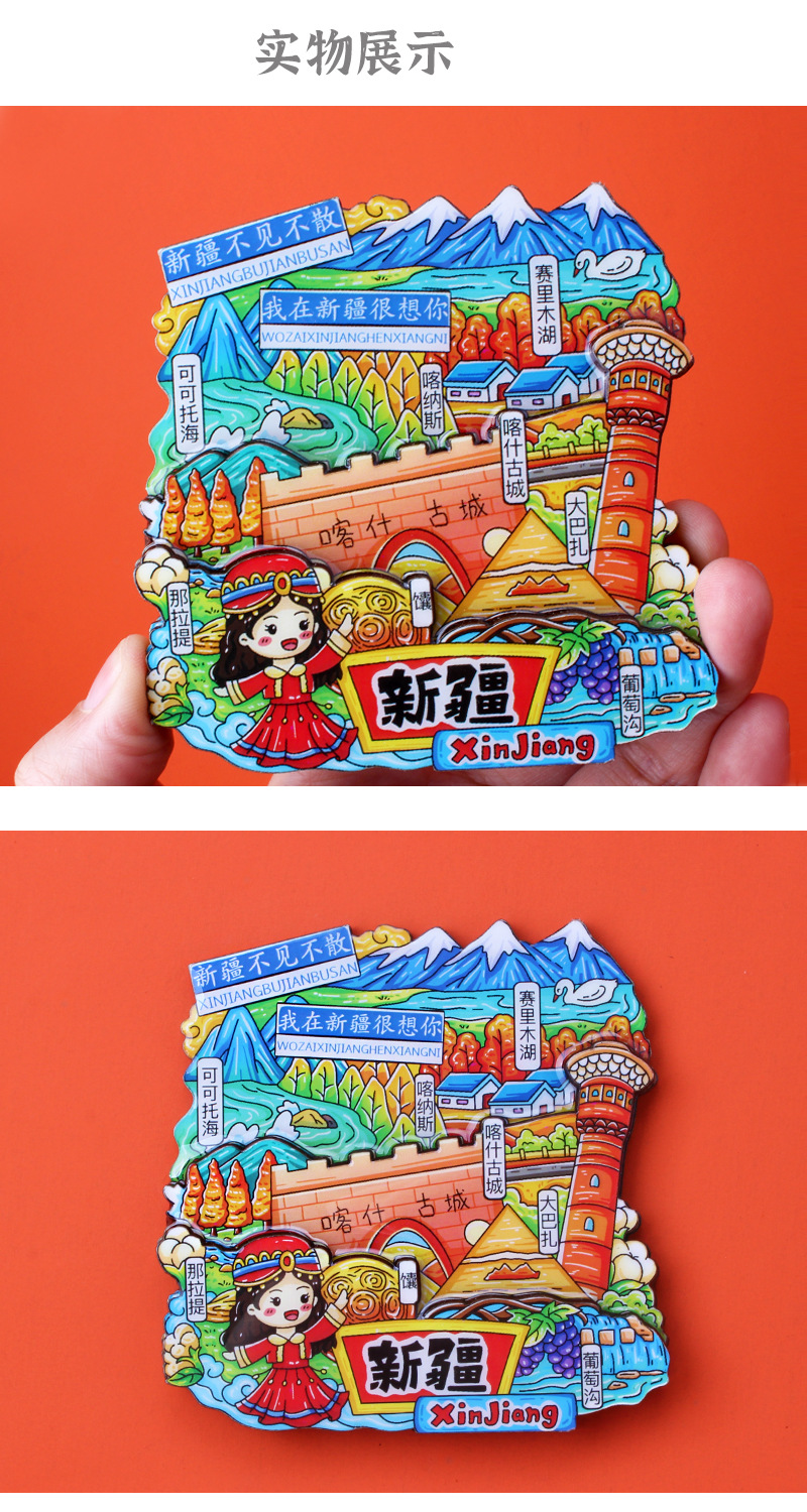 新疆礼品冰箱贴全国城市旅游纪念品文创旅游景区工艺品木质滴胶