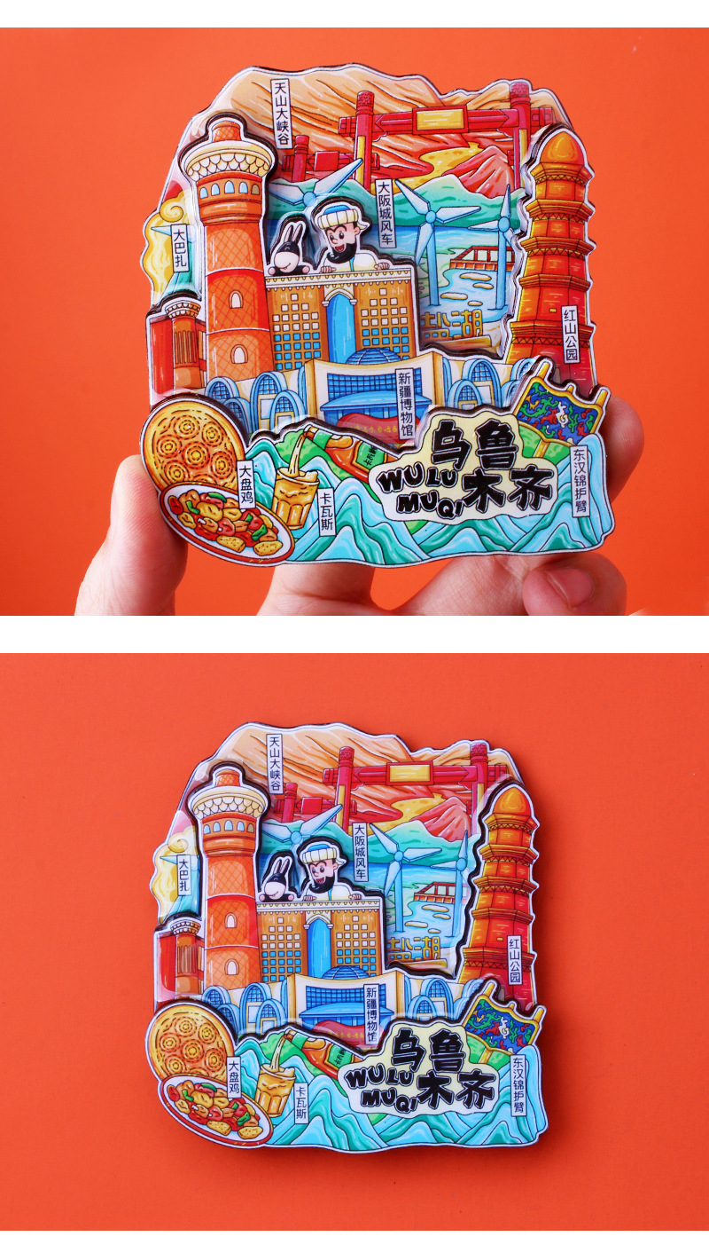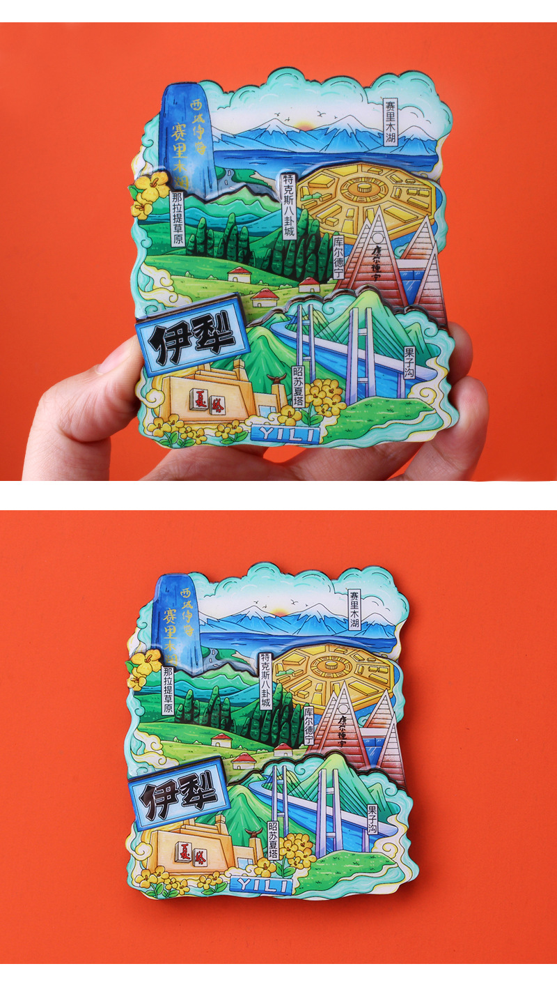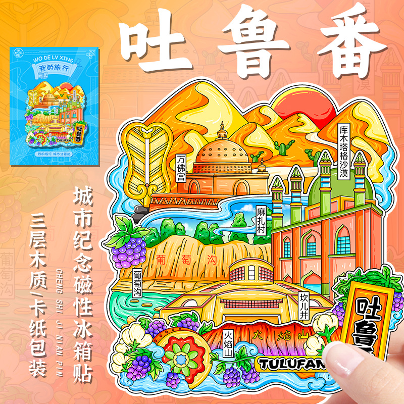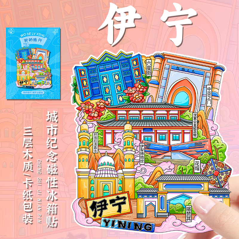 新疆礼品冰箱贴全国城市旅游纪念品文创旅游景区工艺品木质滴胶