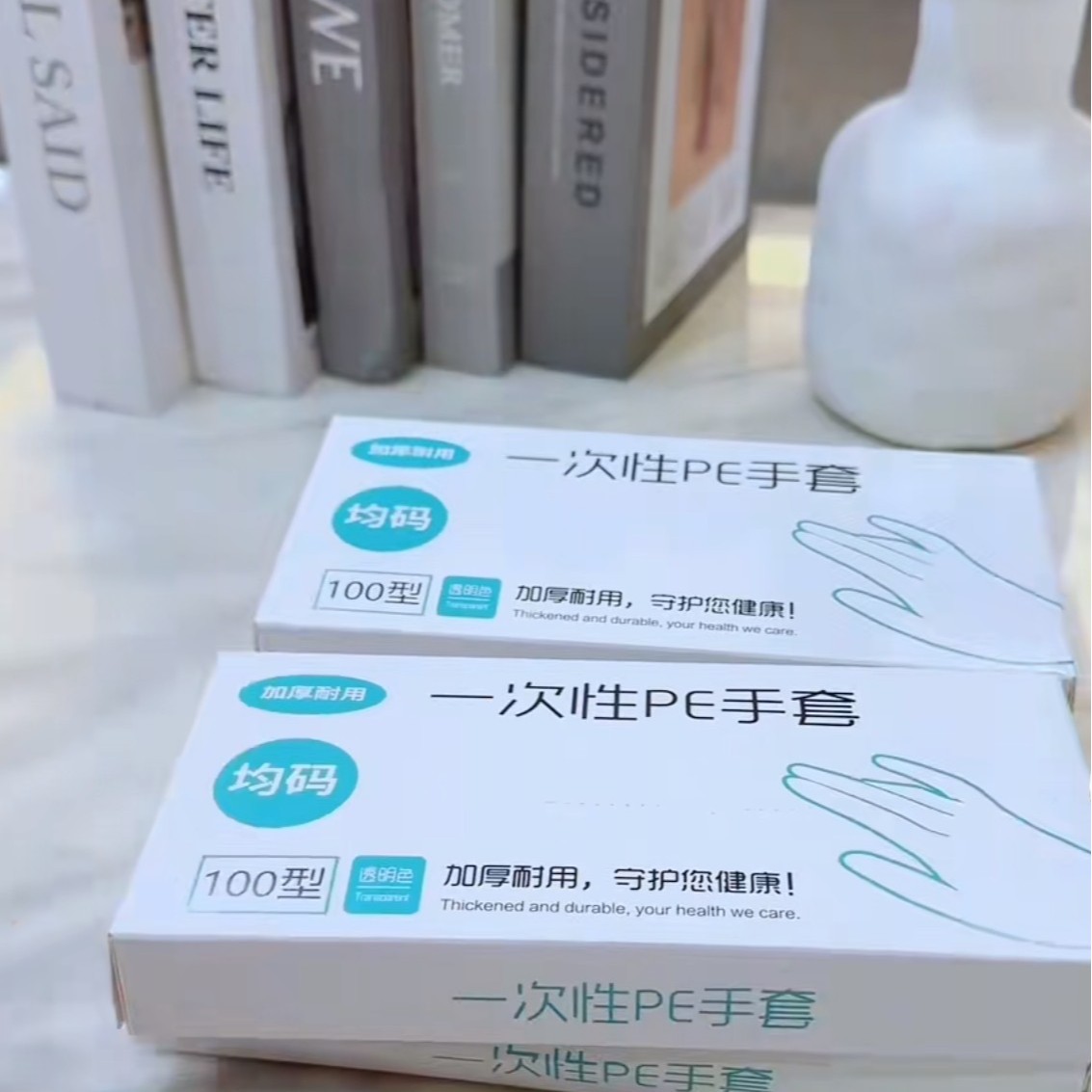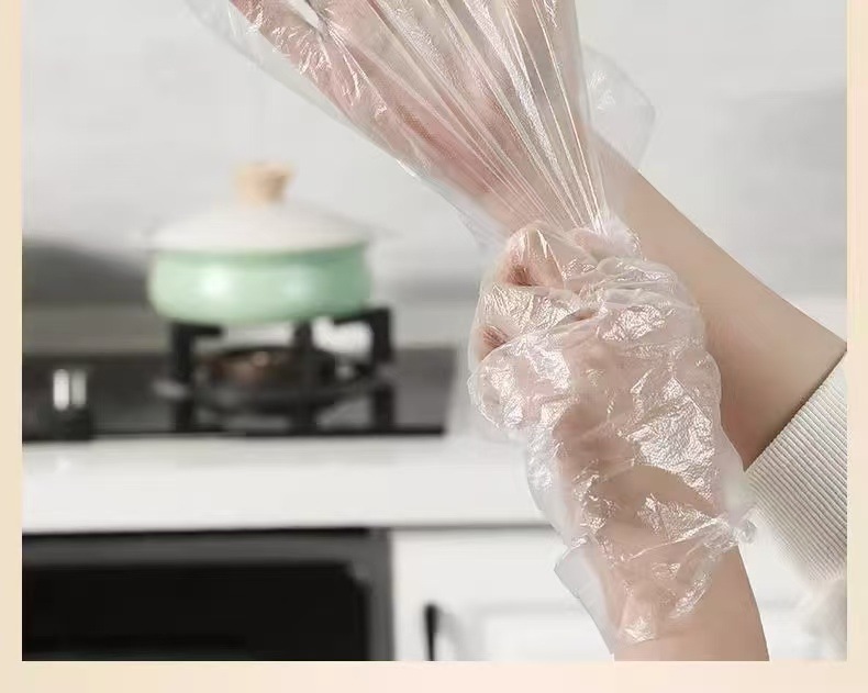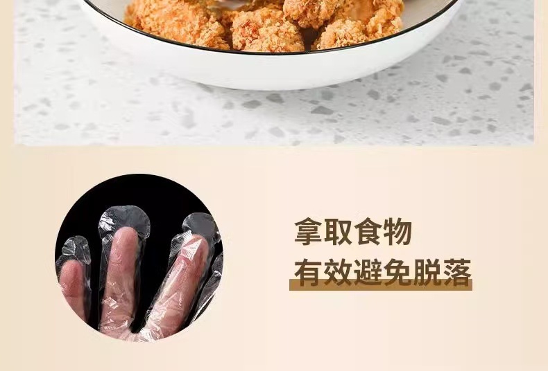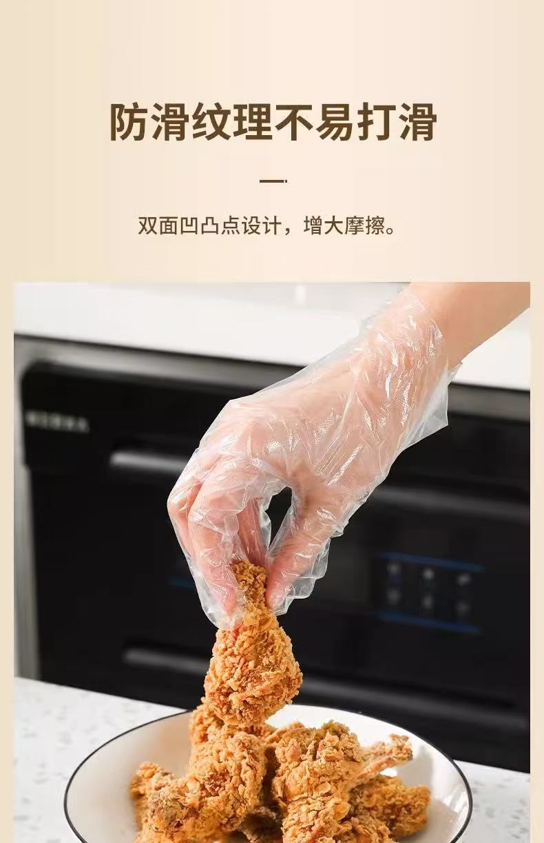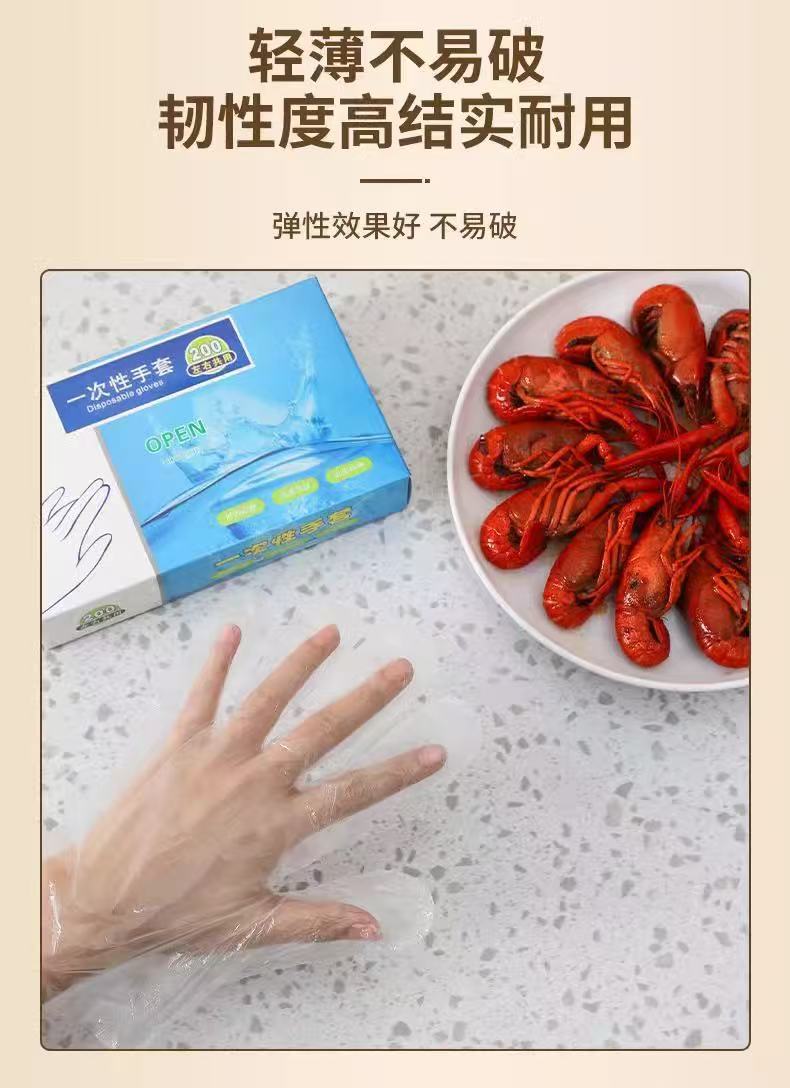 一次性手套200只食品级塑料PE商用加厚餐饮透明薄膜厨房家用加厚