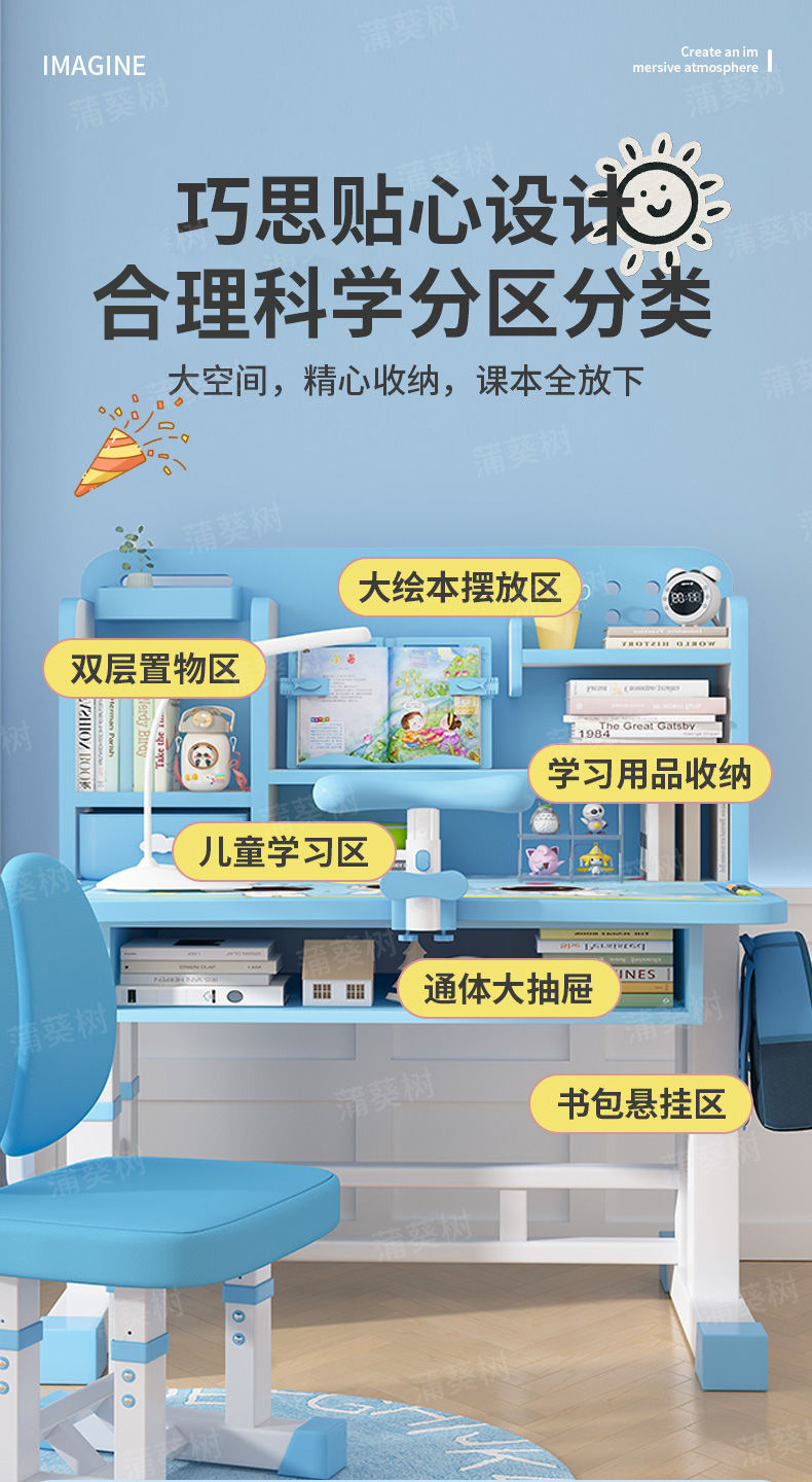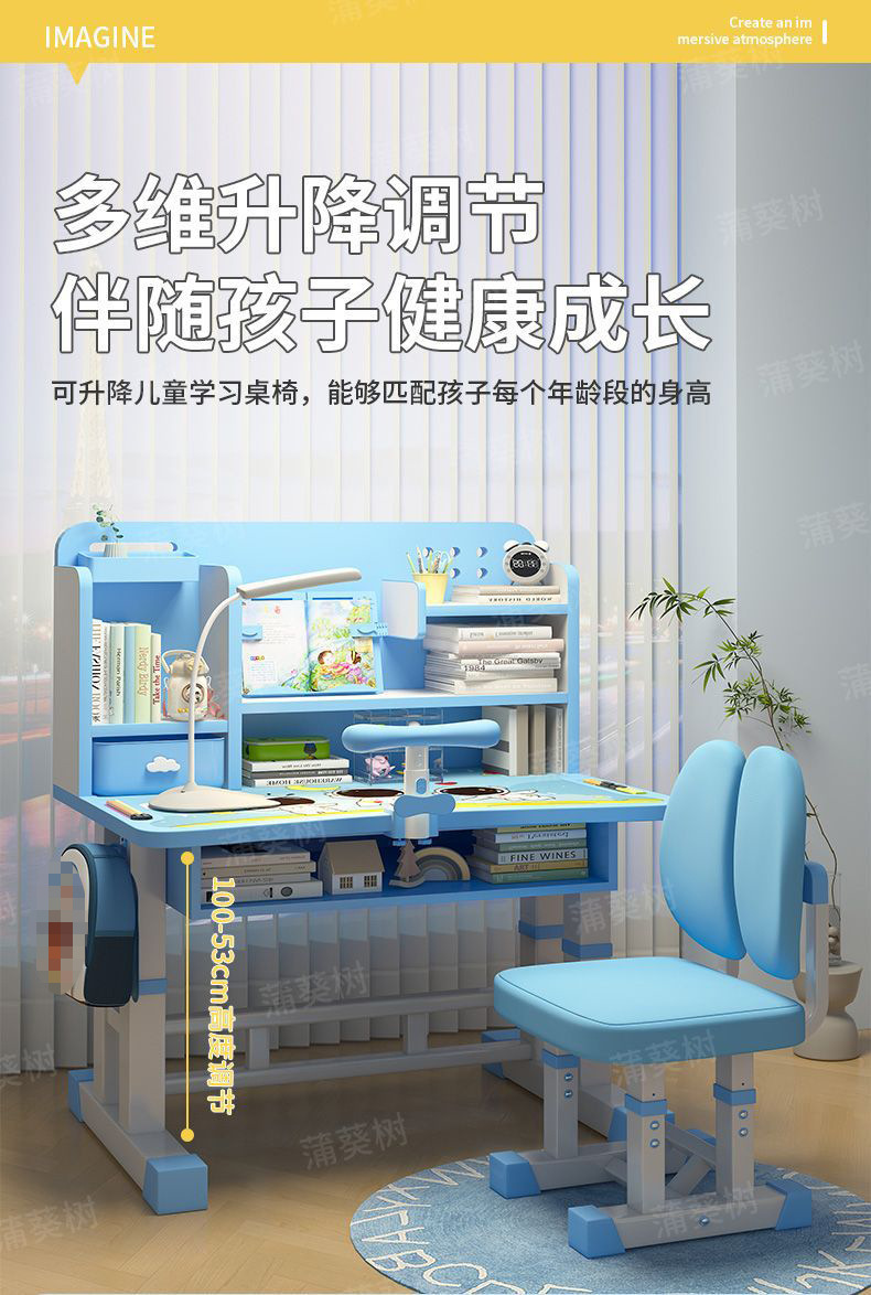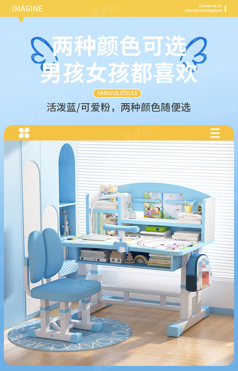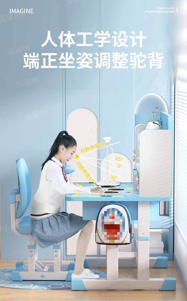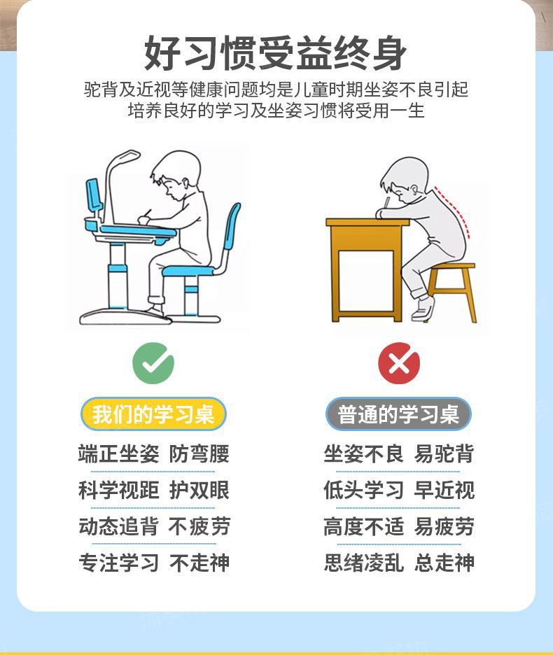 儿童学习桌写字桌矫正坐姿护腰可升降组合课桌椅儿童写字桌椅套装