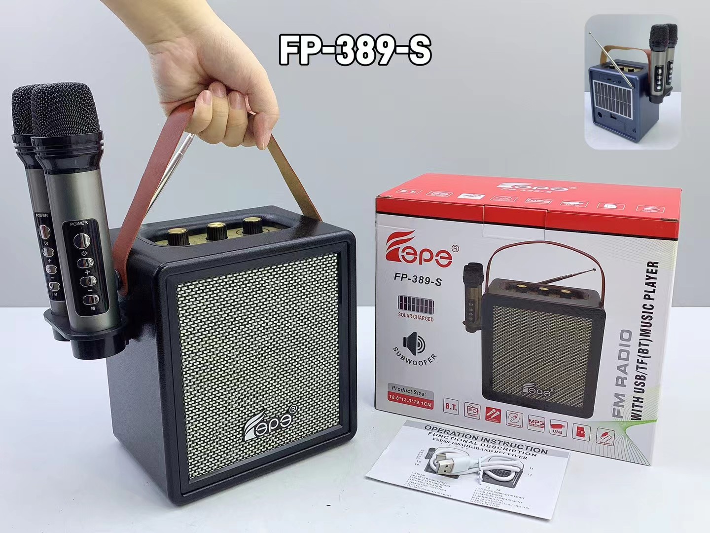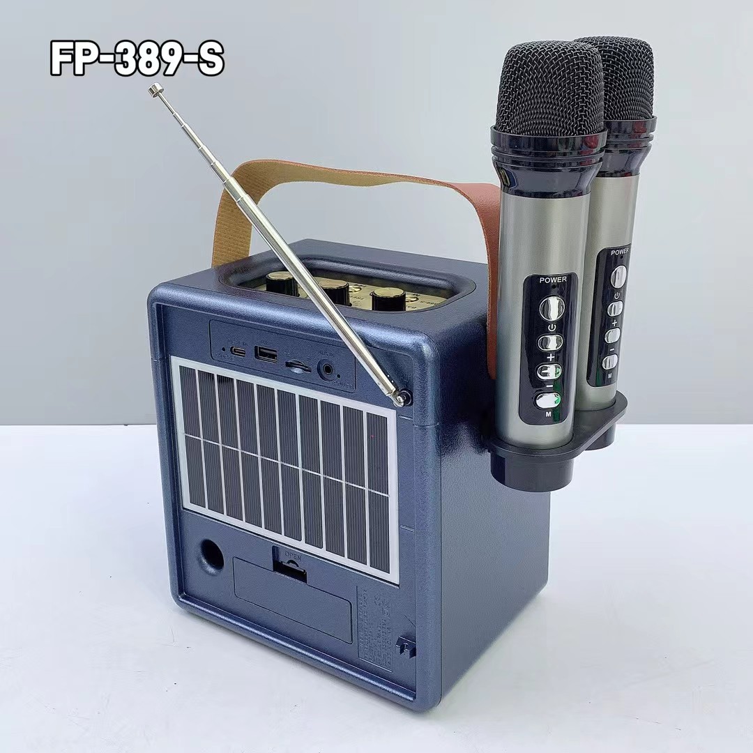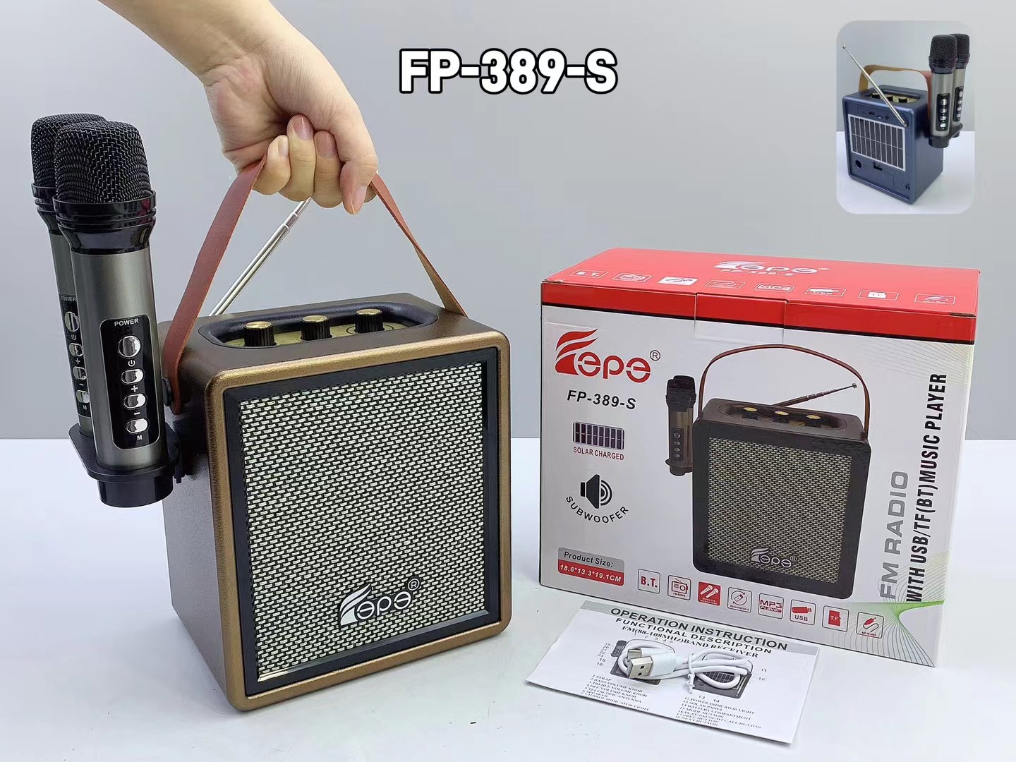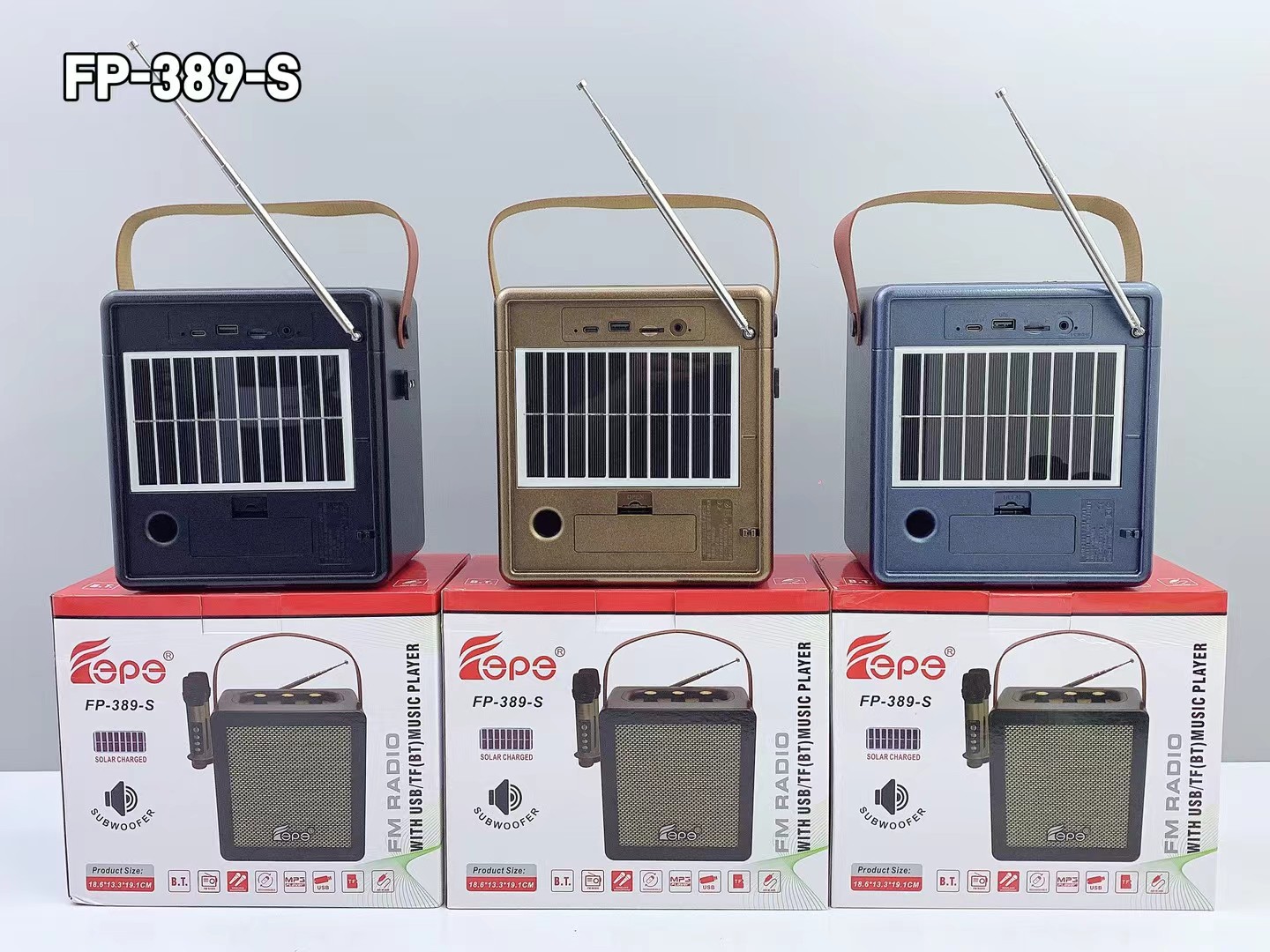 FP-389-S 跨境复古收音手提无线麦克风蓝牙音箱户外太阳能低音炮